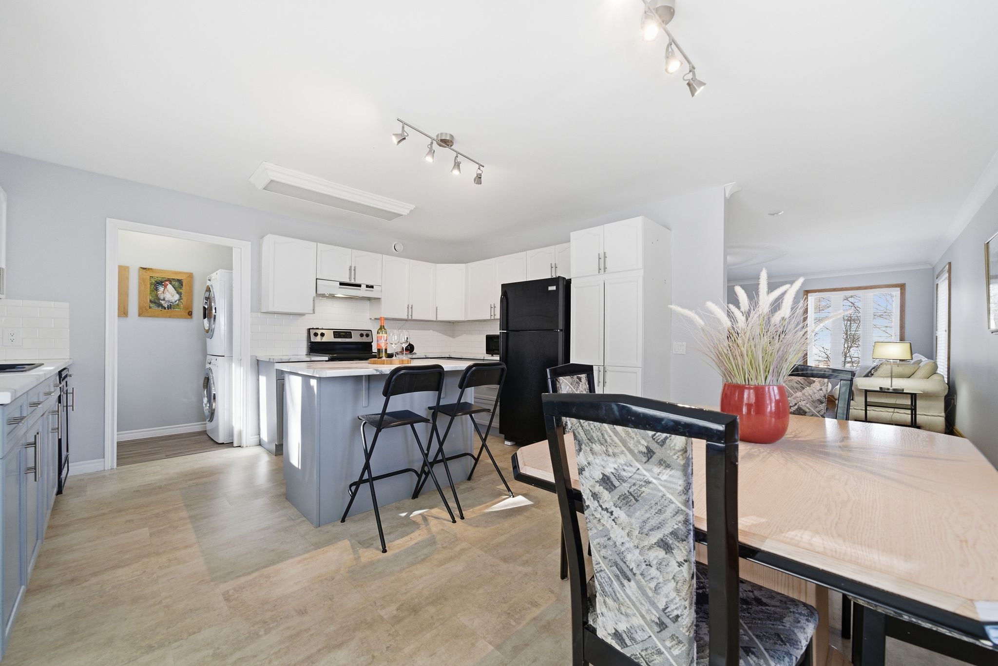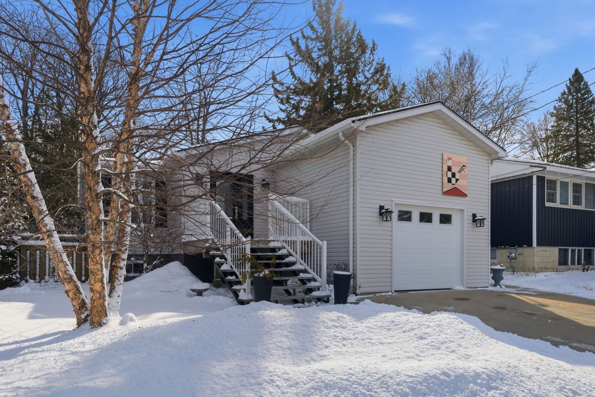 Set on a quiet street moments from downtown picton, this thoughtfully updated 3-bedroom, 2-bathroom home offers bright, easy living with a refined sense of comfort and connection to place. A newly designed entry sequence with steel and western red cedar stairs creates an immediate architectural impression, while the interior unfolds into airy, light-filled spaces tailored for everyday ease. The main floor balances openness and definition beautifully, with a generous living area, an inviting dining space, and a fresh kitchen anchored by a central island for casual mornings, shared meals, and effortless gathering. Large windows draw natural light throughout, while the new sliding glass door with built-in blinds extends the living space outward to a new back deck and fenced garden beyond. The layout offers welcome flexibility, with comfortable bedrooms, a dedicated office, and a finished lower level featuring a spacious recreational room, guest accommodation, bath, and abundant storage. A new ground-floor laundry room, added air conditioning, motion-sensor security lighting, ornamental metal front door, window shutters, and garage storage platform all contribute to the home's sense of considered livability. Outside, mature and newly planted trees frame a pollinator-friendly garden layered with wildflowers and perennials, creating a setting that feels both private and alive through the seasons. With glenwood cemetery nearby for walking, including a dog park close at hand, and the shops, dining, harbour, and cultural rhythm of picton just minutes away, this is a home that pairs practical comfort with a distinctly county way of life.