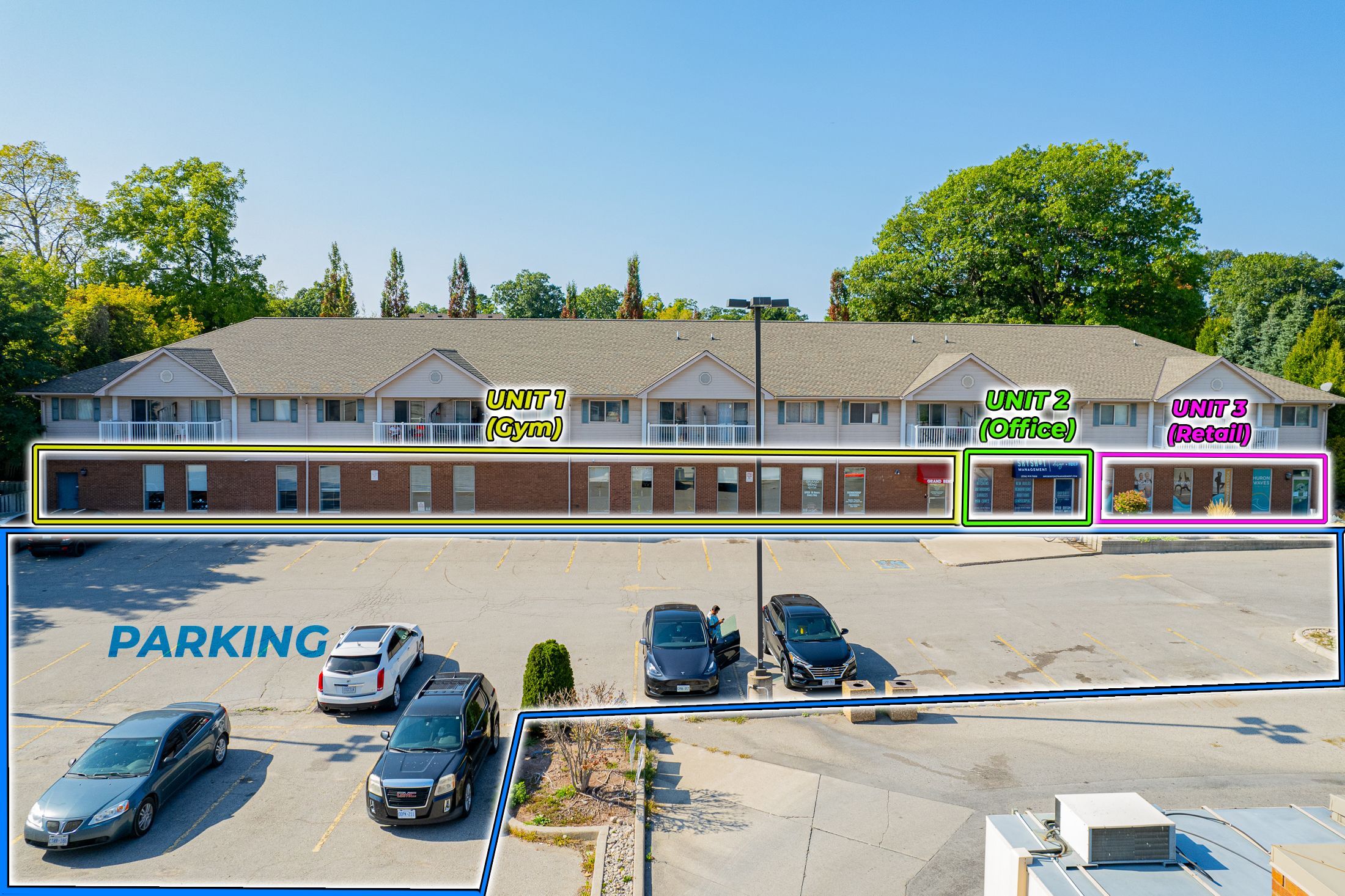 **attention investors** scoop up an easy 6 cap with this hassle free grand bend income opportunity just steps to the 3rd best beach in canada & situated in a high traffic location in one of the fastest growing rural towns in the country! Attention investors in search of a stable & secure venue to park some money: this young & fresh 9000 sq ft 3-unit/triple tenant commercial condo provides reliable fixed term income across 3 separate units generating just over $90k per yr collectively on 3 separate term leases, all leased (net net on part), w/the healthy tmi/cam (an additional $60k + utilities) leaving the owner w/ zero expenses per yr! As most savvy income-minded investors are aware, successful business tenants in a growing community are likely a safer bet than equities, which is likely the catalyst for the substantial investments that have been made in the grand bend area over past 36 months, all simultaneous to more & more families & younger generational buyers migrating to the beach for year round living! Bottom line, the smart money is recognizing this trend & its here in grand bend. During the past 4 years alone, there has been approximately 10 x more capital invested on individual property sales for development & investment purposes on commercial & mixed use properties in grand bend than the total amount spent on such land & buildings in the previous 20 yrs combined! Why is all of this so crucial for a commercial income property like this one? Because, these trends result in stronger customer bases for the year round commercial tenants at this excellent location! And w/ commercial tenancy, landlord's upkeep responsibilities are minimal + the commercial tenancies act is more landlord friendly than the rta! This offering provides easy low hassle income in a prime spot w/ everlasting visibility directly across from the tim horton's drive thru! Plus, the potential 2 new ev chargers (currently in the approval phase) could generate even more income! 10+ all around!