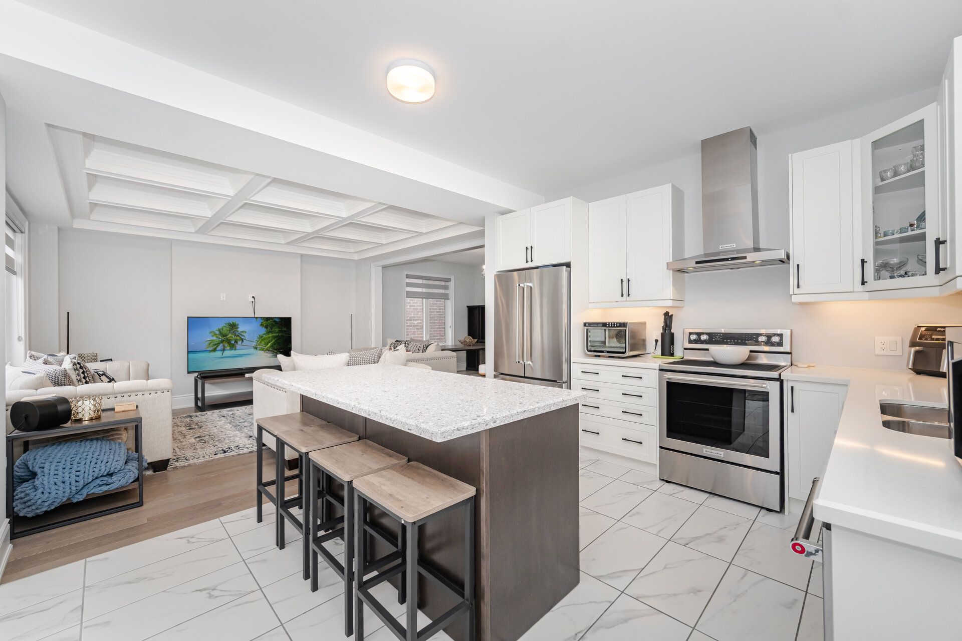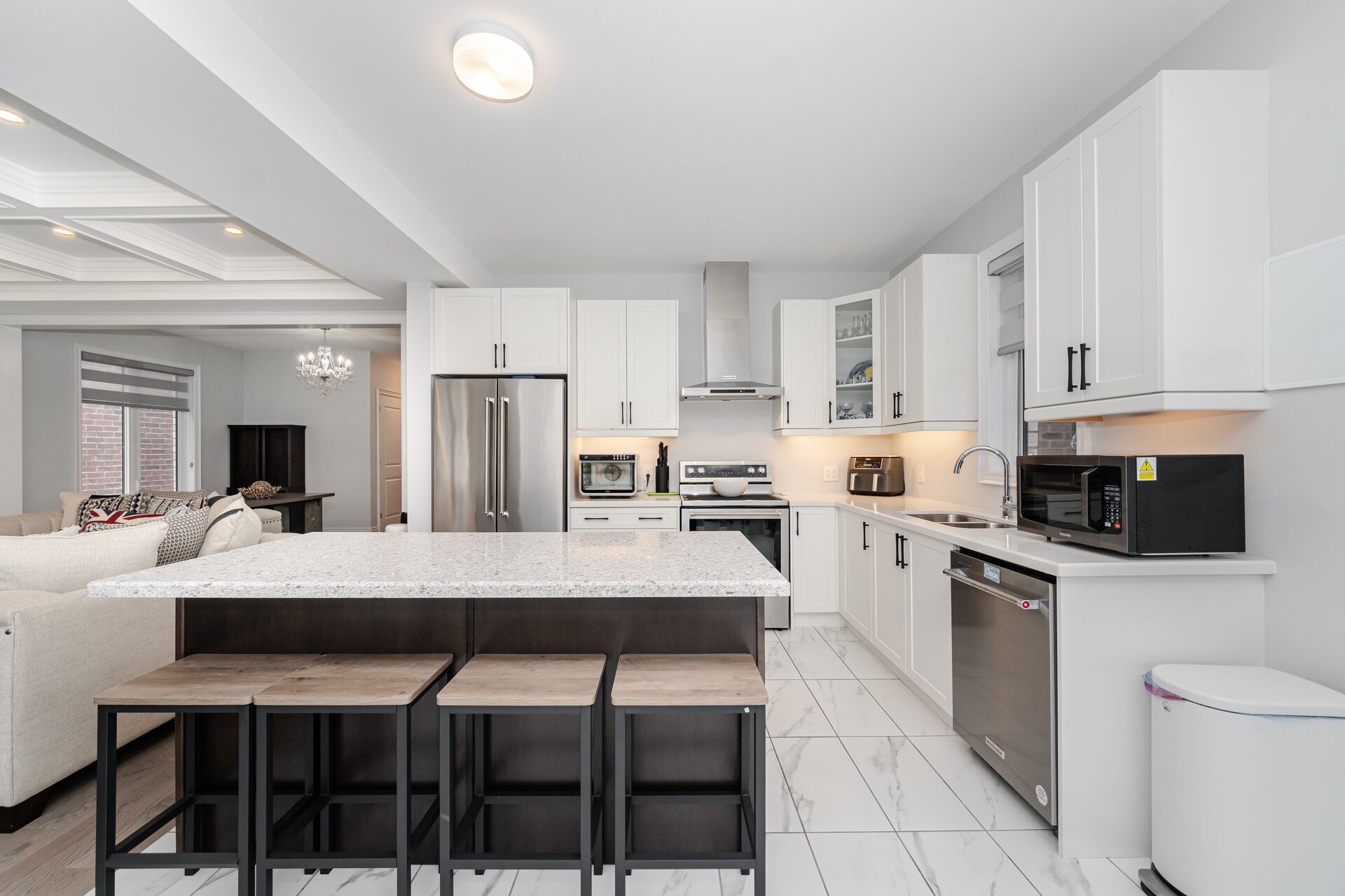 • Sleek chef's kitchen with central island designed for effortless entertaining.