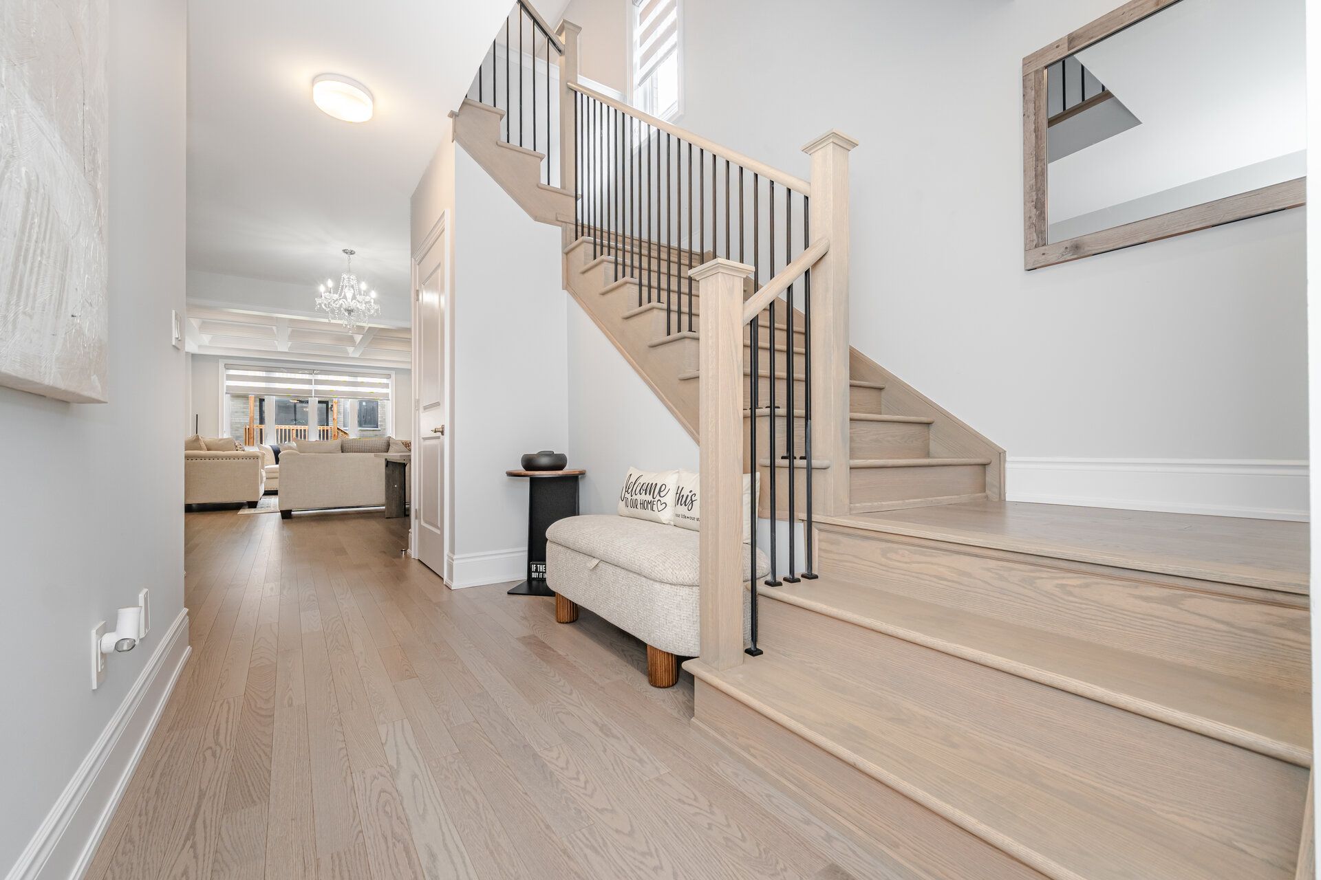 • Grand double-door foyer welcomes you into an upgraded, carpet-free home.