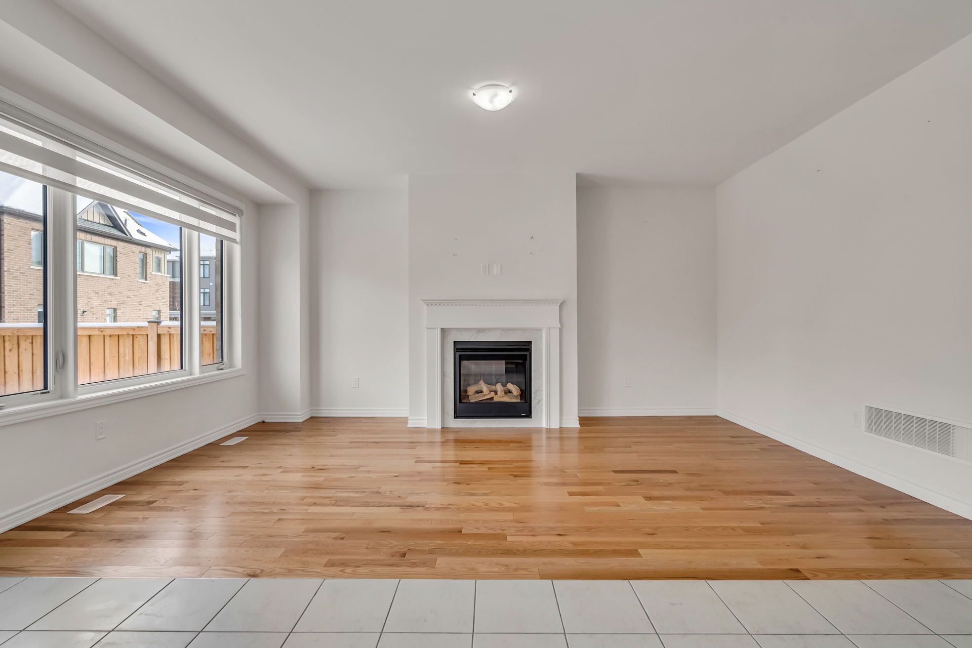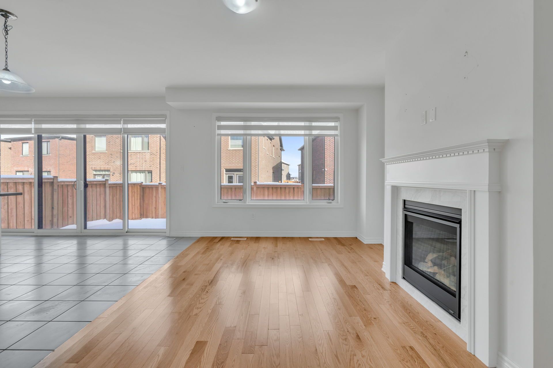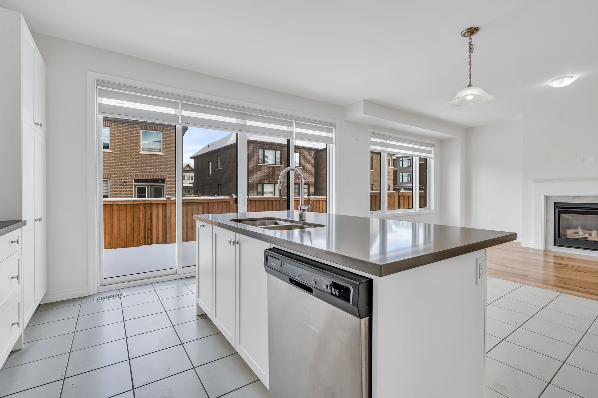 • Open concept family room with a cozy fireplace for gatherings.