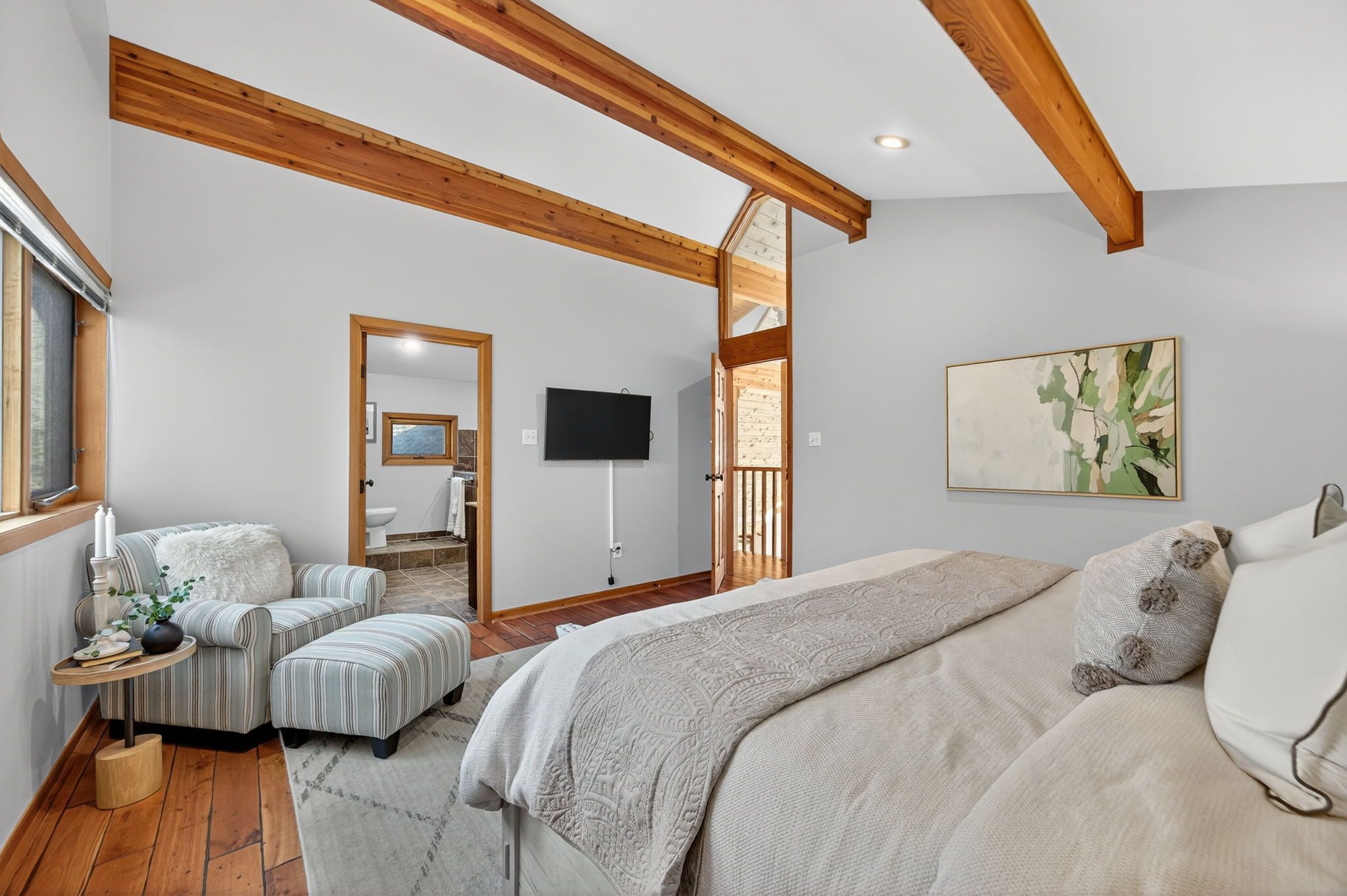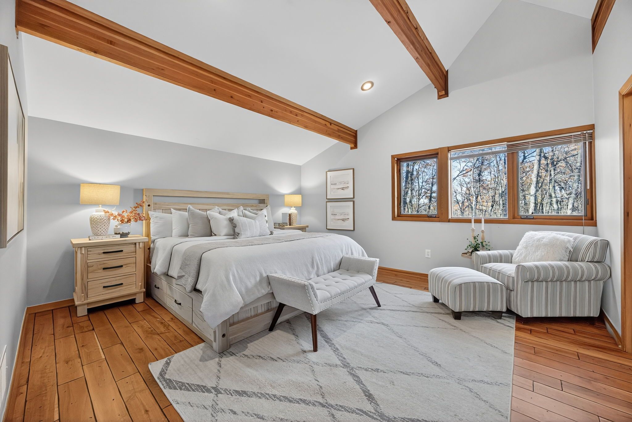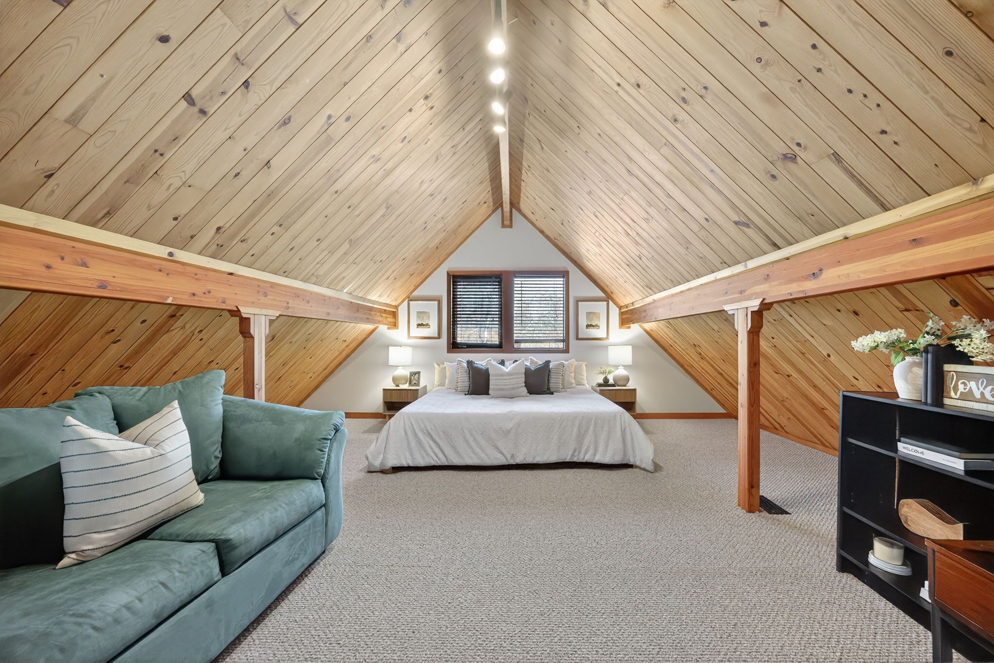 • Custom kitchen with top-notch appliances and vaulted ceilings.