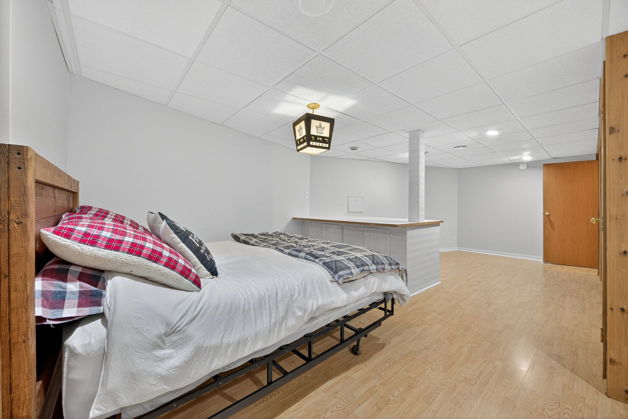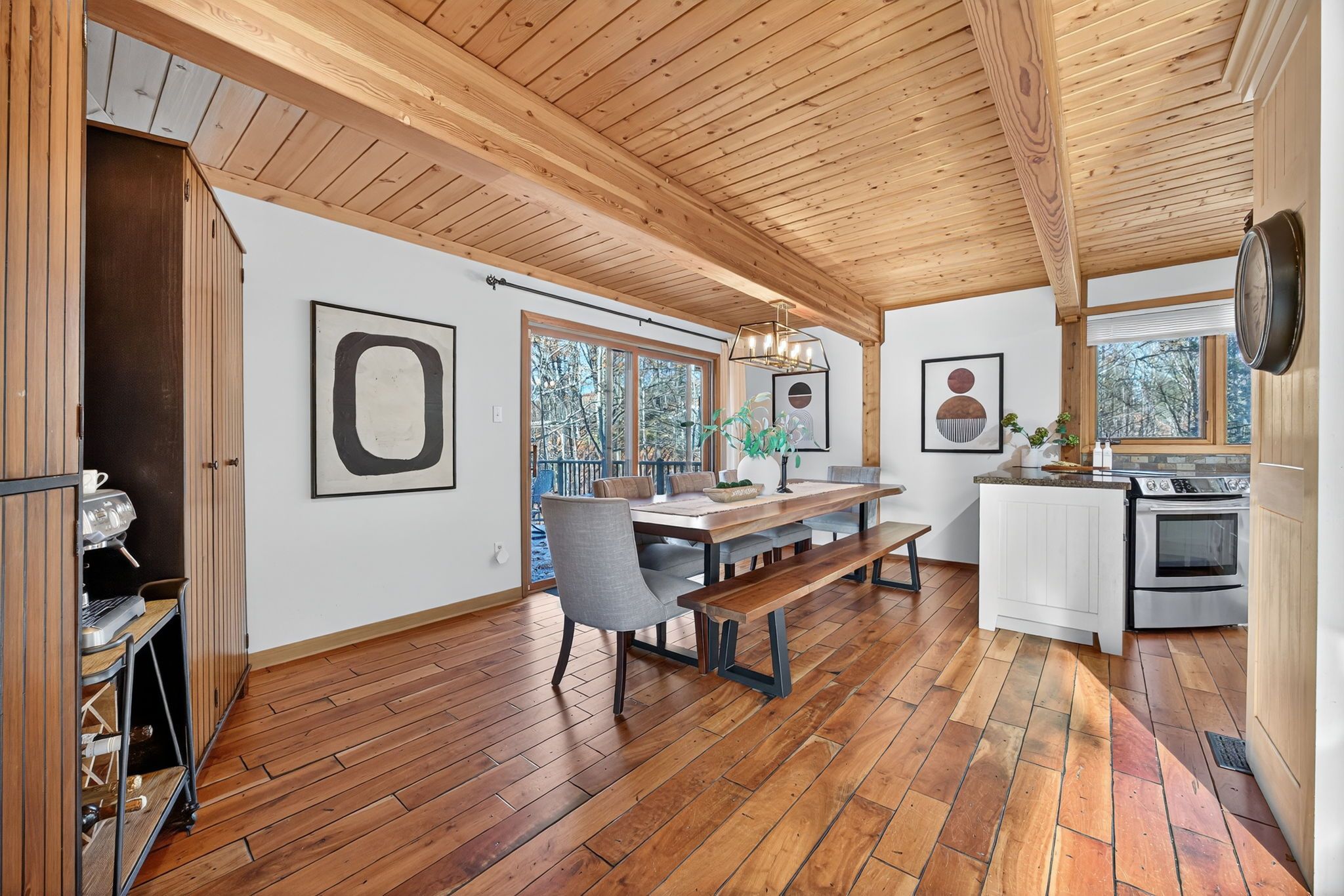 Lindal chalet style bungaloft perfect for the adventure loving family! Beautiful well crafted home backing onto the copeland forest*welcome everyone, in the spacious foyer, after a ski day to warm up in the grand, two storey living room, wall of windows, cozy gas fireplace, and beautiful hickory floors*roomy dining room with a walk out to the spacious deck, ( glass rails so you can see the whole forest!)*beautiful bateman, custom kitchen with jenn air stainless stove and fridge, miele built in dishwasher, beamed vaulted ceilings* two bedrooms on the main floor with walk outs to deck and a full bathroom and *primary suite is on the second floor with a huge 5 piece ensuite and full closet*bonus family room perfect playroom, teen hangout, spare bedroom or man cave*the basement has a finished area and a beautiful 3 piece bath, plus a large area ready to be finished for additional living space*new rheem furnace with aprilaire humidity control (2025)*security system*after a cold, active day relax in the hot tub under the star filled night sky!*lovely garden pond*two sheds, one with hydro*for your enjoyment, copeland forest 4400 acres for trail walking, biking, snowshoeing or skiing at the horseshoe valley ski resort, golfing and experience the vetta nordic spa for a day of indulgence! Quick access to hwy 400! Fee $222 per quarter present water/garbage