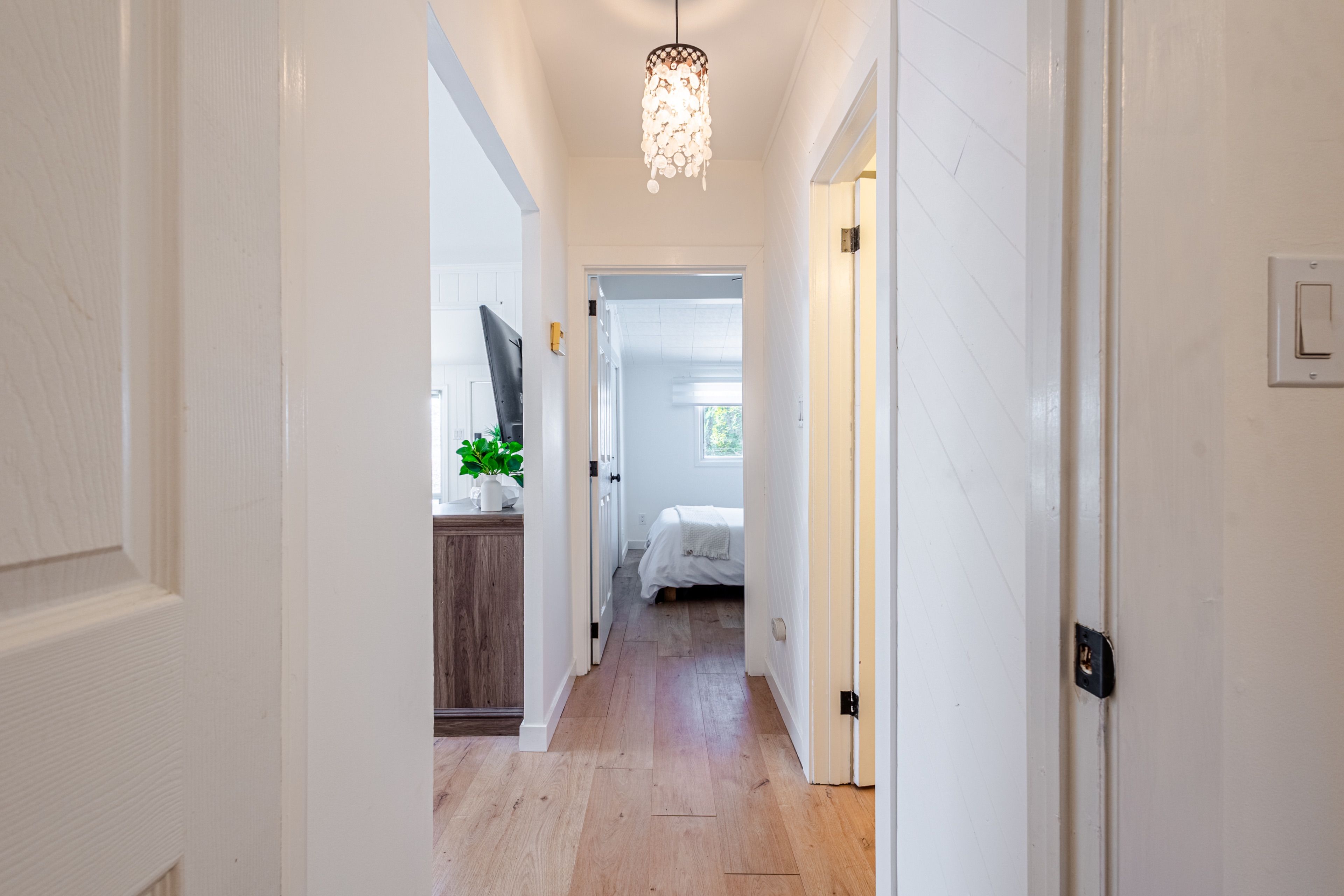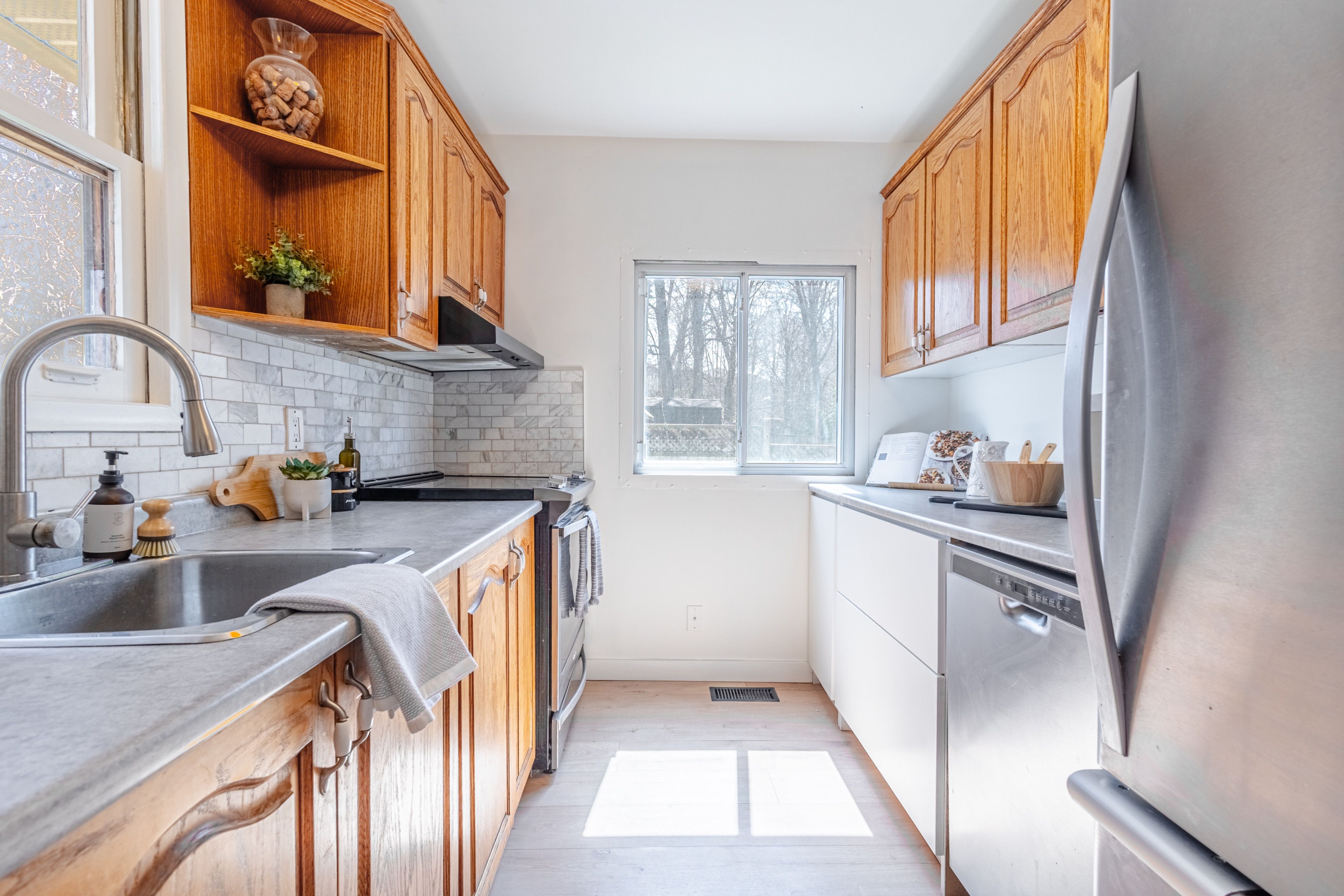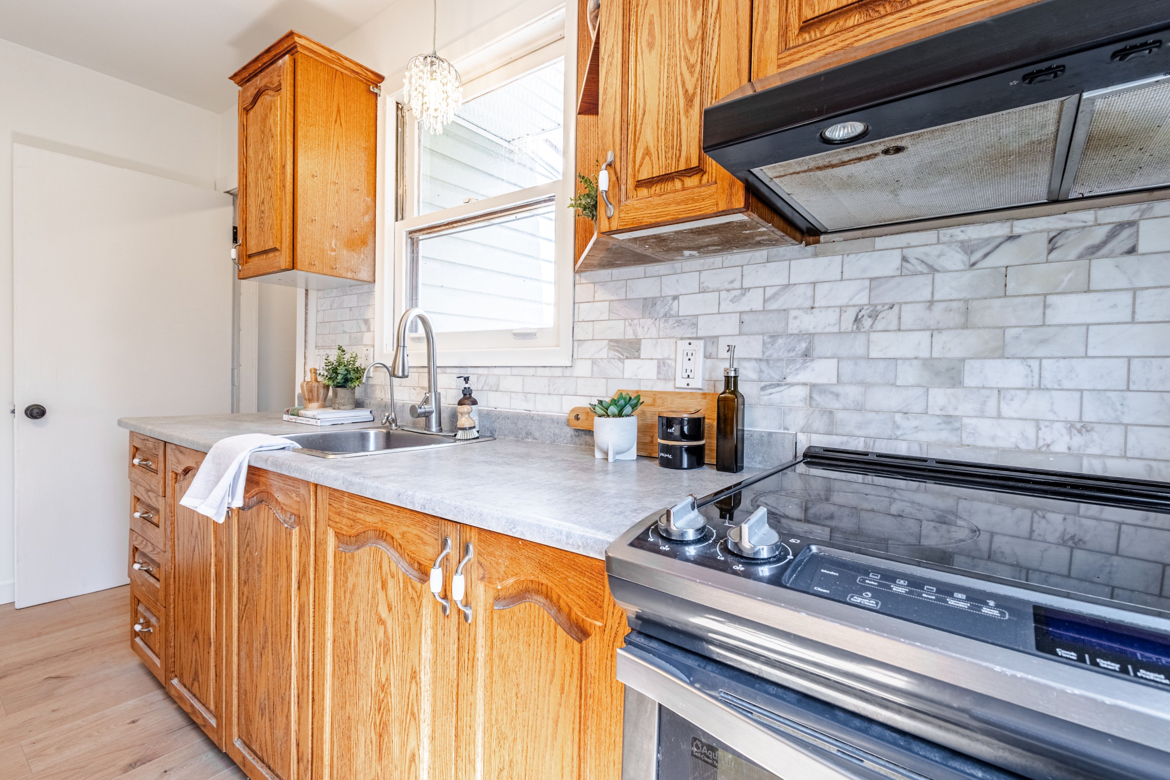 • Updated kitchen and bathroom with fresh flooring and modern light fixtures.