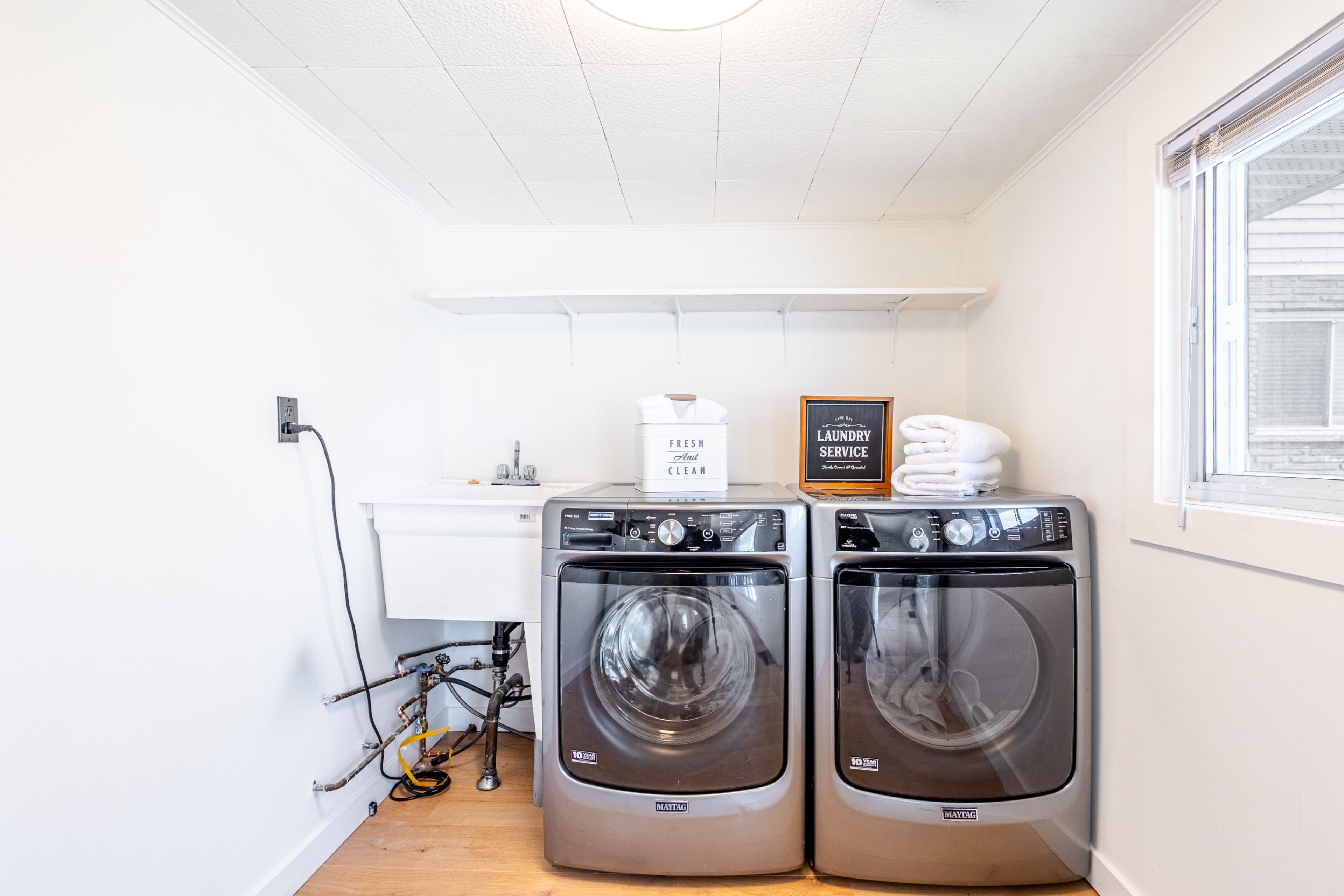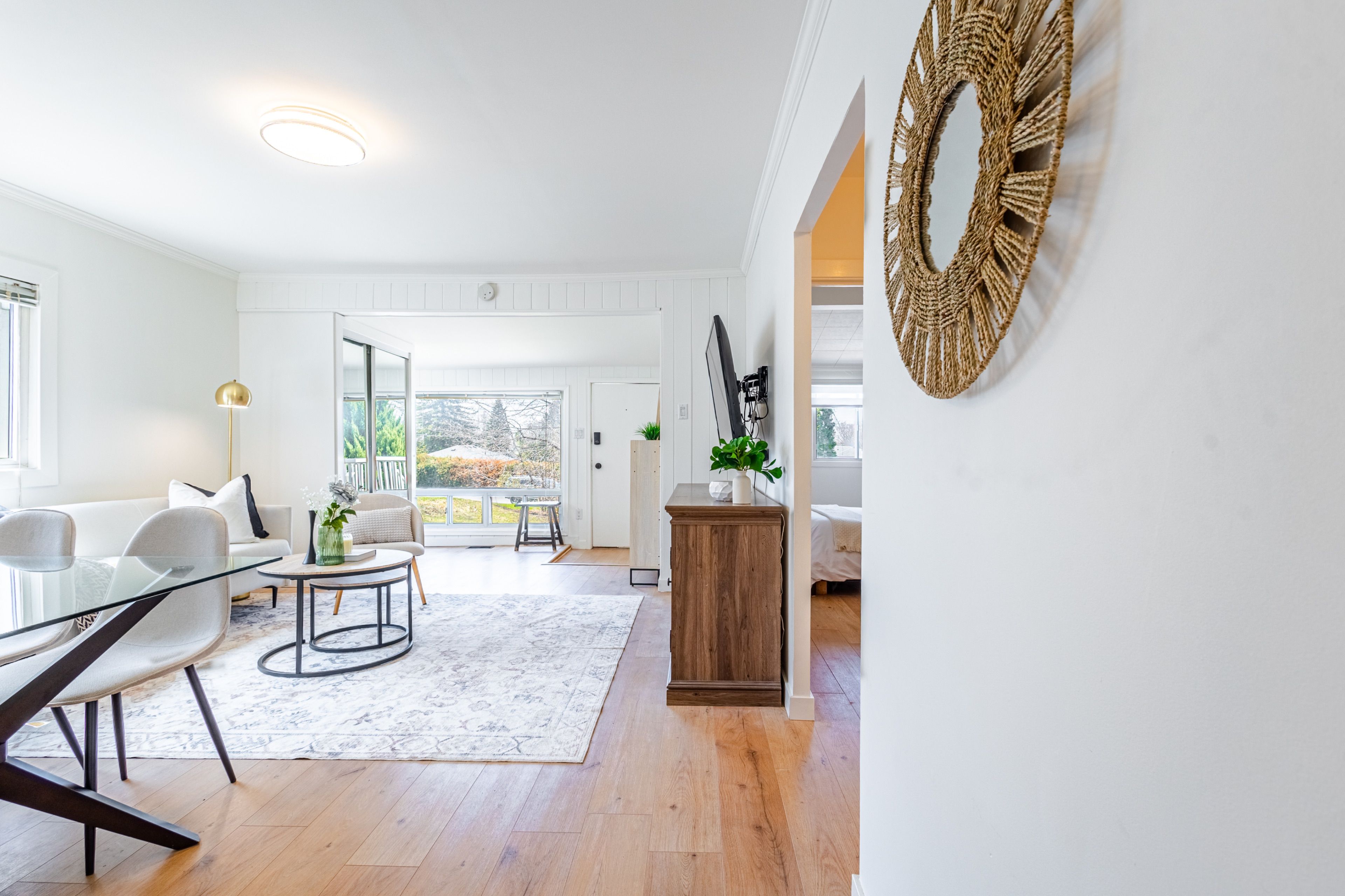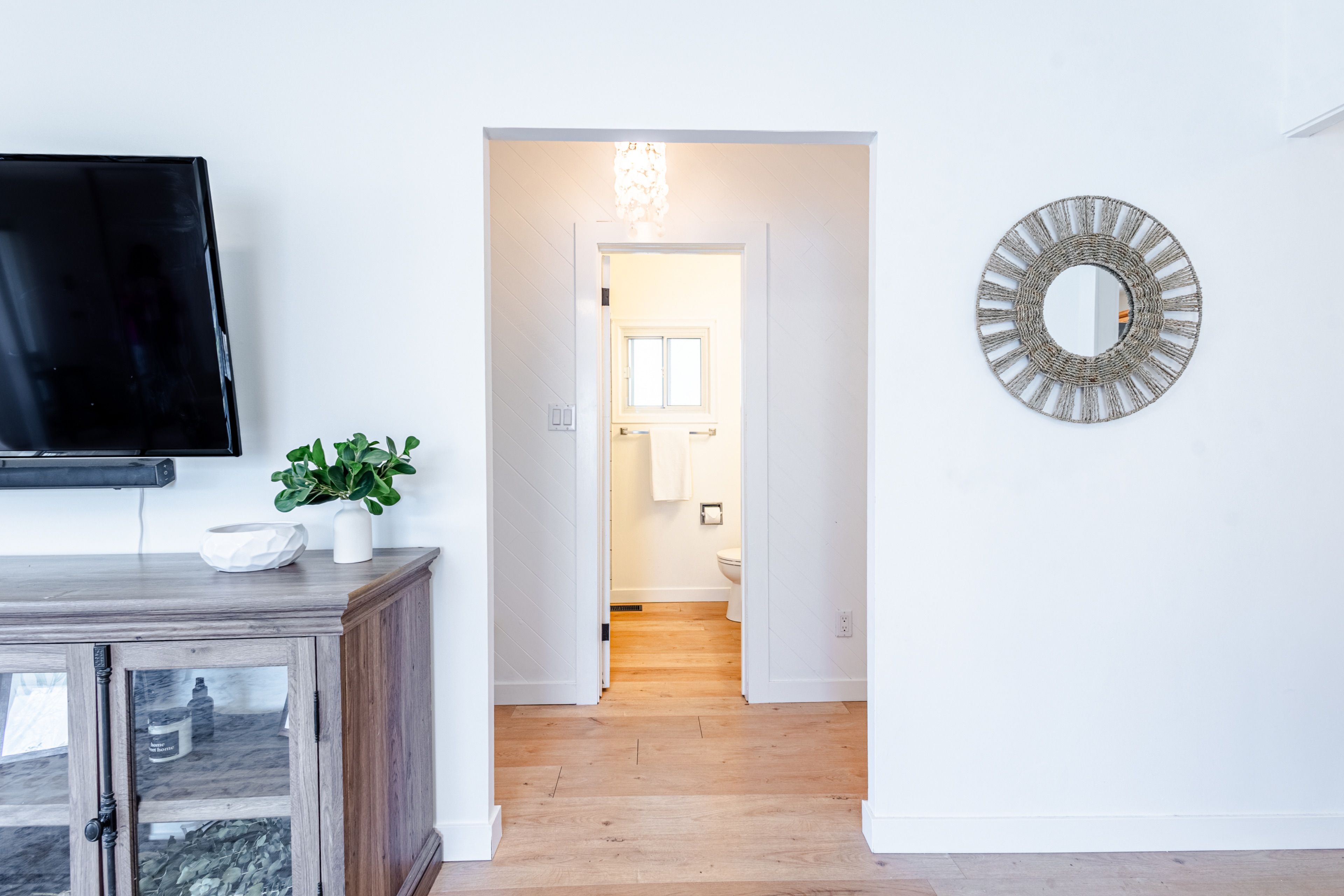 • Updated kitchen and bathroom with fresh flooring and modern light fixtures.