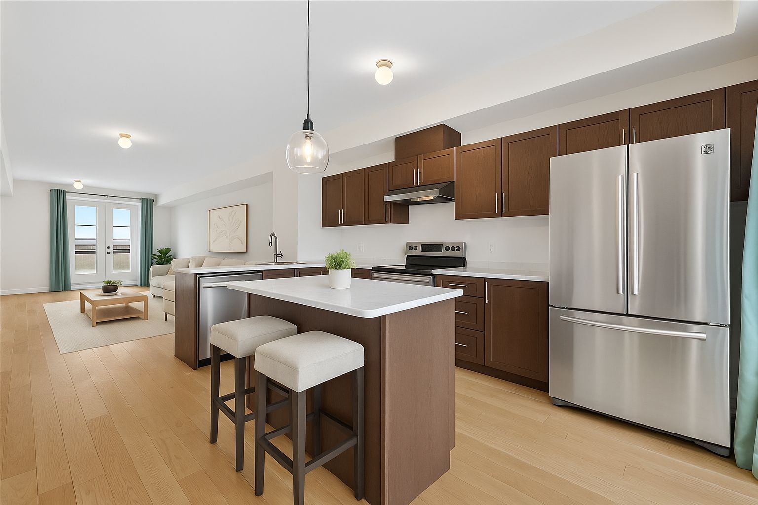 • Hardwood floors and open-concept design ideal for entertaining.