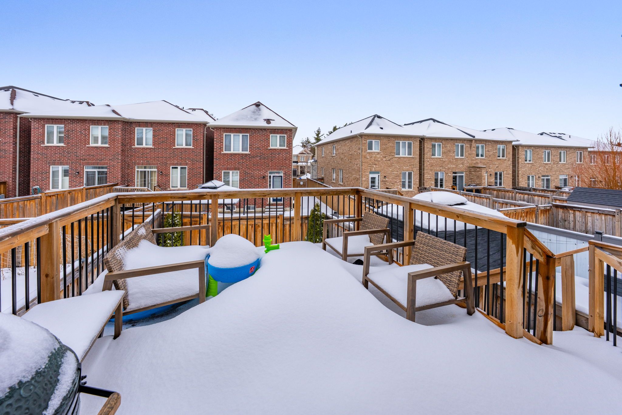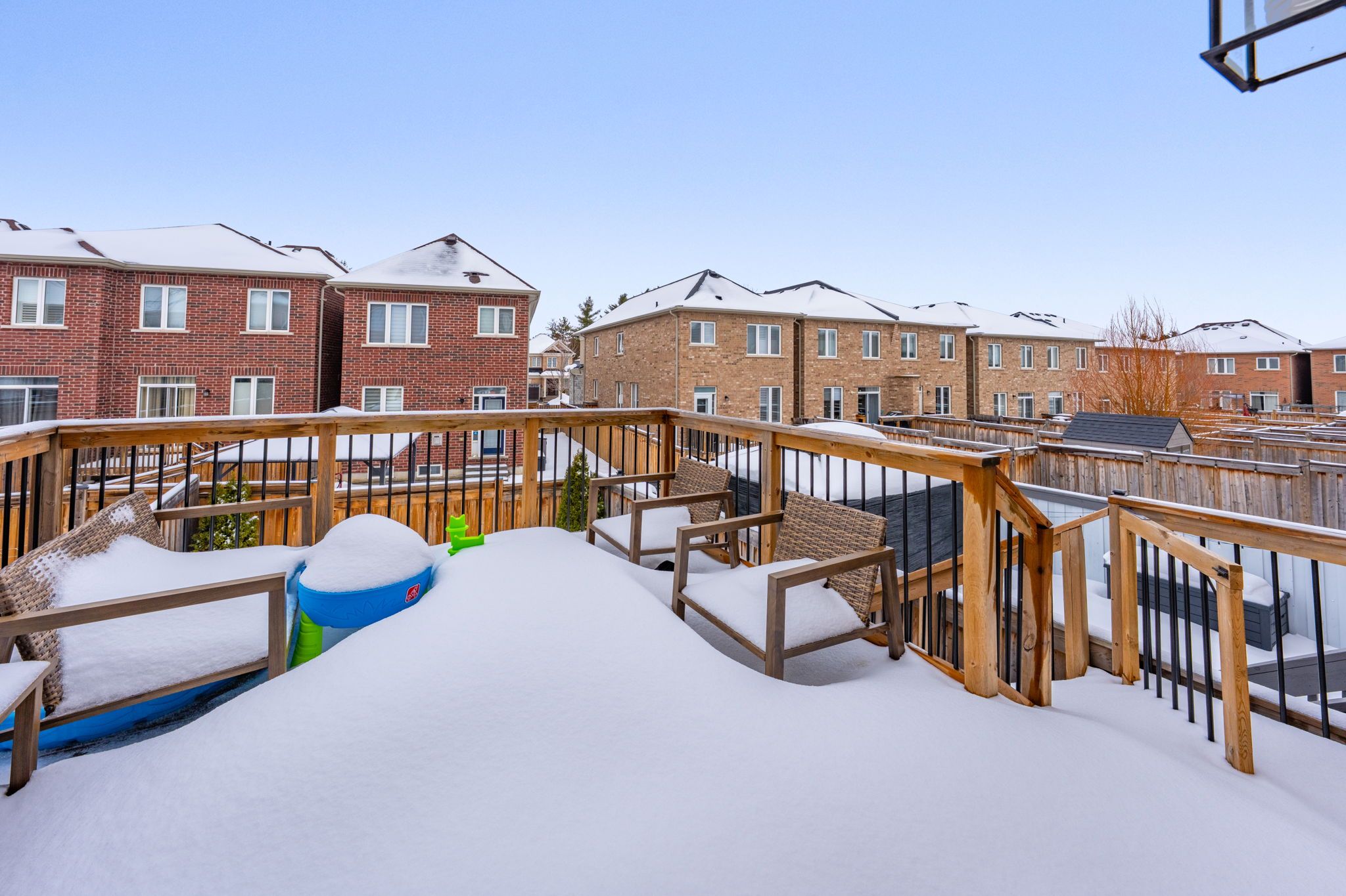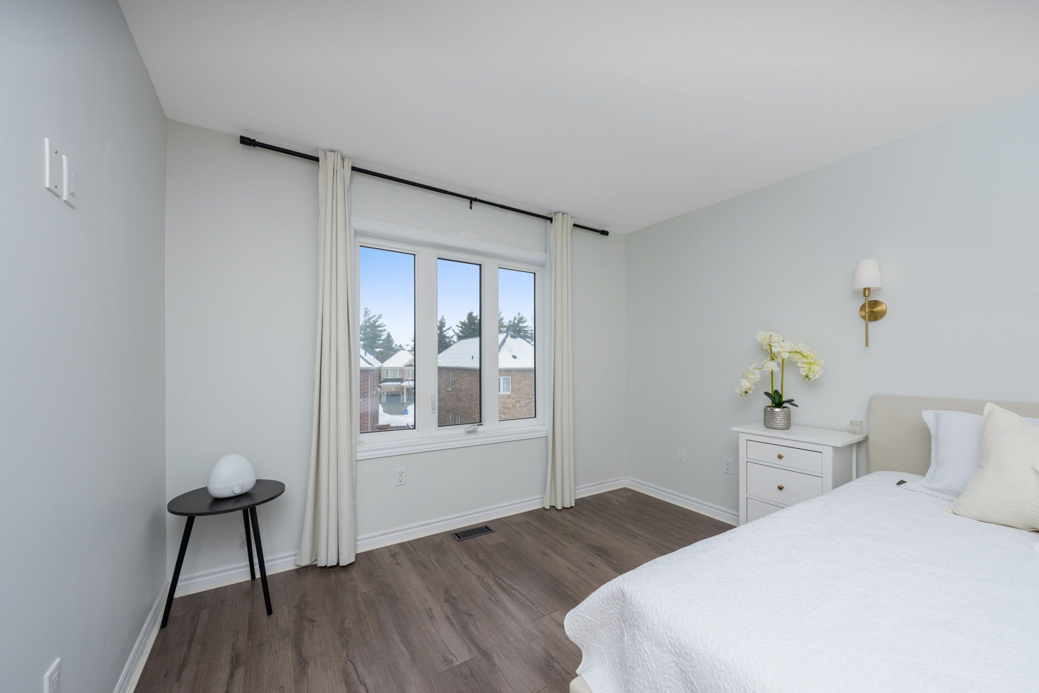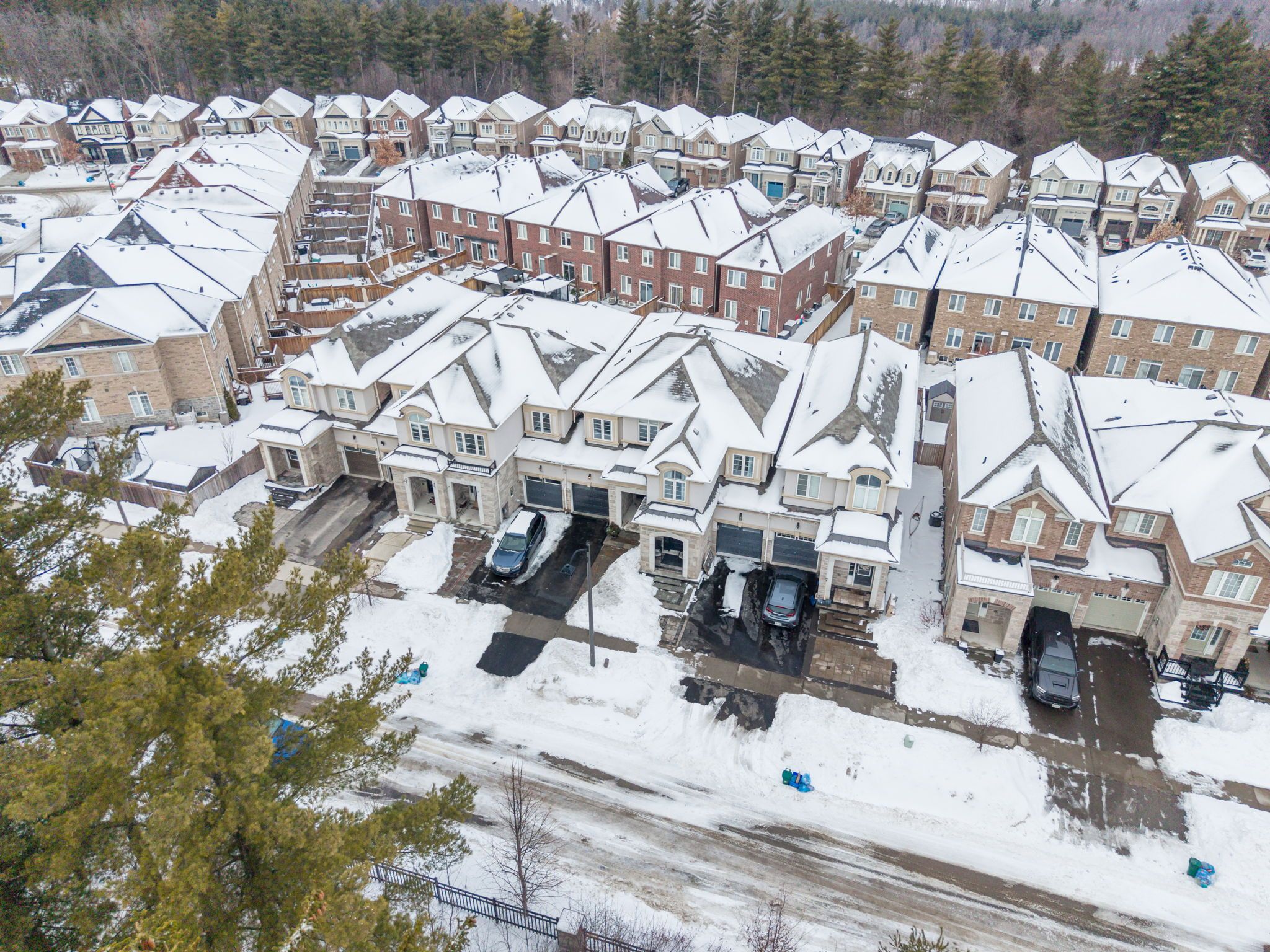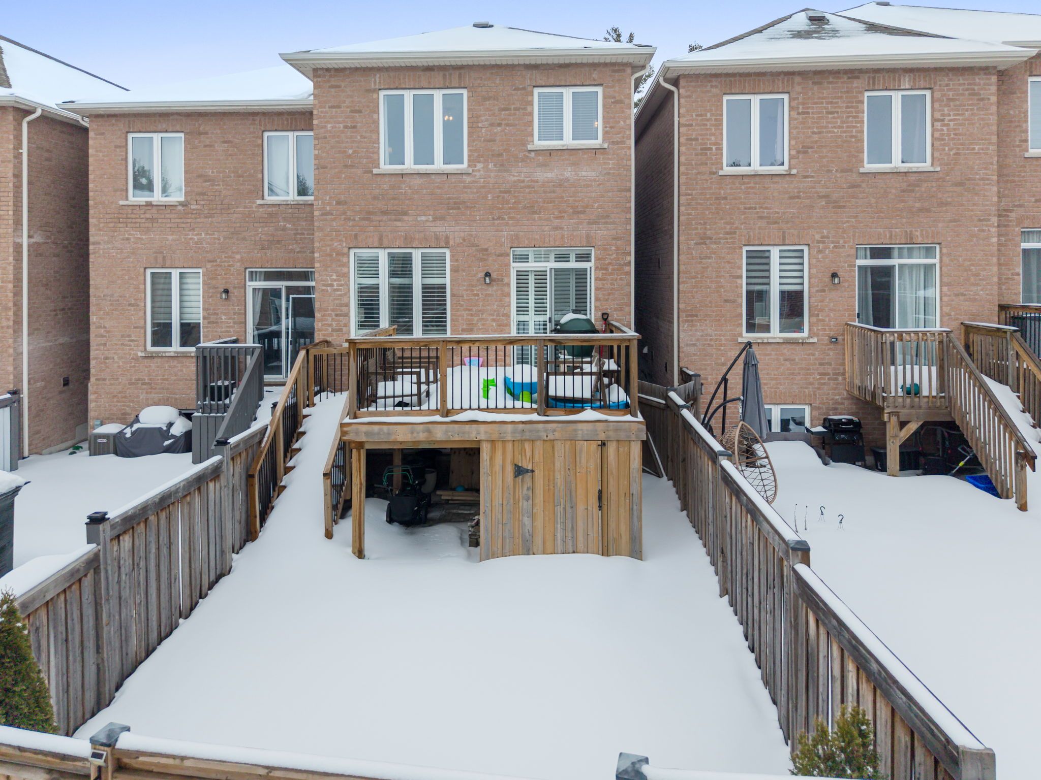 Nestled in a sought-after small enclave, this beautifully appointed townhome offers an exceptional blend of style, comfort, and convenience. Ideally positioned just steps from a park and picturesque trail, the location perfectly balances nature and community living. The striking exterior showcases an elegant stone and stucco façade complemented by a welcoming covered portico that creates a warm and inviting first impression. Inside, the open-concept main level features 9 ft. Ceilings and quality, tasteful finishes, including hardwood flooring and pot lights, creating a bright and inviting feel. The well-designed kitchen features two-tone cabinetry, centre island with breakfast bar, granite countertops, stylish mosaic backsplash, stainless steel appliances and seamlessly open to the living room - perfect both entertaining and family time. The living room offers a walkout to the deck, extending the living space outdoors. A sun-filled dining area flows beautifully into the foyer and is enhanced by an attractive wood staircase. Upstairs, the home offers three generously sized bedrooms, all finished with tasteful laminate flooring. The primary suite serves as a relaxing retreat complete with a walk-in closet and an elegant 4-piece ensuite. A nicely appointed 4-piece bathroom and convenient upper-level laundry complete this level. The finished lower level adds valuable living space, featuring a bright recreation room with large above-grade windows, office and 2-piece bathroom all enhanced by vinyl plank flooring and pot lights. Ample storage/utility space completes the package. Outside, enjoy a nicely landscaped fully fenced yard with a large deck along with covered and enclosed storage conveniently located beneath. The attached garage with house access and parking for 3 cars (1 in garage and 2 in driveway) are a bonus. Ideally situated close to schools, shops, restaurants, and the breathtaking hungry hollow trail system with easy access to main roads for commuters.