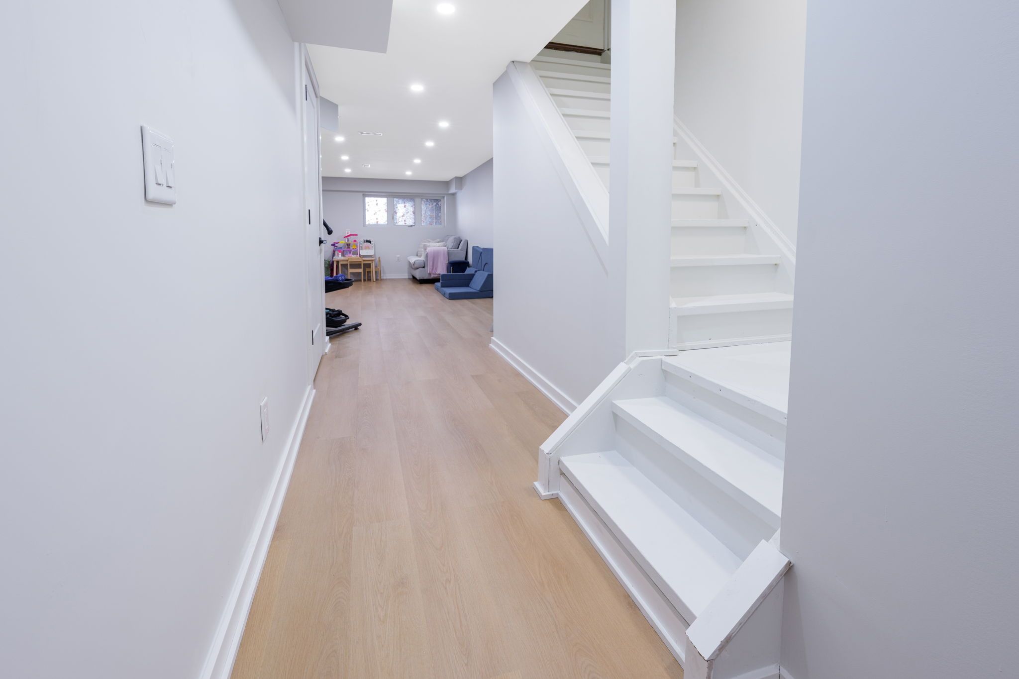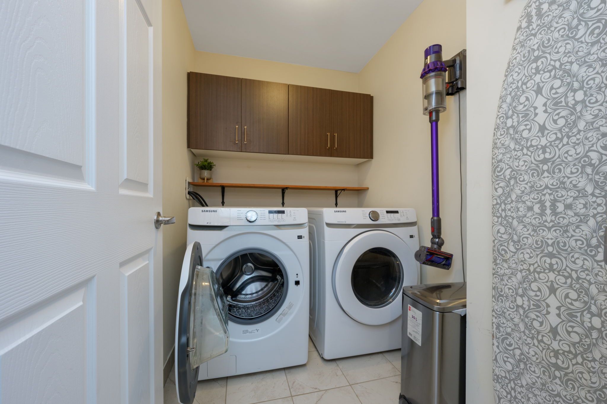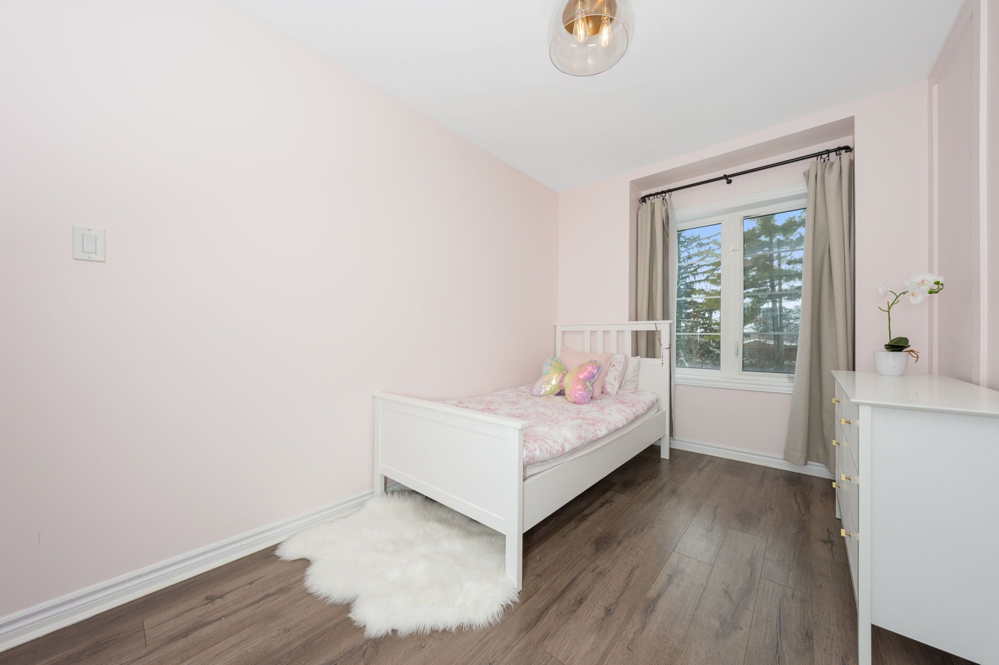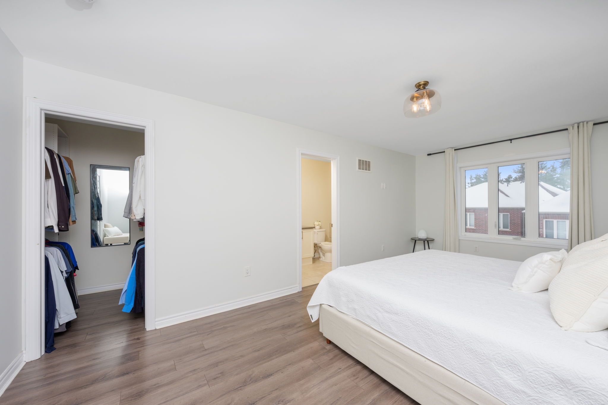 Nestled in a sought-after small enclave, this beautifully appointed townhome offers an exceptional blend of style, comfort, and convenience. Ideally positioned just steps from a park and picturesque trail, the location perfectly balances nature and community living. The striking exterior showcases an elegant stone and stucco façade complemented by a welcoming covered portico that creates a warm and inviting first impression. Inside, the open-concept main level features 9 ft. Ceilings and quality, tasteful finishes, including hardwood flooring and pot lights, creating a bright and inviting feel. The well-designed kitchen features two-tone cabinetry, centre island with breakfast bar, granite countertops, stylish mosaic backsplash, stainless steel appliances and seamlessly open to the living room - perfect both entertaining and family time. The living room offers a walkout to the deck, extending the living space outdoors. A sun-filled dining area flows beautifully into the foyer and is enhanced by an attractive wood staircase. Upstairs, the home offers three generously sized bedrooms, all finished with tasteful laminate flooring. The primary suite serves as a relaxing retreat complete with a walk-in closet and an elegant 4-piece ensuite. A nicely appointed 4-piece bathroom and convenient upper-level laundry complete this level. The finished lower level adds valuable living space, featuring a bright recreation room with large above-grade windows, office and 2-piece bathroom all enhanced by vinyl plank flooring and pot lights. Ample storage/utility space completes the package. Outside, enjoy a nicely landscaped fully fenced yard with a large deck along with covered and enclosed storage conveniently located beneath. The attached garage with house access and parking for 3 cars (1 in garage and 2 in driveway) are a bonus. Ideally situated close to schools, shops, restaurants, and the breathtaking hungry hollow trail system with easy access to main roads for commuters.