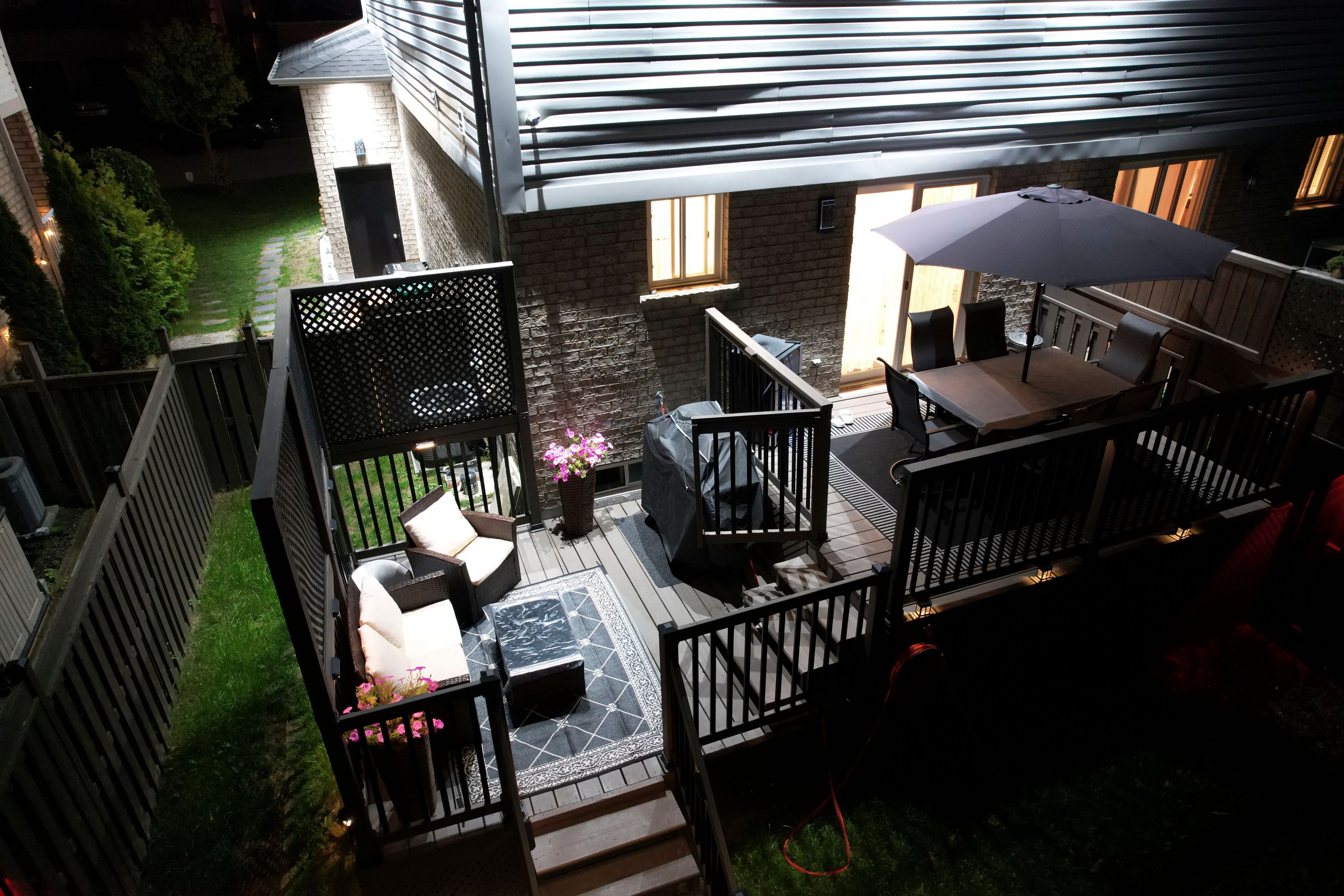 Welcome to this beautifully upgraded 3+1 bedroom end-unit townhouse in barrie's highly sought- after edgehill community. The bright, open-concept main floor features modern laminate and tile flooring, freshly painted interiors, and a bathroom on every level for added convenience. A fully finished basement with a full bath provides additional living space, while recent updates including the furnaces, a/c, and roof offer peace of mind. The home stands out with amazing curb appeal, a private driveway, direct garage access, and numerous exterior upgrades such as phone-controlled pot lights, a new see- through glass garage door, stone walkways, updated landscaping, and a freshly painted exterior. Outdoor living is enhanced with a brand-new deck and steel railing, fire pit platform, new back fence shed with walkway, and a wooden platform for garage storage. Inside, you'll find a smart- home ready setup , smooth ceilings (no popcorn), a striking media wall with a electric fireplace, and fresh paint throughout. Conveniently located near highway 400, schools, parks and shopping, this move-in ready home combines modern updates with everyday convenience.