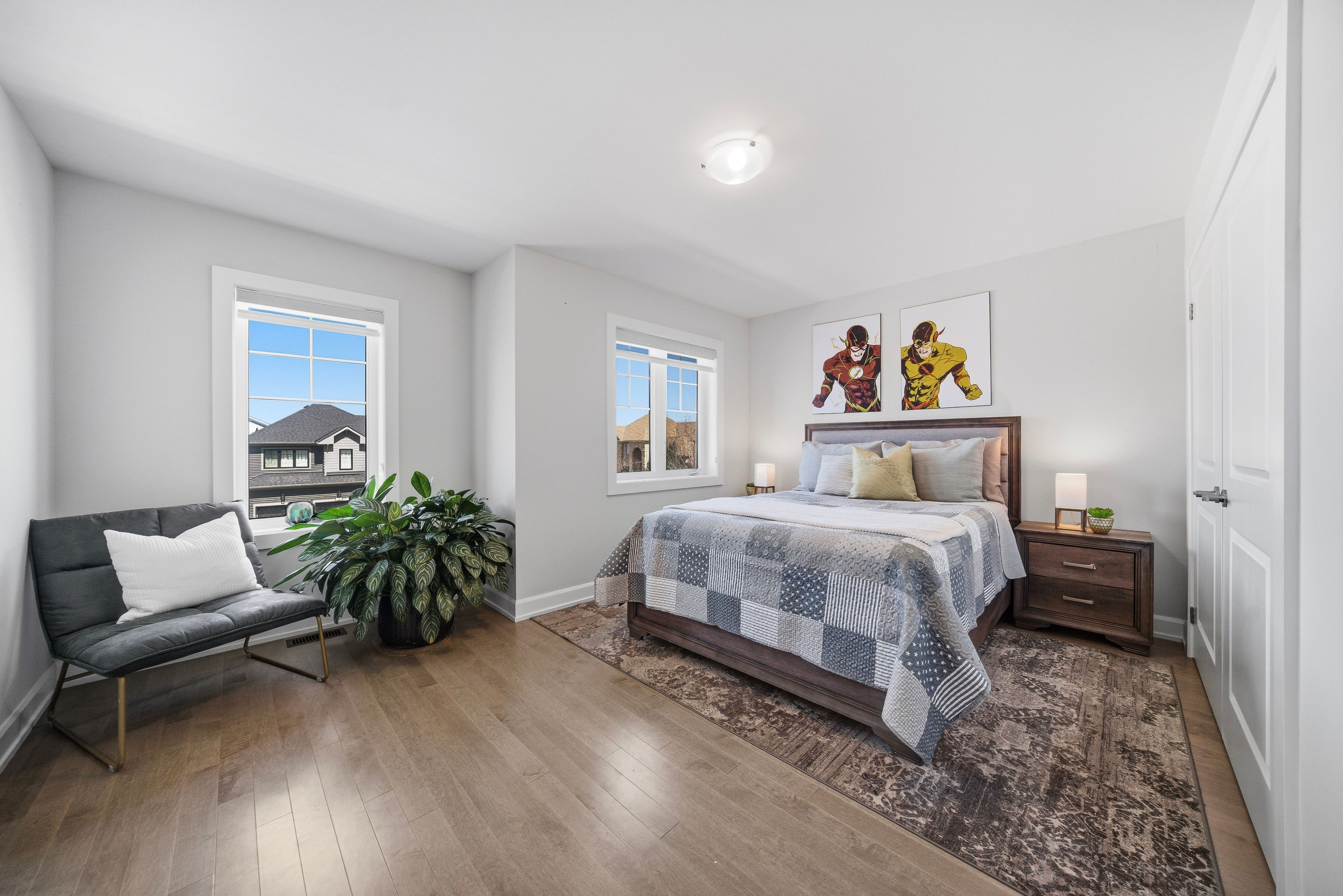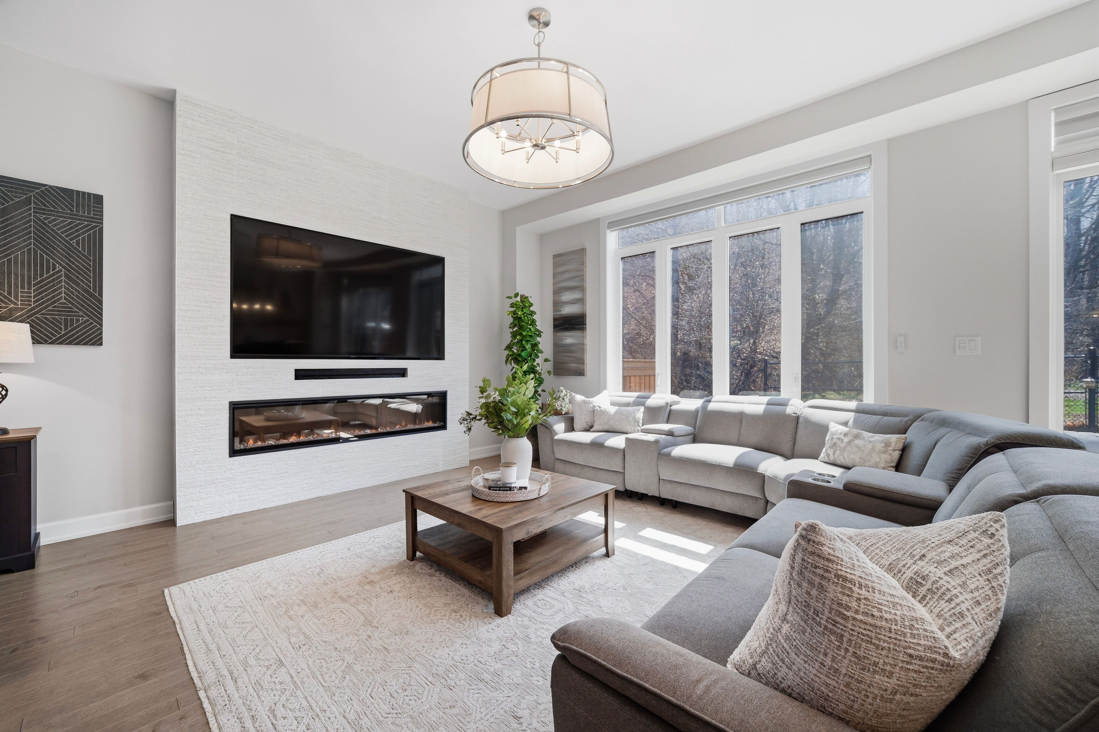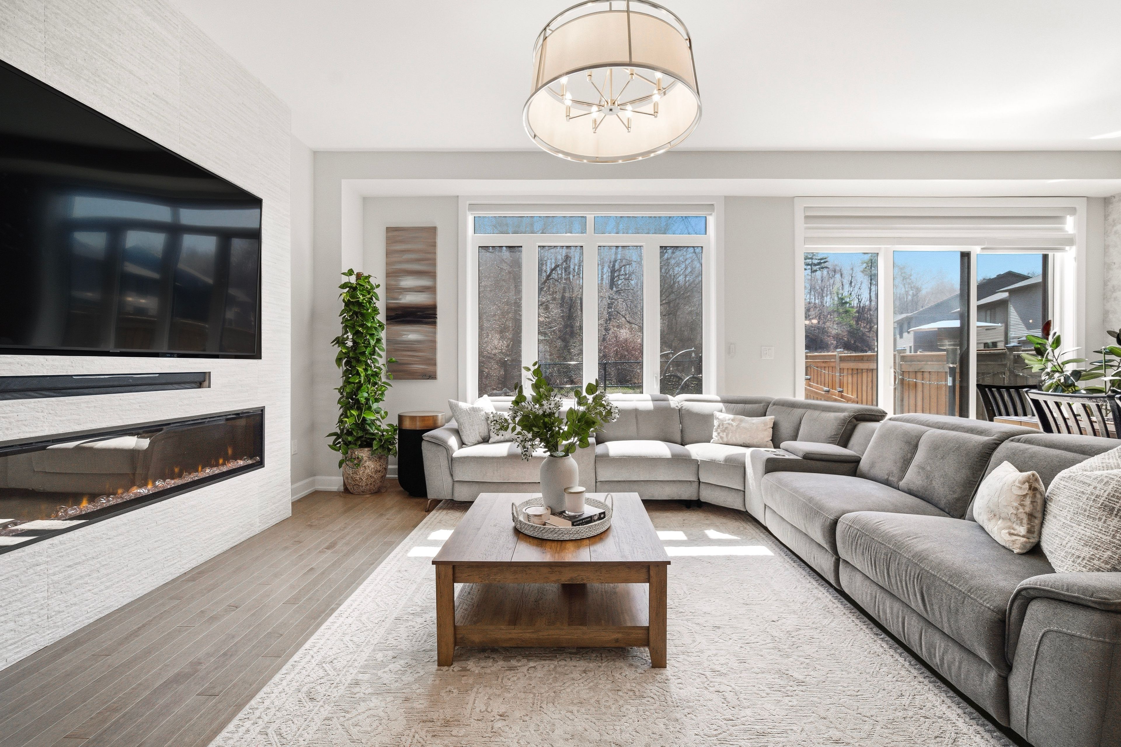 Stunning 3-bedroom, 3. 5-bathroom detached home in sought-after grimsby, offering the perfect blend of elegance, functionality, & modern design. This beautifully maintained property features a double garage & a welcoming foyer that leads into a practical mudroom, with a large closet and convenient powder room-ideal for busy families. The main level showcases a bright, spacious living room with soaring 10-foot ceilings, floor-to-ceiling windows & patio door that flood the space with natural light, built in niche space for the large tv and surround sound speakers and a sleek electric fireplace. The open-concept dining area seamlessly connects to the backyard through sliding doors, creating an ideal setting for indoor-outdoor entertaining. The contemporary kitchen is thoughtfully designed with quality upgraded countertops, matching backspace, large island, additional upgraded cabinetry including waste, pull out racks for deep pots and spices, stainless steel upgraded appliances from cafe, & ample storage space. A solid wood staircase leads to the second level, featuring three generously sized bedrooms, each with large windows and access to full bathrooms. The primary suite offers separate his and hers walk-in closets and a luxurious 4-piece ensuite with double sinks. The second bedroom includes a 3-piece ensuite & double closet, while the third bedroom features oversized windows & a spacious closet. Enjoy the convenience of second-floor laundry. The basement boasts impressive 9-foot ceilings, large egress window included with 2 additional large windows, a freshly painted interior, a spacious recreation area, a partially finished bathroom, & rough-ins for a future kitchen-offering excellent potential for extended living or customization. Step outside to a private, fully fenced backyard, perfect for entertaining or relaxing. Ideally located close to schools, parks, shopping, & all essential amenities, this home is an exceptional opportunity in a family-friendly community.