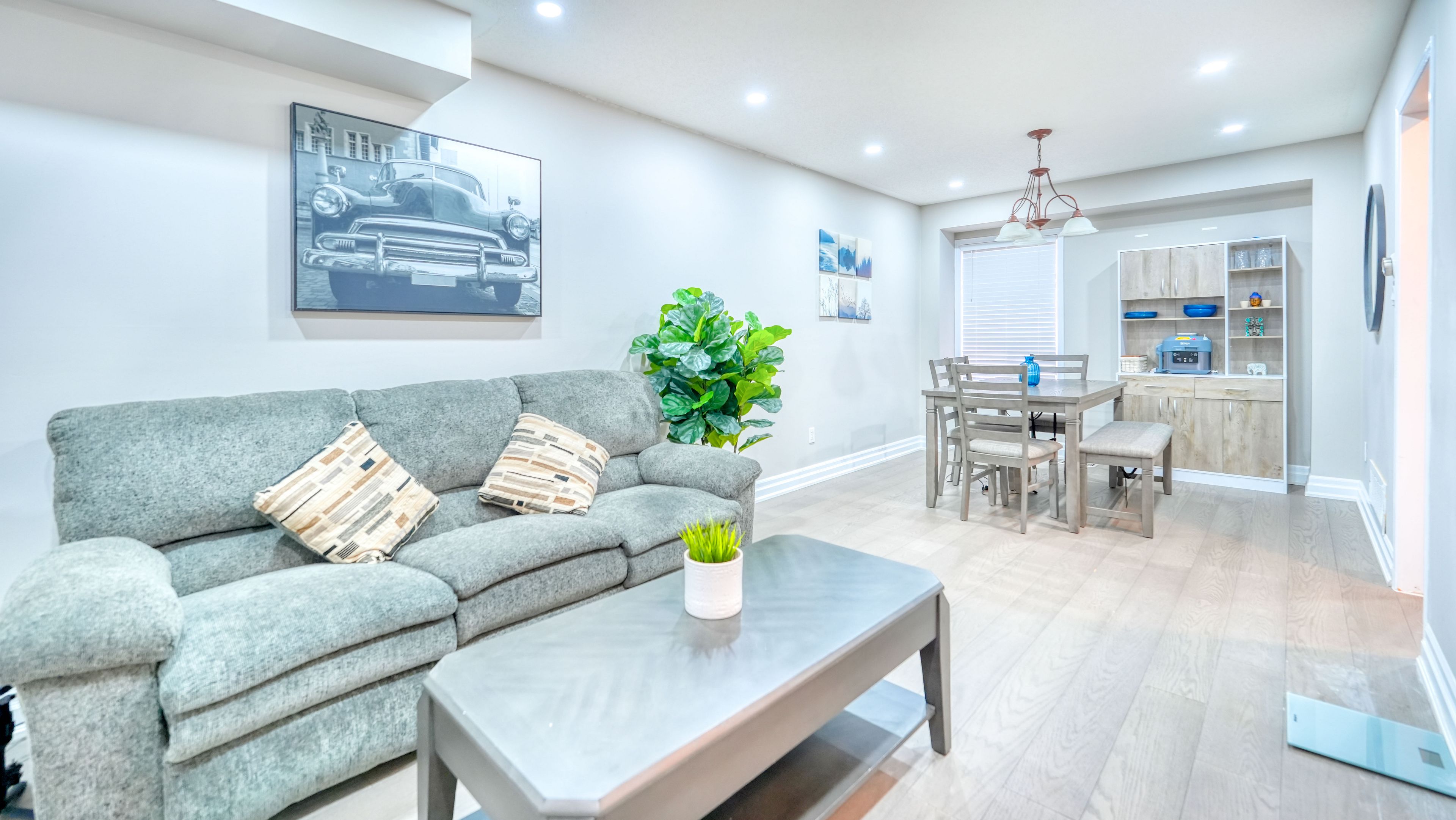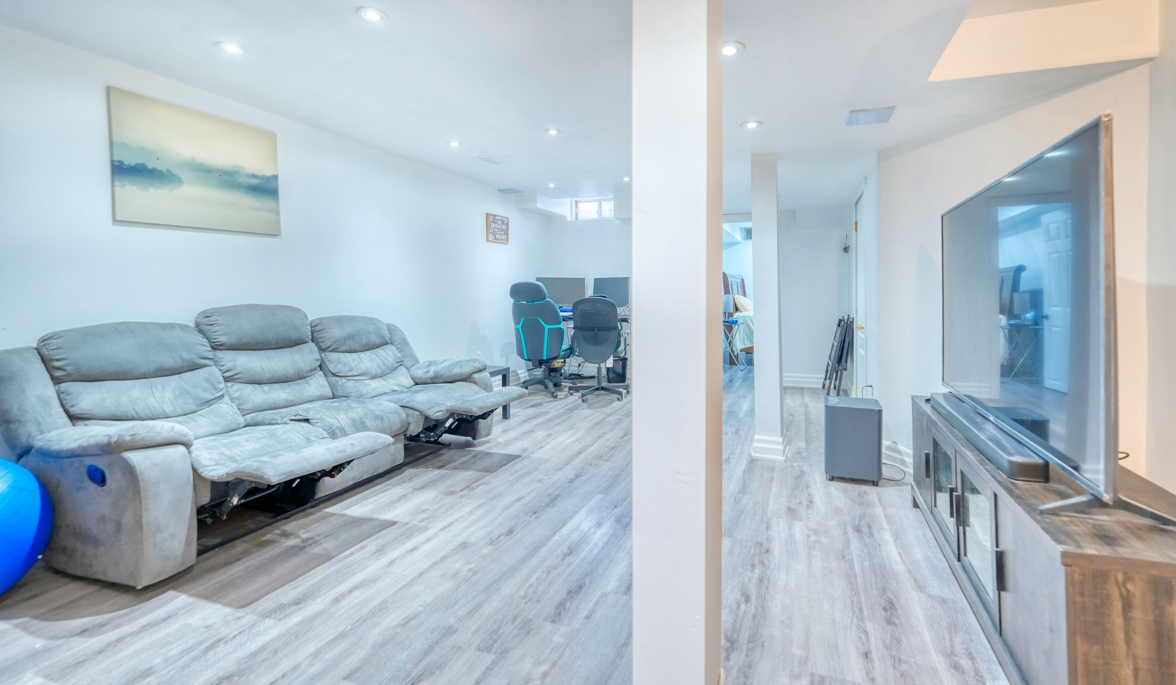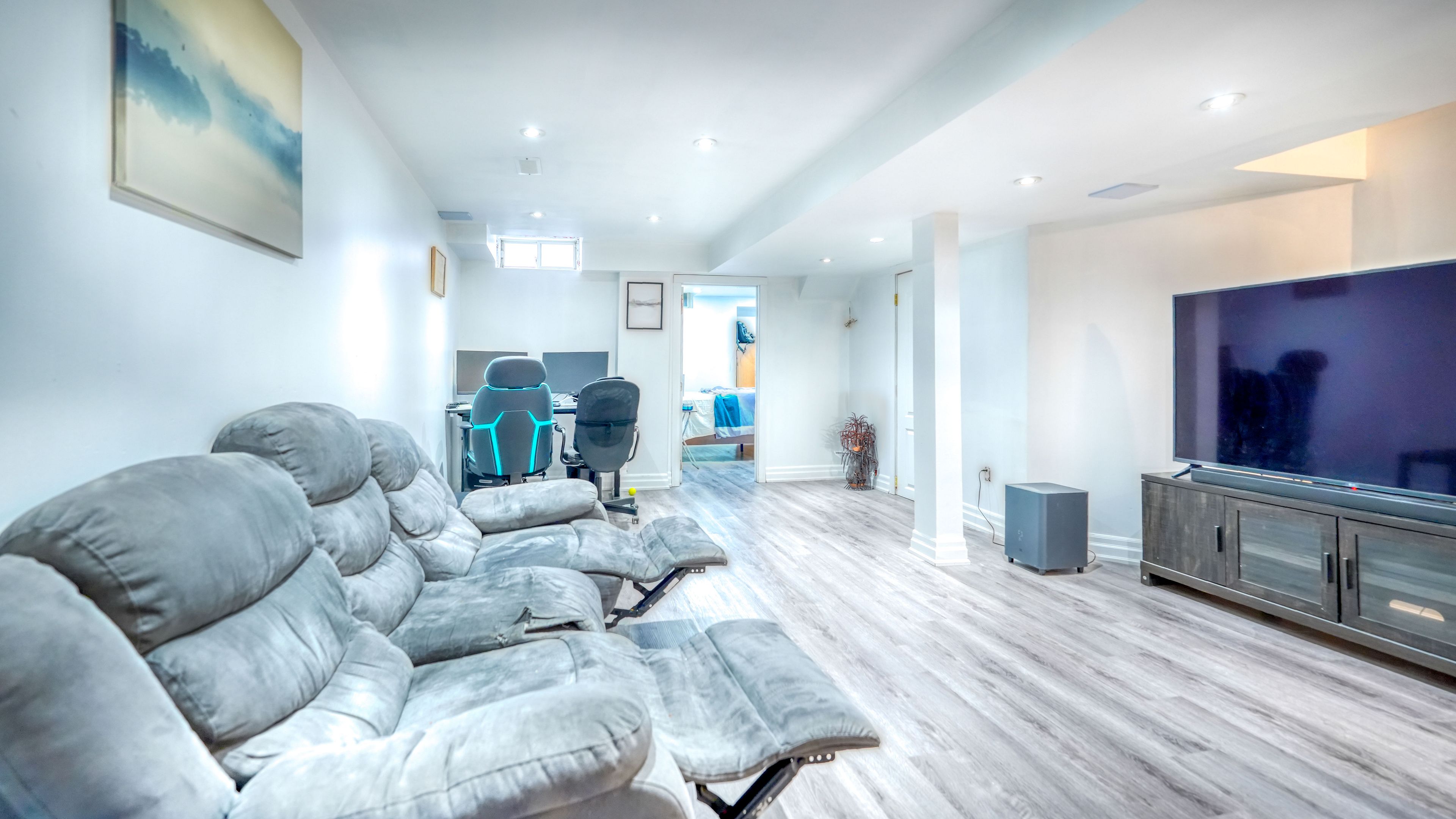 • Versatile finished basement perfect for movies, work, or guest stays.
