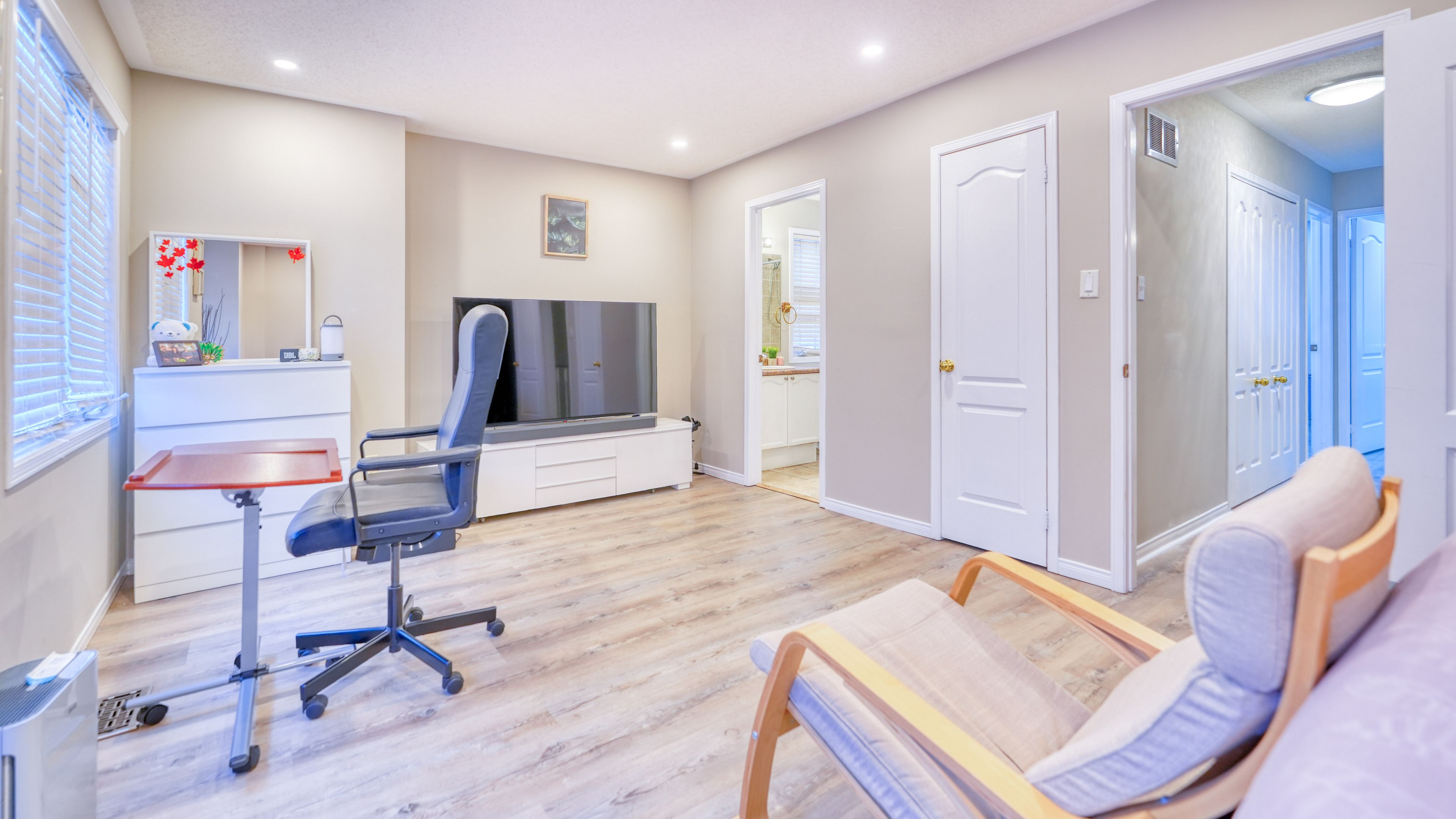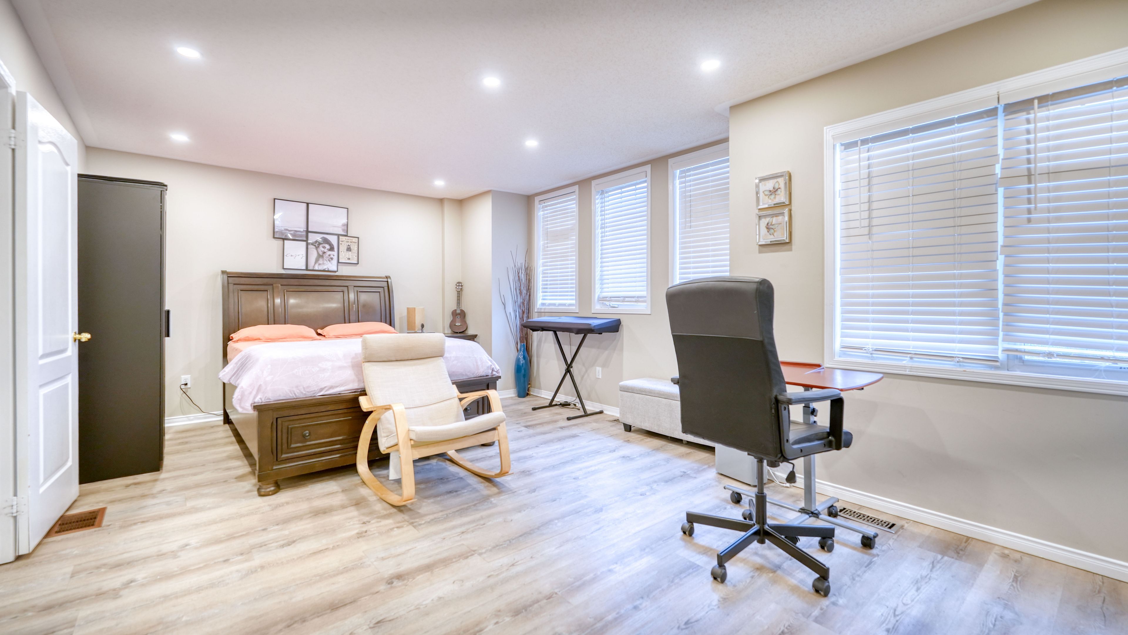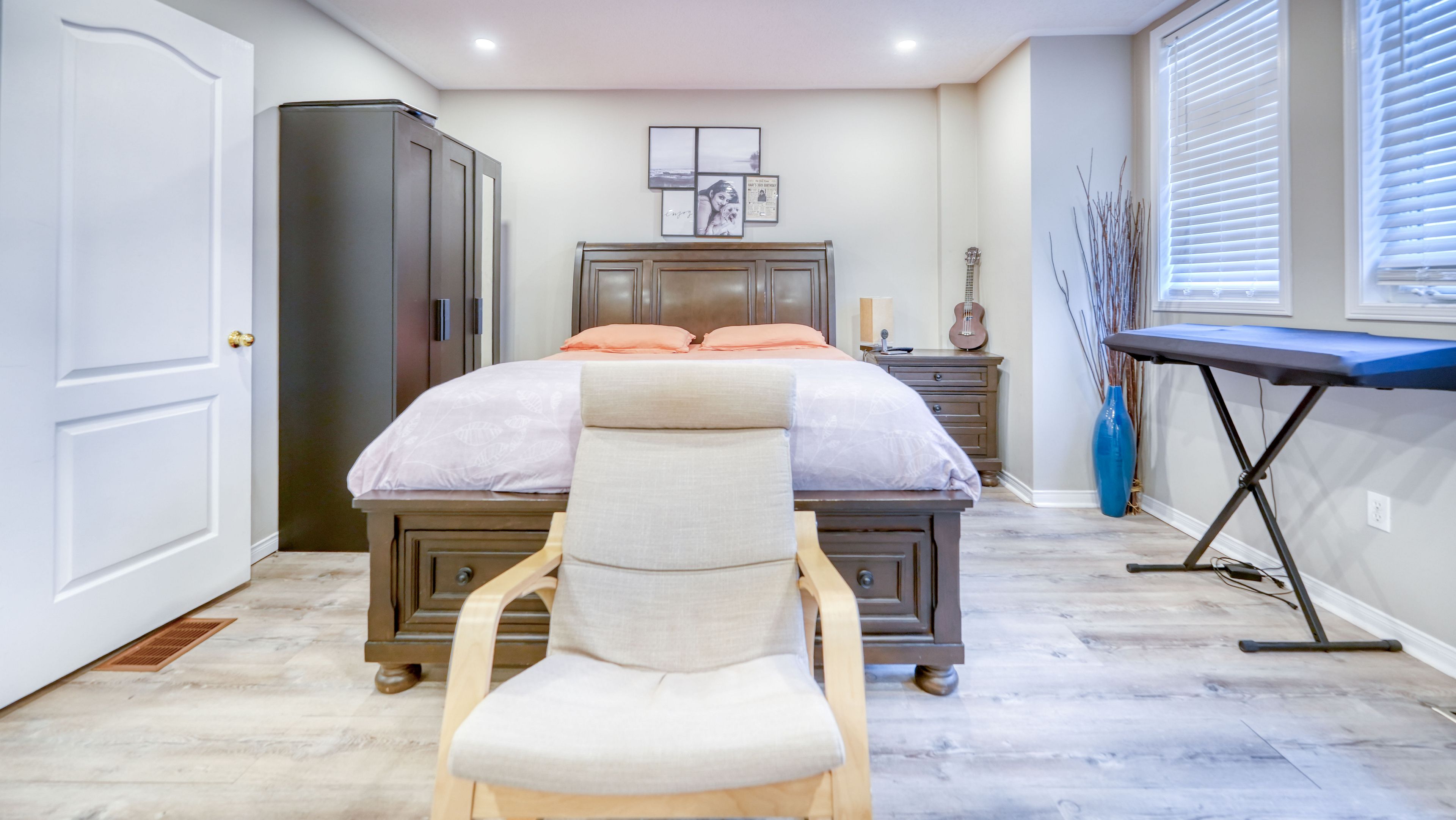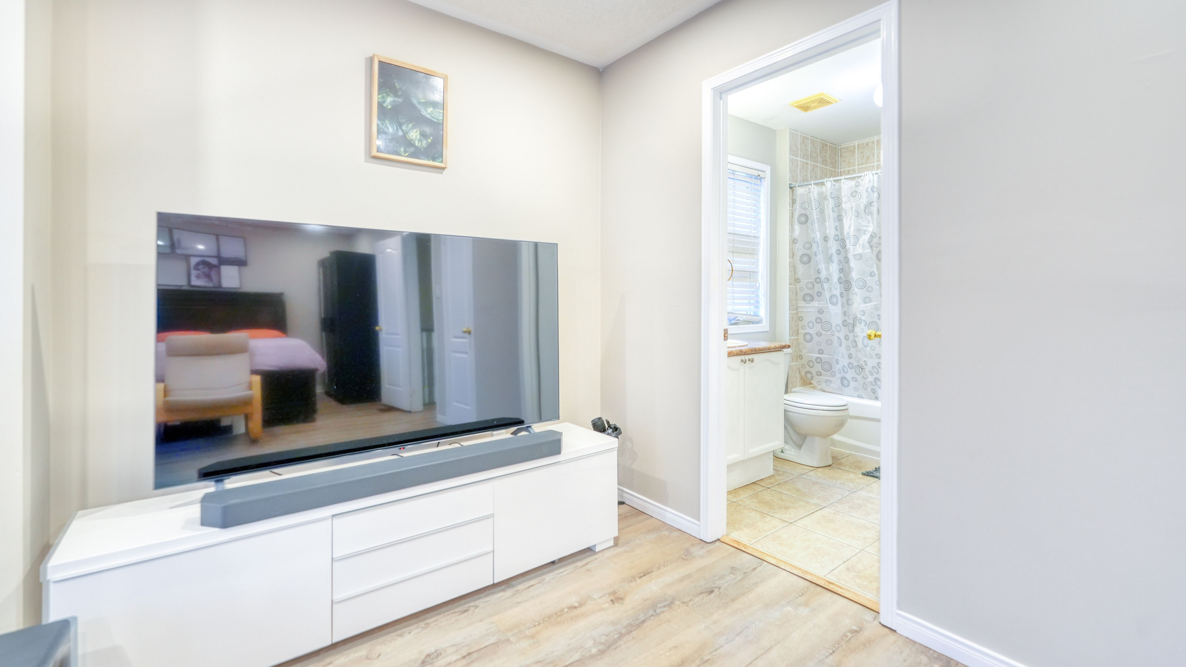 • Versatile finished basement perfect for movies, work, or guest stays.