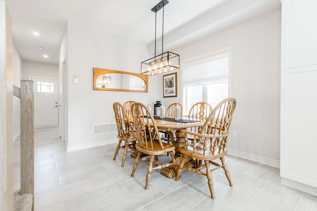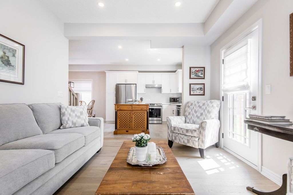 Welcome to this beautifully built semi-detached townhome offering approximately 1,600 sq ft of modern living space on a 30 x 104 ft lot, ideally located just minutes from the ski hills and the four-season recreation this area is known for. The home offers strong curb appeal with professionally landscaped gardens leading to a covered front porch - a perfect place to enjoy your morning coffee or unwind after a day outdoors. The upgraded entry door sets the tone for the stylish finishes throughout. Inside, the layout is both functional and inviting. A bright front room overlooking the street works perfectly as a home office, reading nook, or sitting area. The main living space features 9ft ceilings, upgraded interior doors, pot lights & large windows that fill the home with natural light. Warm wood flooring flows through the living & dining areas, creating a comfortable & welcoming atmosphere. The family room is highlighted by a beautiful shiplap feature wall with an electric fireplace - an ideal spot to relax after a day on the ski hills. The adjoining dining area offers plenty of room for entertaining. The upgraded kitchen includes extended cabinetry with crown molding, a full-depth cabinet above the fridge & a pantry, providing excellent storage and functionality. Upstairs offers three spacious bedrooms & two full bathrooms. The primary suite accommodates a king-size bed & includes a walk-in closet & private ensuite with a glass walk-in shower. A second 4pc bathroom serves the additional bedrooms. The unfinished lower level provides future potential & includes a rough-in for an additional bathroom. Built just one year ago, the home offers modern construction & low-maintenance living. Additional features include a full brick front exterior, 200-amp electrical service & a single-car garage with inside entry and automatic opener. With skiing, hiking, biking, and blue mountain just minutes away, this home offers comfort, convenience, and a true four-season lifestyle.