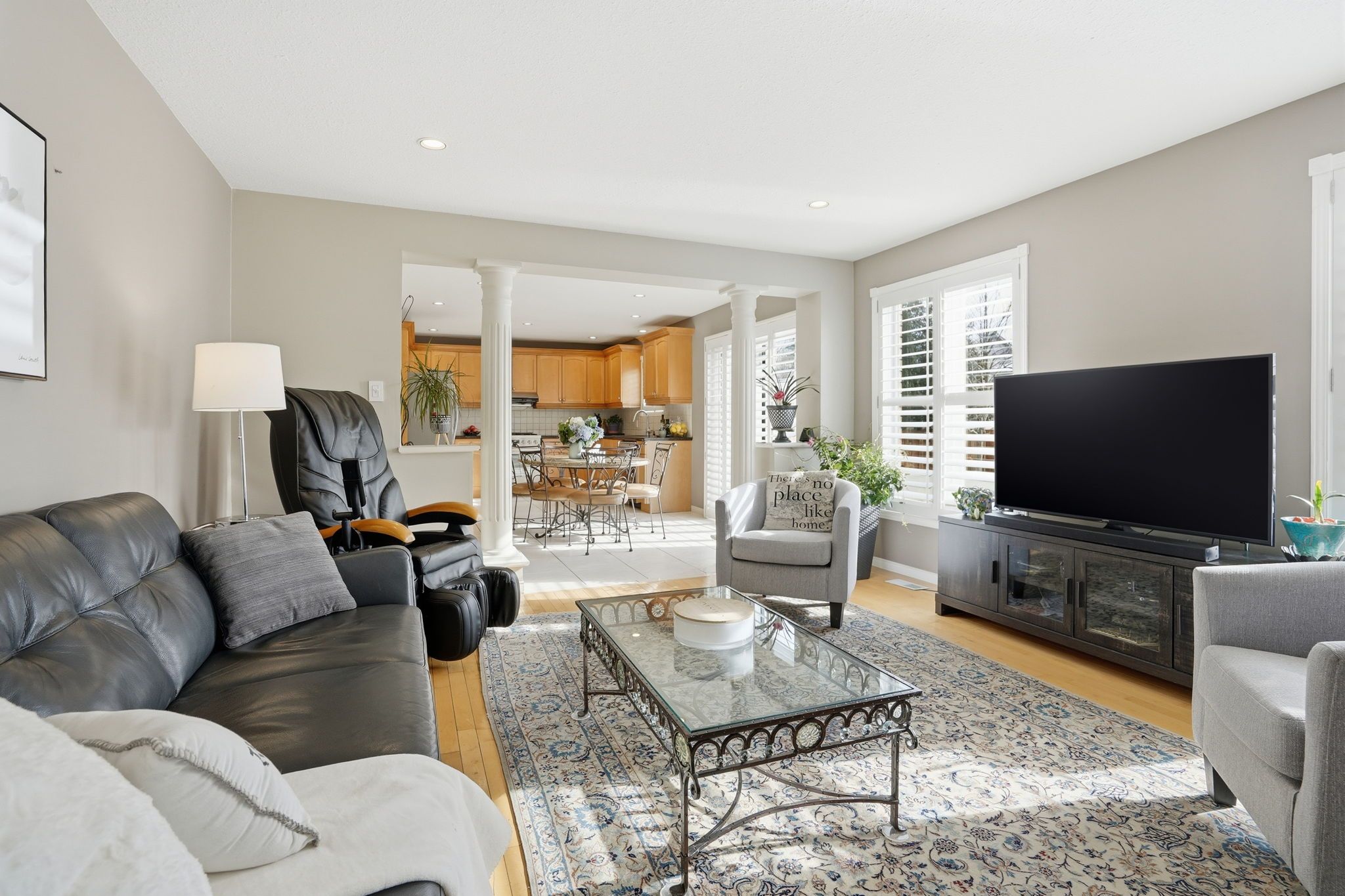 • Open concept living and dining area flows into a well-equipped kitchen.