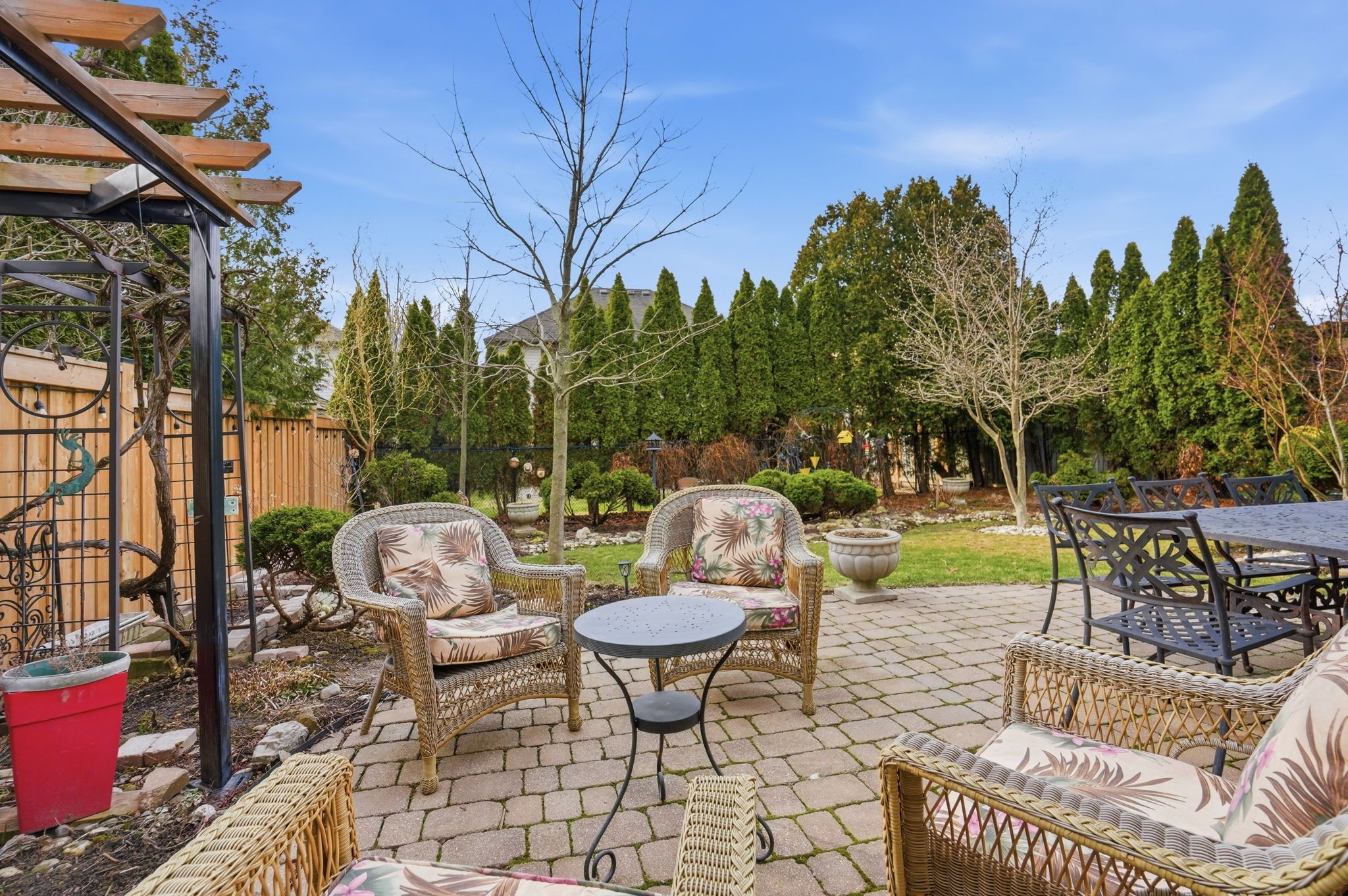 • Private backyard oasis with patio and natural gas BBQ for outdoor enjoyment.