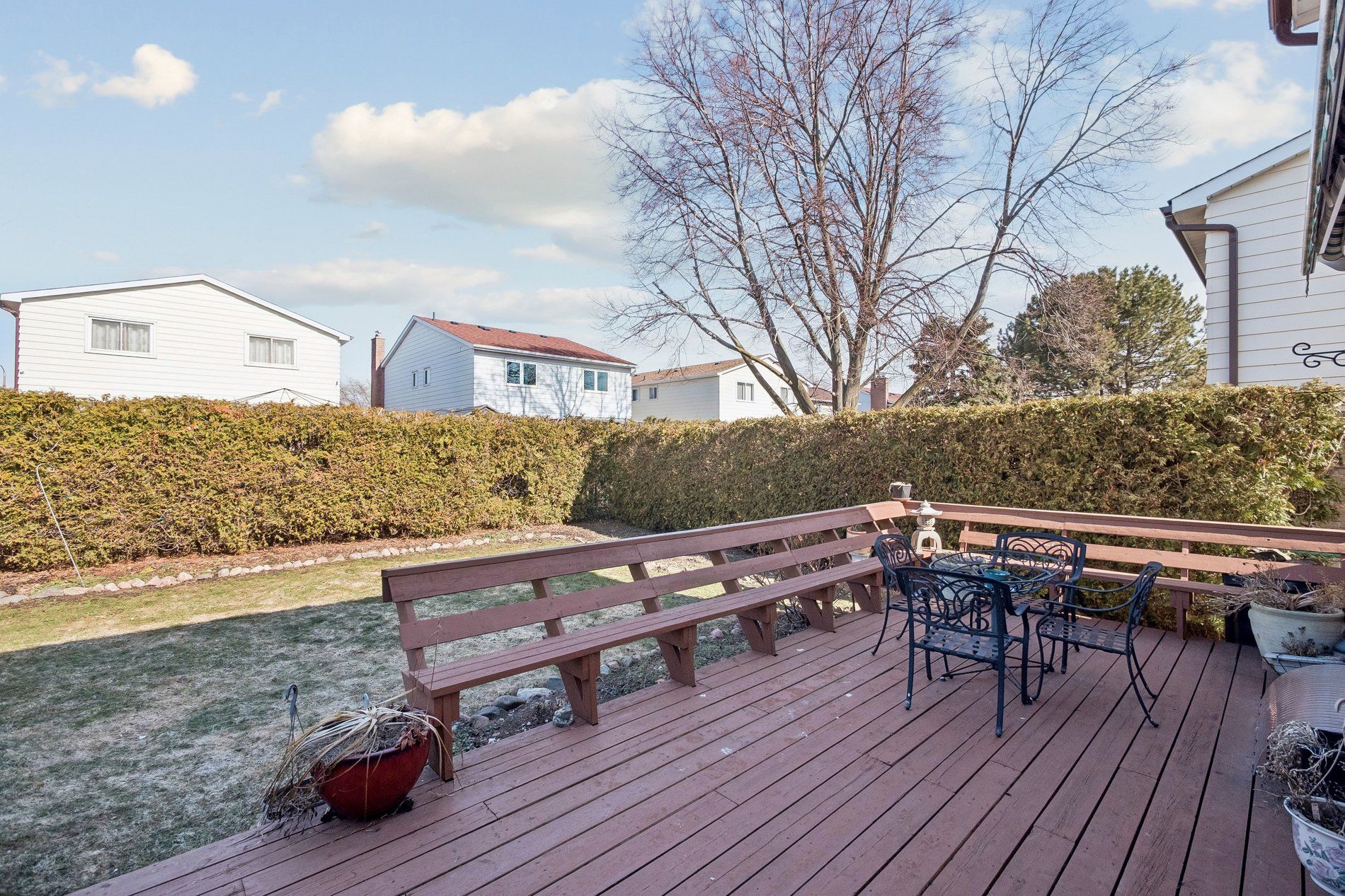 • Spacious deck overlooking a large, private backyard for gatherings.