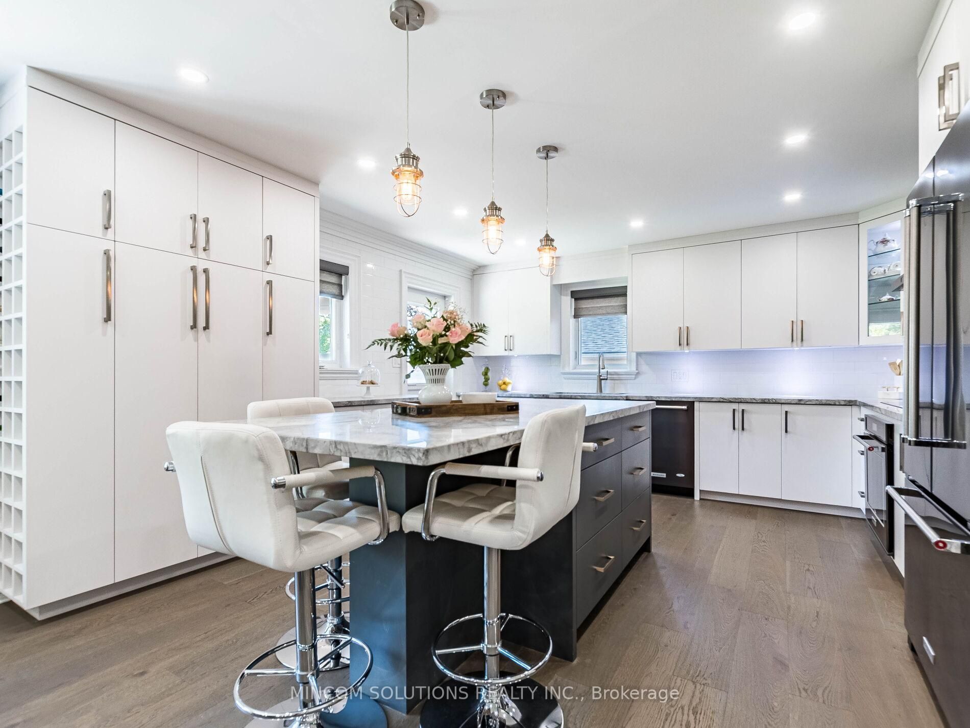 Welcome to 37 suburban drive, an absolute show stopper located in the charming and historic village of streetsville. Completely renovated, loaded with luxury finishes and meticulously maintained. Open concept main floor is an entertainers dream. Designer eat-in kitchen equipped with custom made cabinetry, granite countertops, huge centre island, built-in black stainless steel appliances, oversized pantry, built-in wine rack, undermount sink and pot lights. Family sized dining room with bay window, provides tons of natural light and overlooks the huge backyard, perfect for hosting family gatherings. Large living room with pot lights and wainscoting accent wall. Oversized primary bedroom with custom-built walk-in closet. Fully finished basement offers a large rec room, custom-built bar, natural gas fireplace with stone wall and reclaimed wood mantel, pot lights, built-in work station, shelves and cabinetry. Both full bathrooms have been remodeled with new tile, vanities and oversized walk-in showers. Large fully finished laundry room/kitchen provides in-law suite capability. Entire home has been freshly painted in neutral colours, fitted with pot lights, smooth ceilings, new interior doors, baseboards, trim and crown moulding. Exterior pot lights. Roof re-shingled in 2022, new siding, eavestroughs and downspouts 2022, front and back doors replaced 2019, freshly paved driveway 2025. Professionally interlocked parking pad, walkways, back patio with flagstone front porch. Furnace and tankless water heater (owned) both replaced in 2019. Nothing to do but move in and enjoy! Truly a pleasure to show.