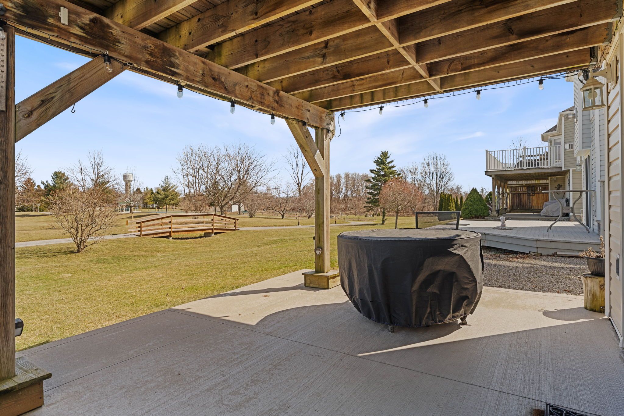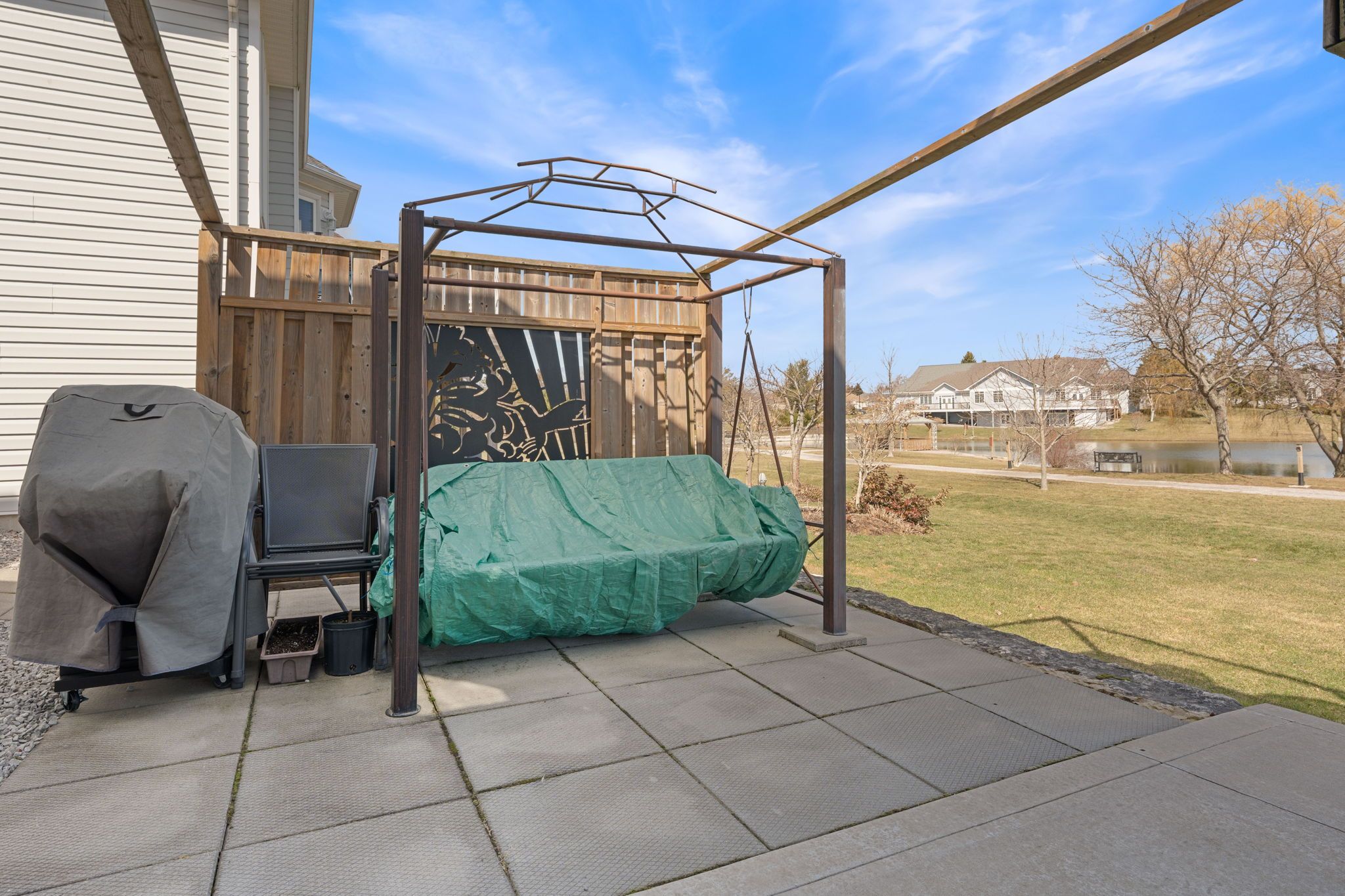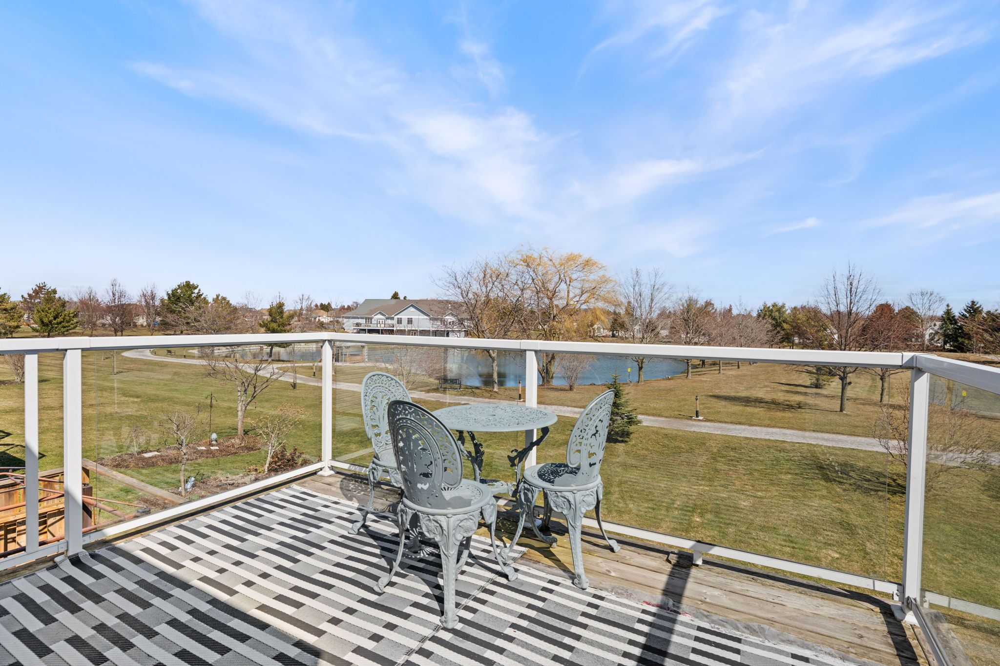• Upper deck offers peaceful views of the pond and walking trails.