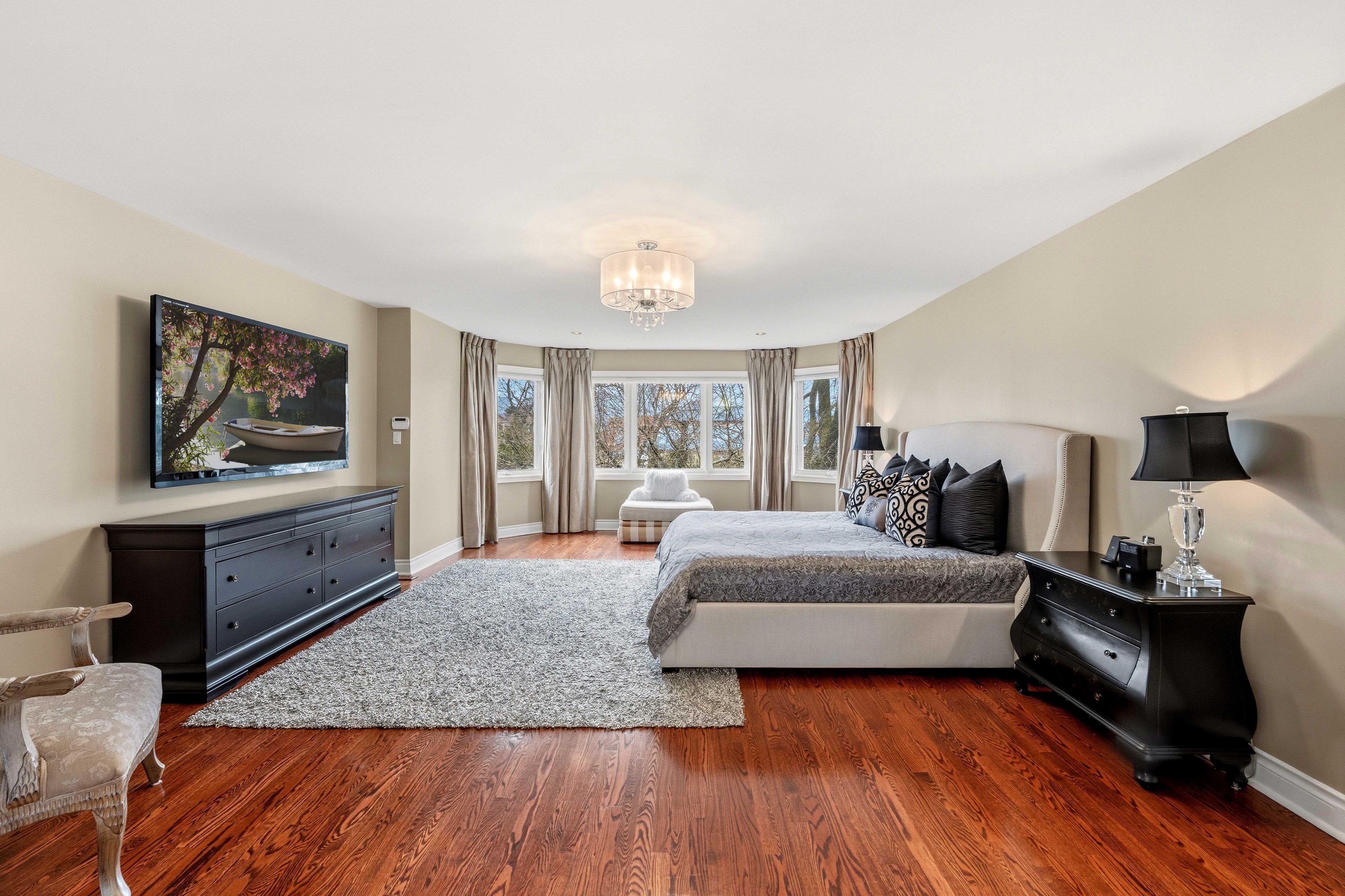 Exquisite, original-owner residence in prestigious thornhill, set on a rare and beautifully landscaped 49 x 200 ft lot in a quiet, established pocket. Offering approximately 4,350 sq. Ft. Of refined living space, this fully renovated (2020) 5+2 bedroom, 6-bath home showcases a striking stone fagade, custom interlocking driveway, and exceptional curb appeal. Inside, elegant principal rooms feature hardwood flooring, plaster mouldings, pot lights throughout, custom designer lighting, and a sun-filled living/dining area with bay window. The private office is finished with wainscoting, built-in bookcases, and hardwood floors. The chef-inspired kitchen is equipped with premium sub-zero, wolf, and miele appliances, including a 6-burner cooktop, warming drawer, custom hood fan, and wine fridge, with a bright breakfast area and walk-out to deck. The fully finished basement with 9-ft ceilings offers a separate entrance, wet bar, wine cooler, sauna, and a private nanny's suite with 3-piece bath, ideal for extended family or potential in-law living. Additional features include 2 gas fireplaces, skylight with rope lighting, custom electric blinds, central a/c, central vacuum, alarm system, water softener, sprinkler system, and ev charger in the garage. Located minutes to top-rated schools, parks, promenade shopping centre, transit, and major highways, this is a rare opportunity to own a meticulously upgraded home on an exceptional lot in one of thornhill''s most desirable family neighbourhoods.