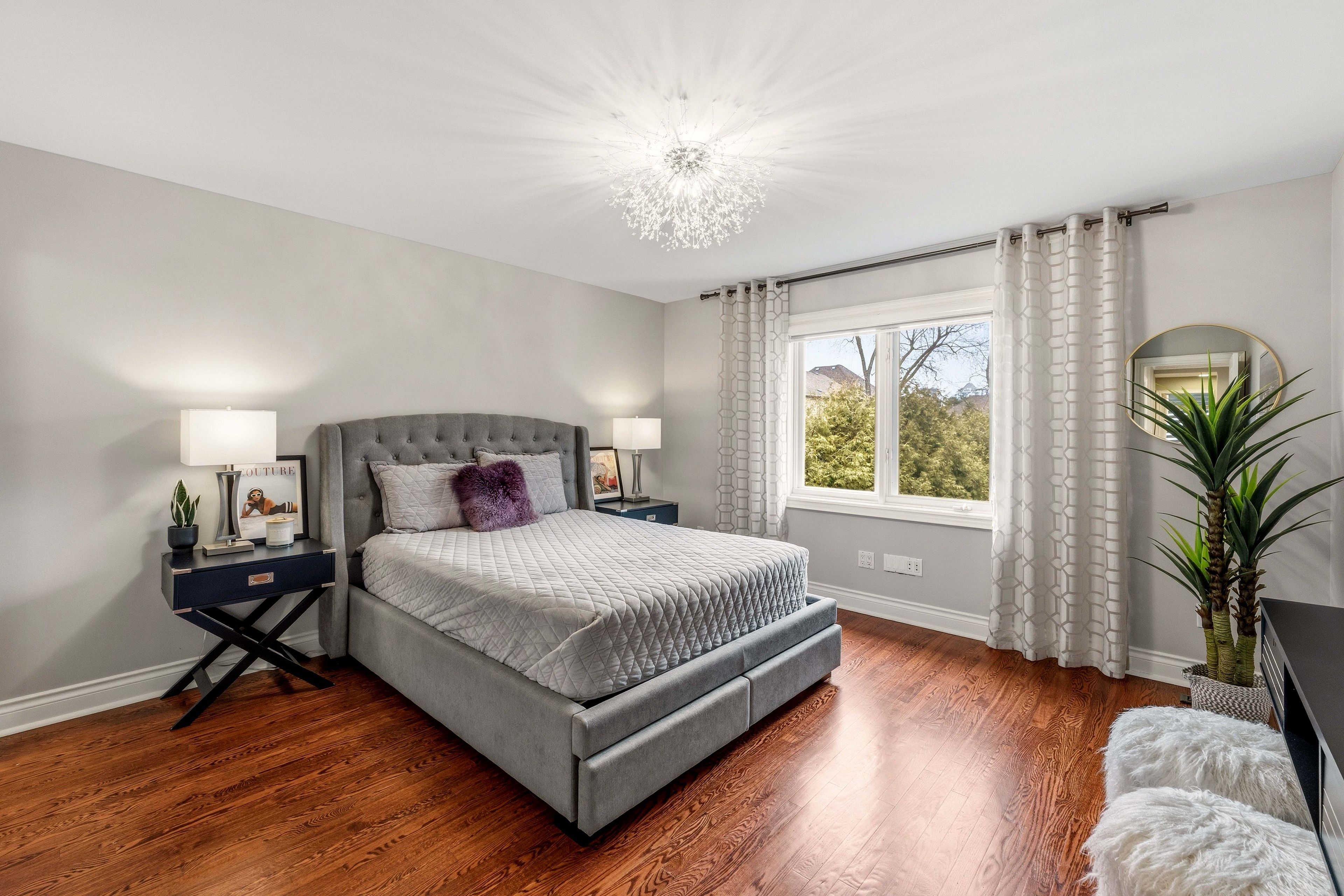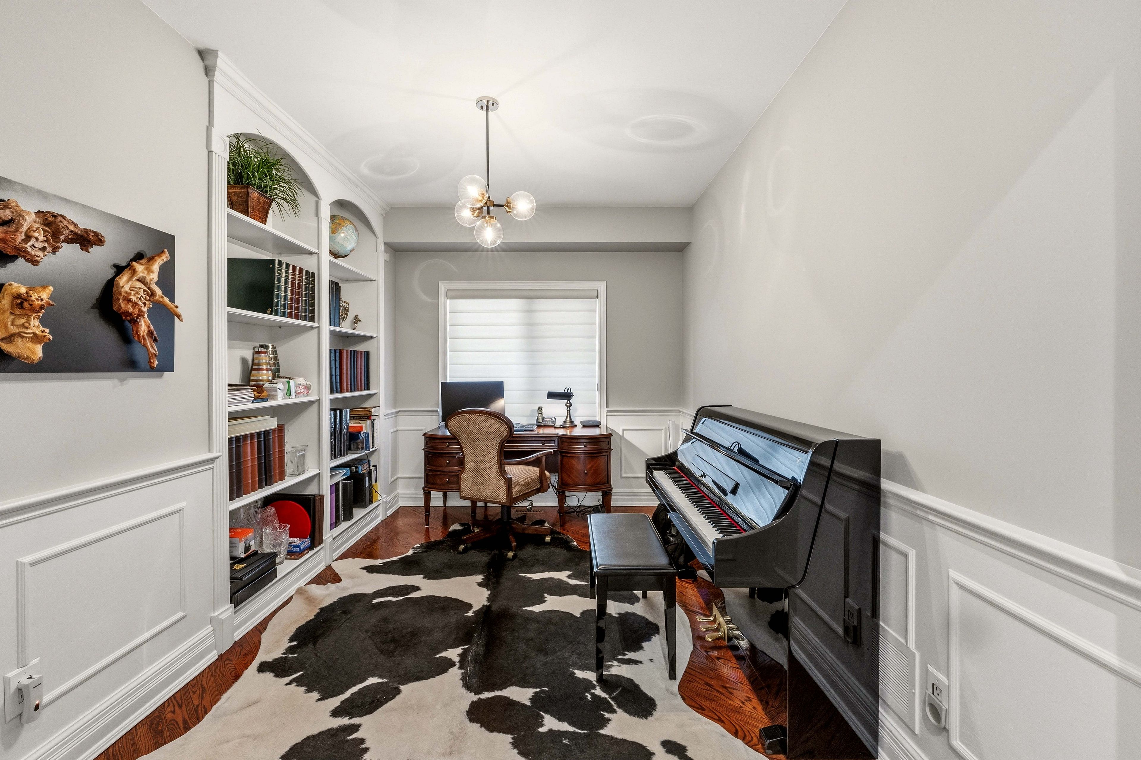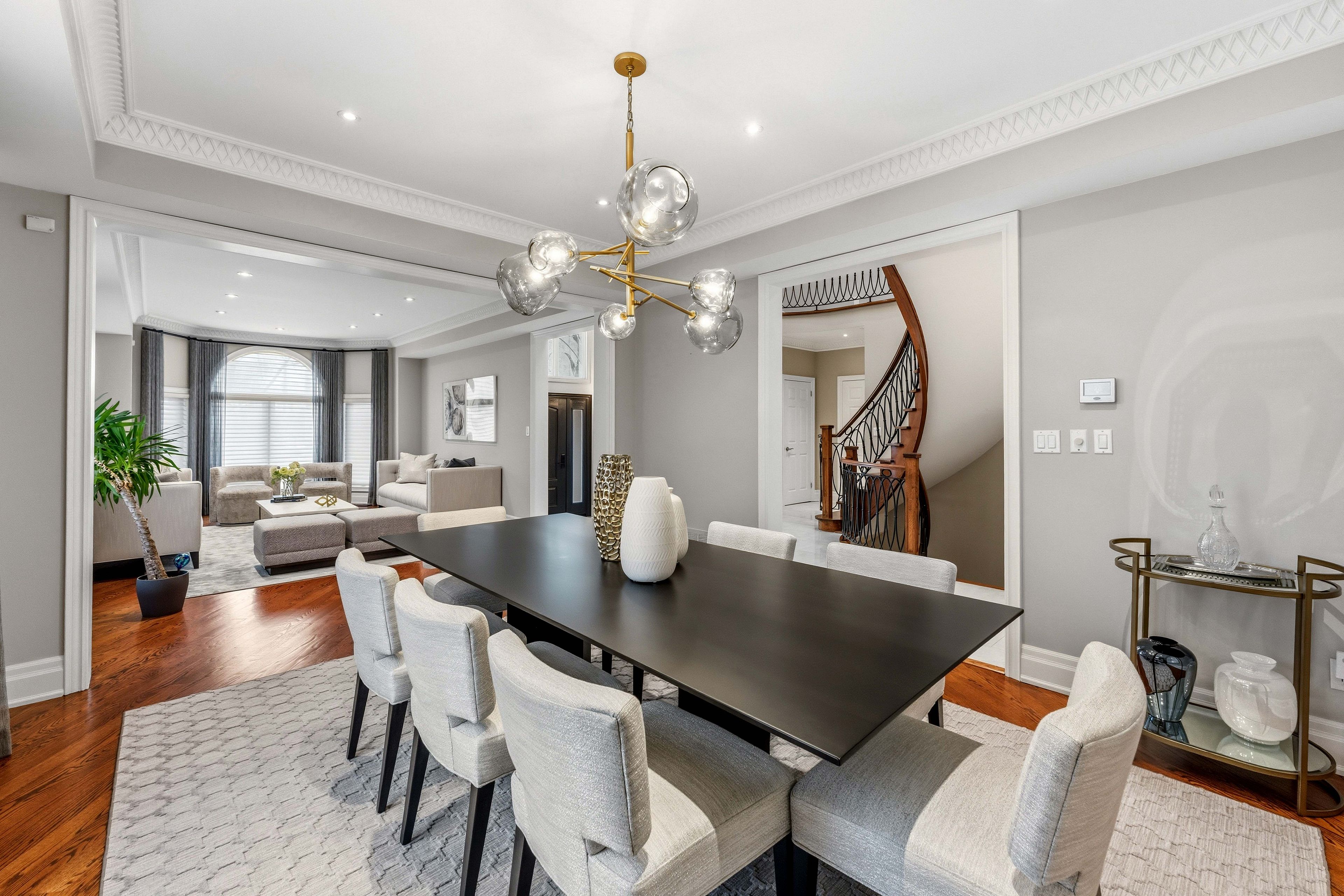 • Elegant interiors with hardwood flooring, plaster mouldings, and custom lighting.
