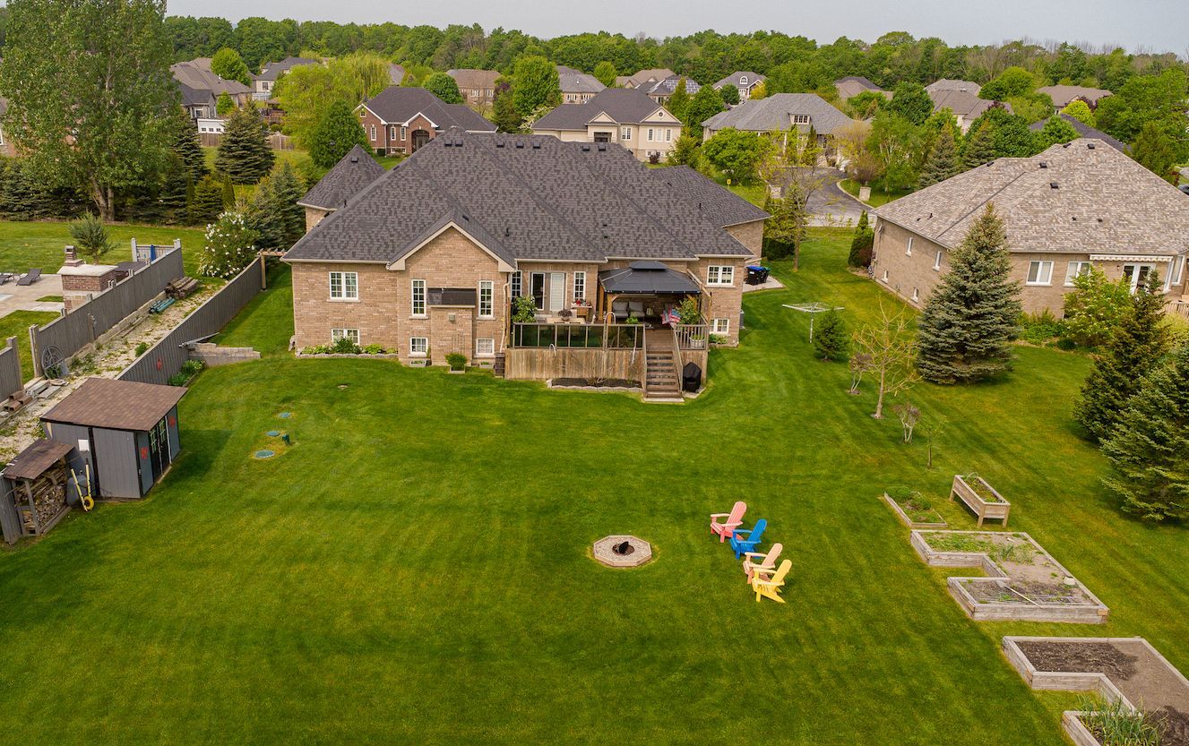 Are you looking for space, comfort, and a great location for your family? This beautiful home offers over 2,600 sq. Ft. Of living space on the main floor and an oversized triple garage with plenty of room for cars, toys, and storage. Set on a -acre lot in one of wasaga beach's most sought-after estate communities, this home is surrounded by other high-quality, luxury properties. You can enjoy a quiet country feel while still being just minutes from town. Step inside to bright, open living spaces designed for family life and entertaining. The recently updated kitchen features a large island and flows into the family room with soaring cathedral ceilings - the perfect place to gather. There is also a separate living room and dining room for more formal occasions. The primary bedroom is a private retreat with a walk-in closet, a second closet, double sinks, a relaxing soaker tub, and a glass shower. Two additional spacious bedrooms share a full bathroom, making this layout ideal for growing families. You'll love the 9-foot ceilings, large windows, and natural light throughout the home. The backyard offers plenty of space to play and relax, plus an extended deck that's perfect for outdoor dining and summer evenings. The partially finished basement is ideal for extended family or guests. It features two staircases, a full in-law suite with its own kitchen, three bedrooms, two full bathrooms, and a large recreation area. There is also a large unfinished space for storage or future plans. The location is hard to beat. Walk to macintyre creek trails, drive just 5 minutes to shopping, dining, and the beach, 15 minutes to collingwood, and 25 minutes to blue mountain village. Recent updates include a new roof (2022) and new black front windows (2025). This is not a cookie-cutter home. It is a unique estate property in a well-established luxury neighbourhood - ready for your family to move in and enjoy.