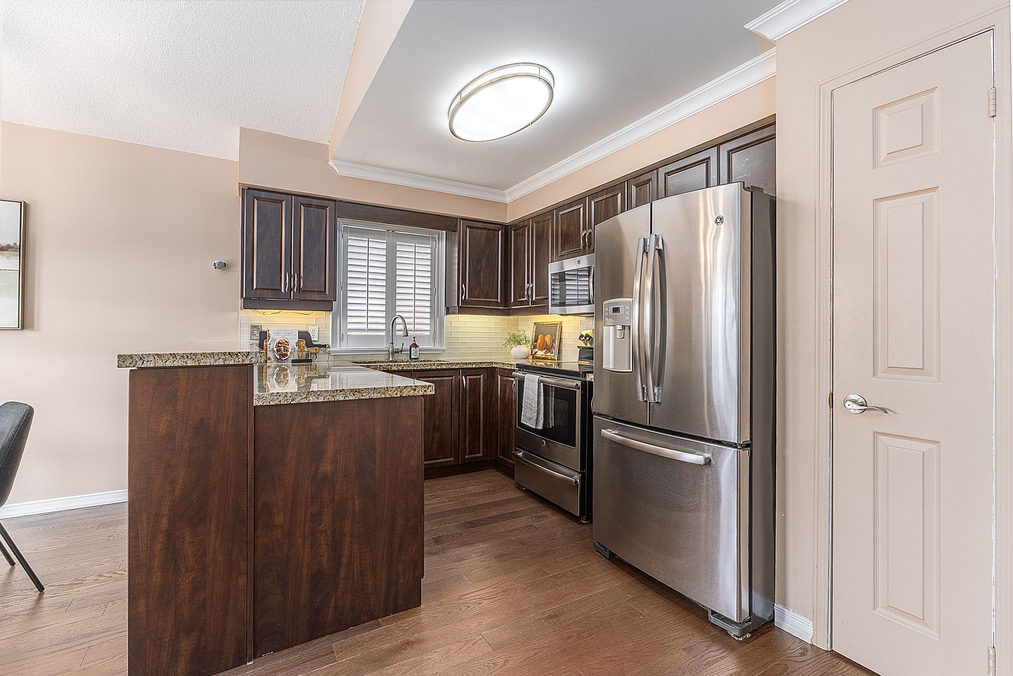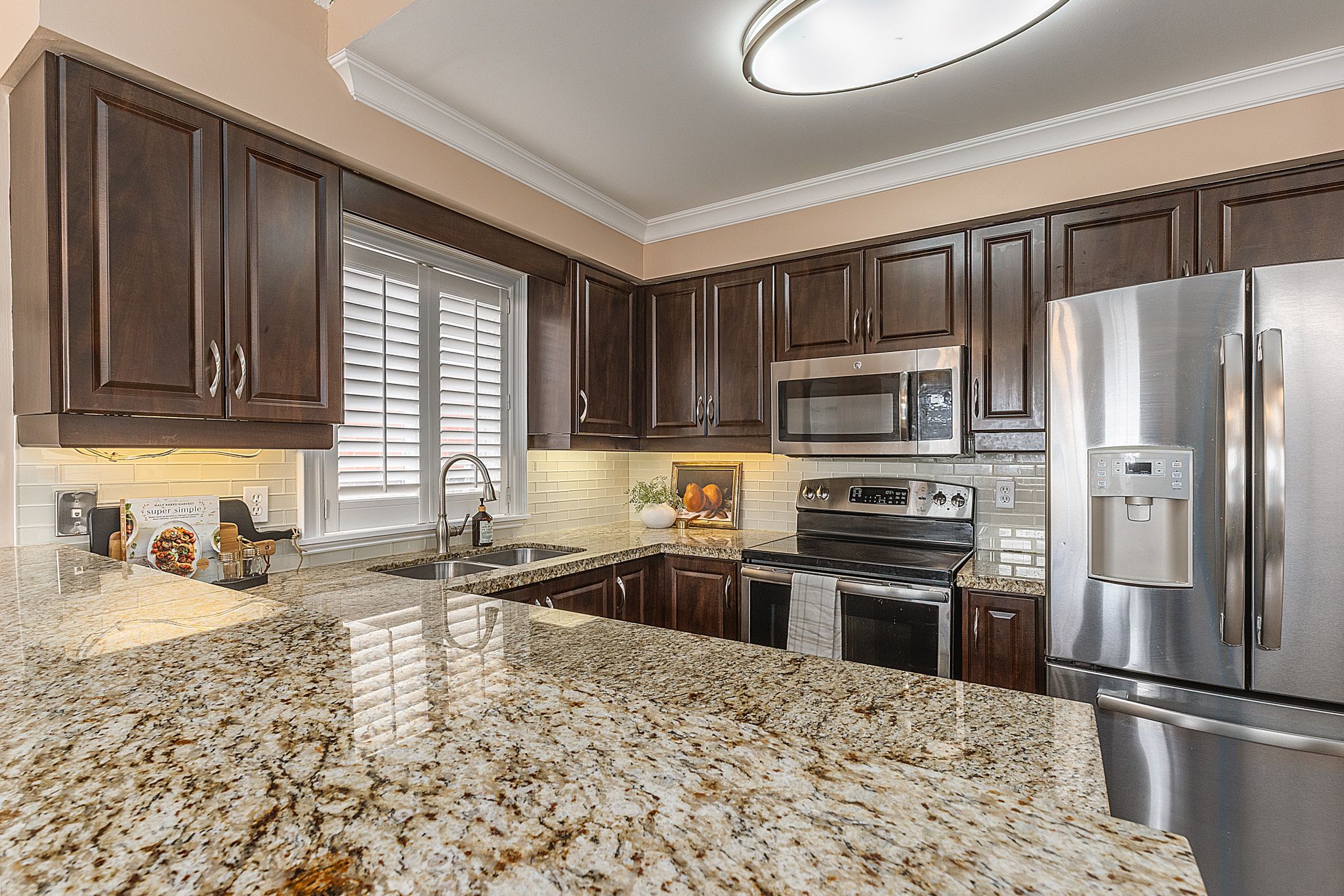 • Open-concept kitchen overlooks the backyard and connects living areas seamlessly.