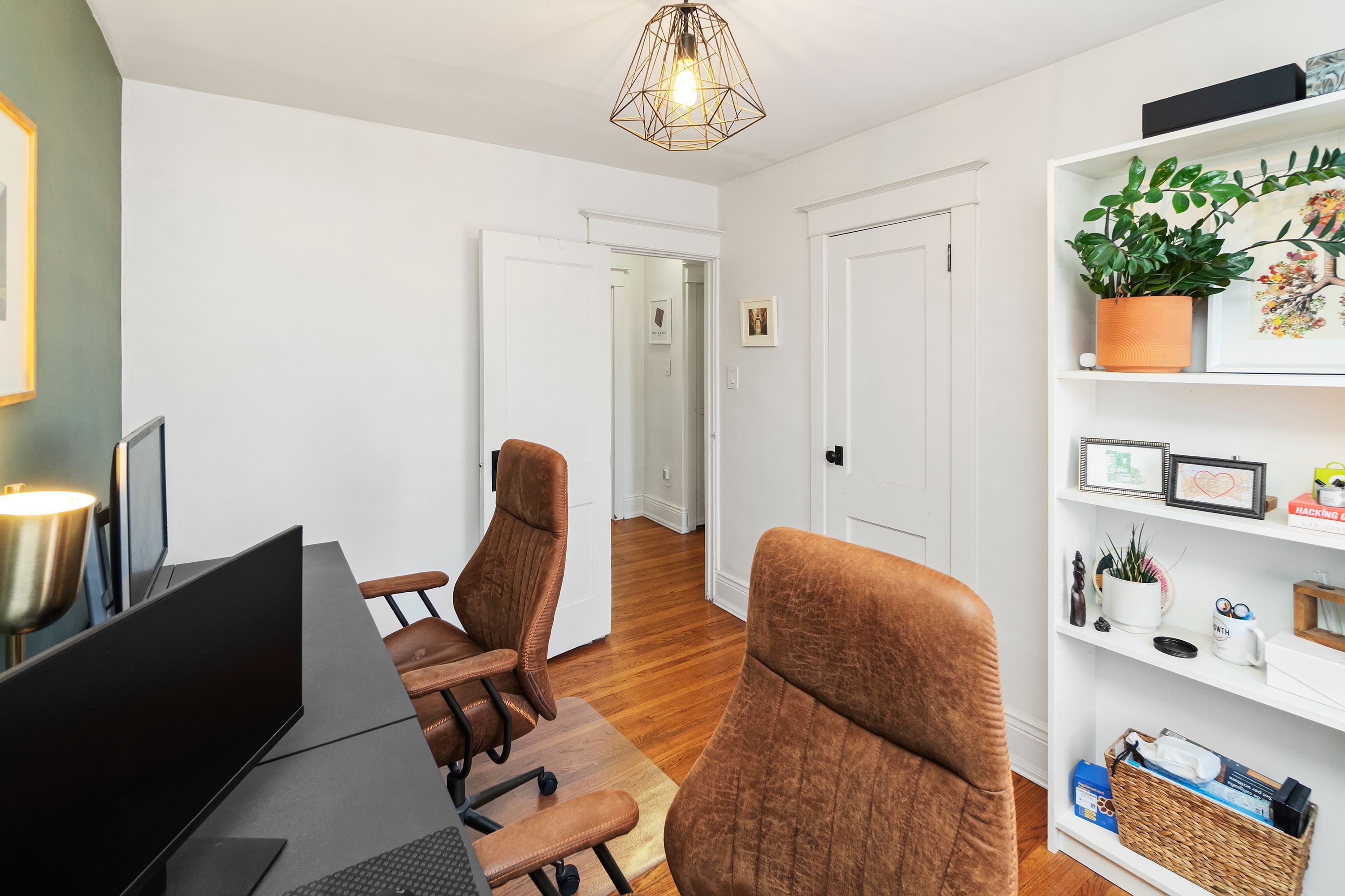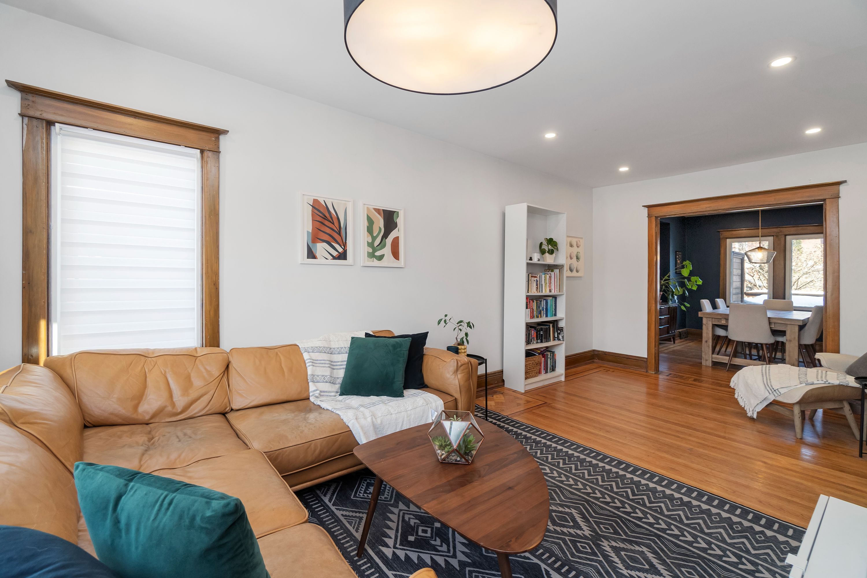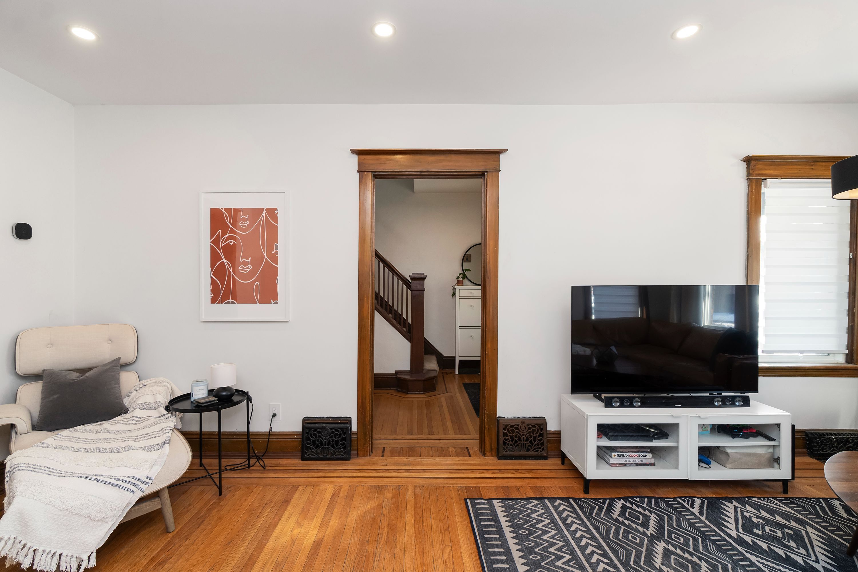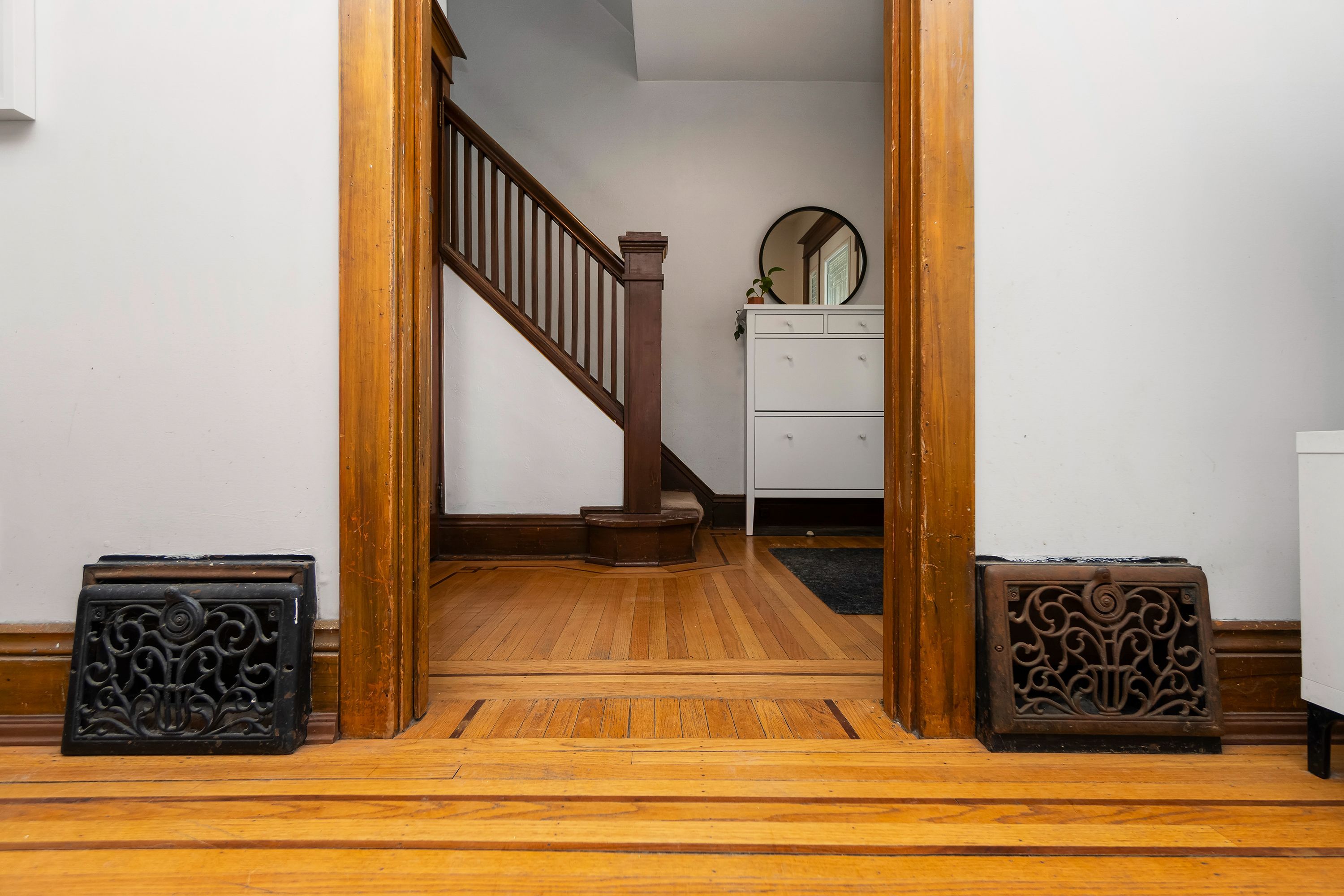 • Beautiful original hardwood floors and unique stained-glass details.