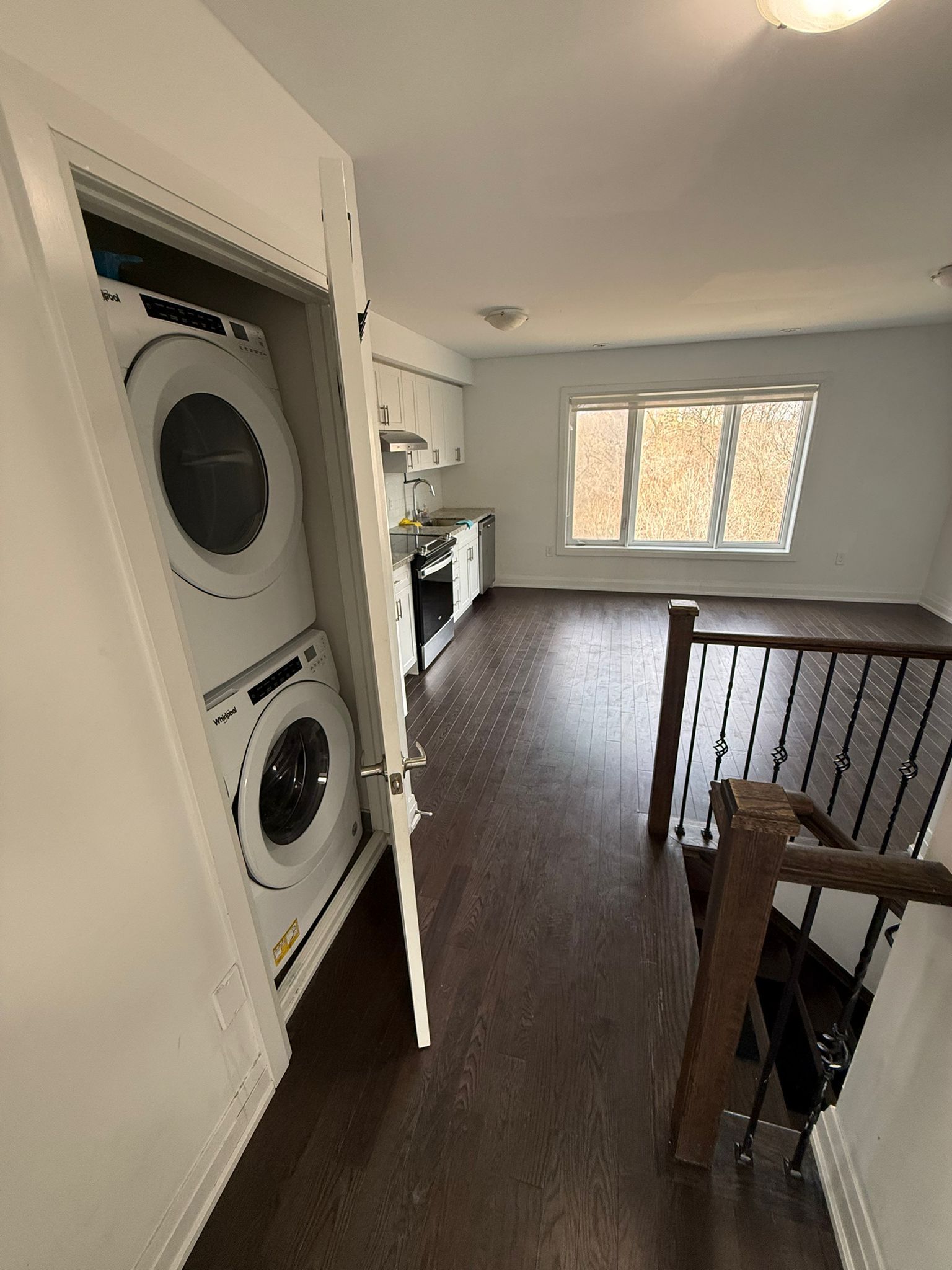 Welcome to riverside residences! This bright and spacious 2-bedroom, 2-bathroom main floor unit in a semi-detached duplex offers stunning ravine and black creek river views. Featuring an open-concept layout, hardwood flooring throughout, and a modern kitchen with quartz countertops and stainless steel appliances. Street parking available. Ideally located just steps from lawrence avenue, public transit, schools, places of worship, parks, and everyday amenities-an exceptional place to call home.