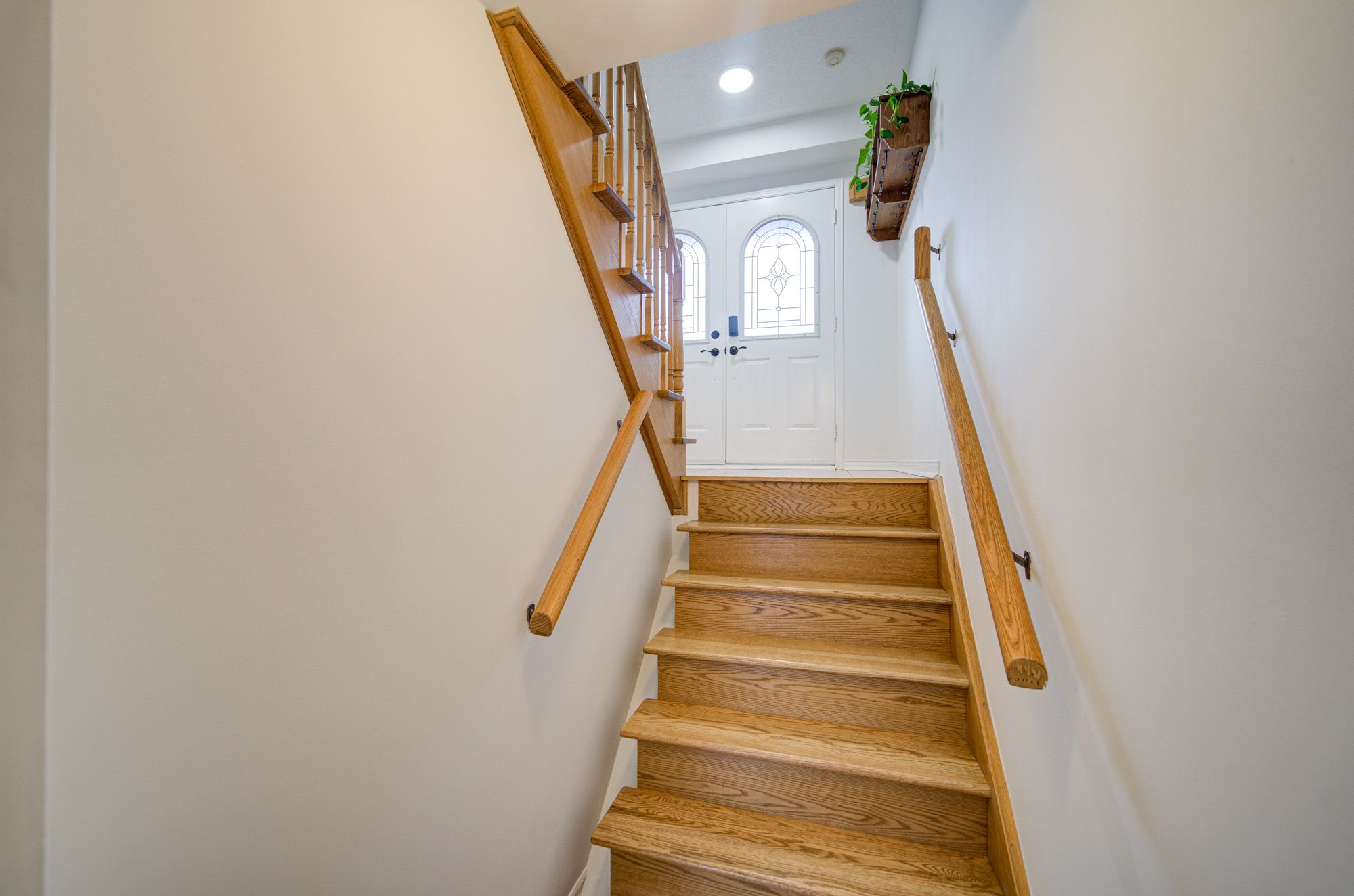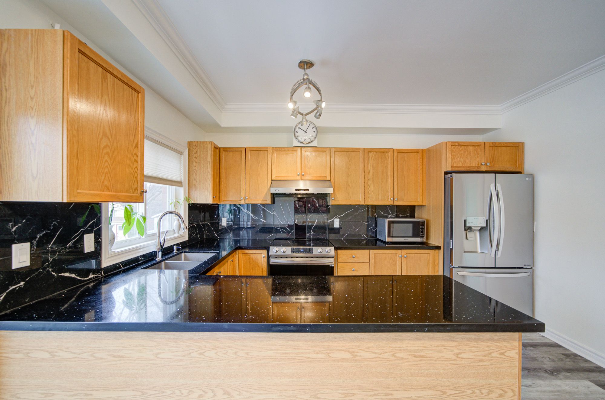 Welcome to this unique freehold townhouse with a double garage, featuring a spacious and functional layout with 4 bedrooms and 5 bathrooms-ideal for families or multi-generational living. Offering over 1,750 sq. Ft. Of living space (excluding the ground level), this home combines comfort and practicality. Bright and well-lit interior with 9-ft ceilings on the main floor, complemented by hardwood flooring (oak/maple/bamboo) and a custom oak and glass staircase. The sunroom and skylights enhance natural light throughout, creating a warm and inviting atmosphere. Well maintained with key upgrades, including a newly replaced furnace (2024, gas heating) and roof shingles (2024), providing added peace of mind. A great opportunity to own a move-in ready home with excellent space and thoughtful updates.