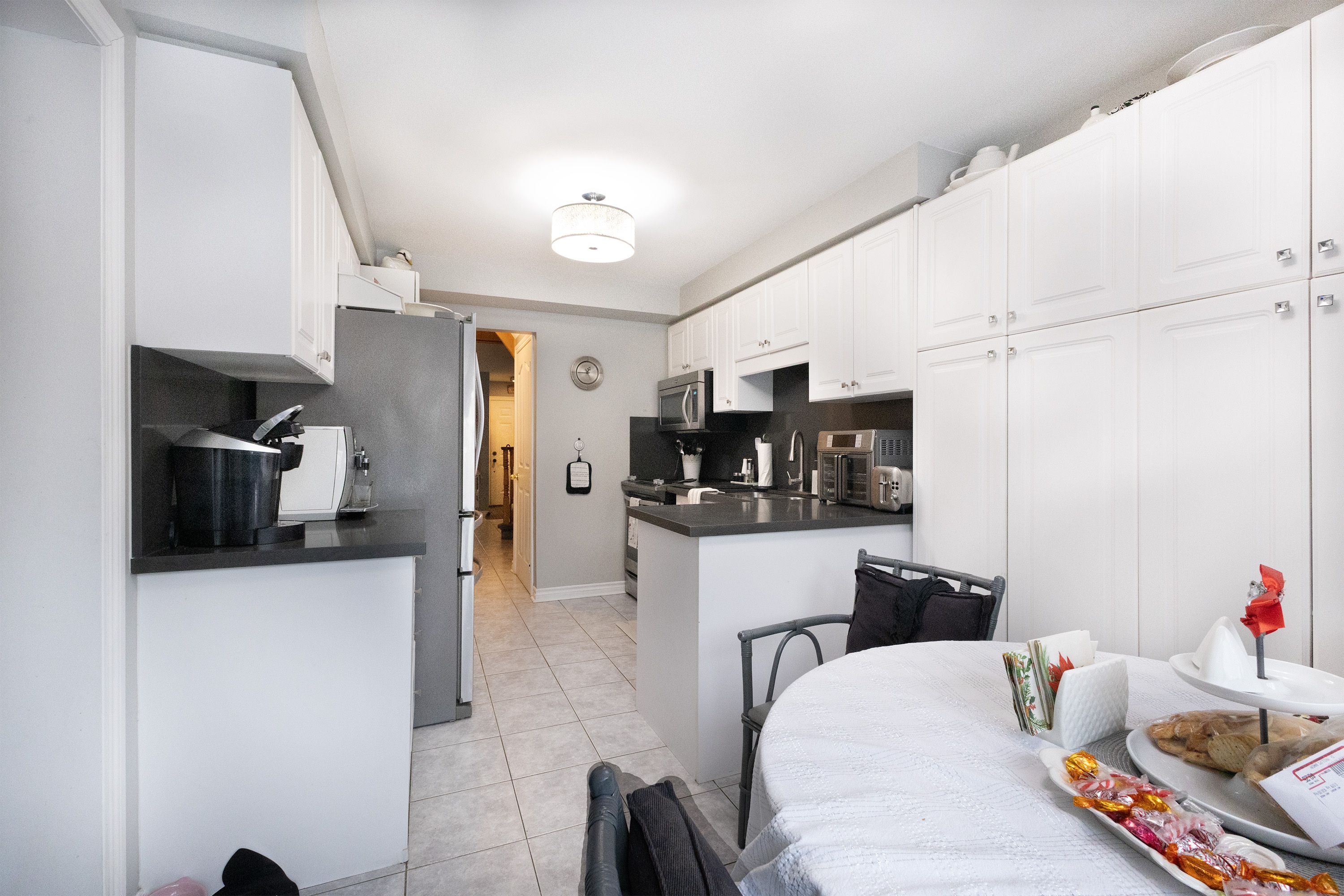 • Bright kitchen with quartz countertops and ample cabinet space.