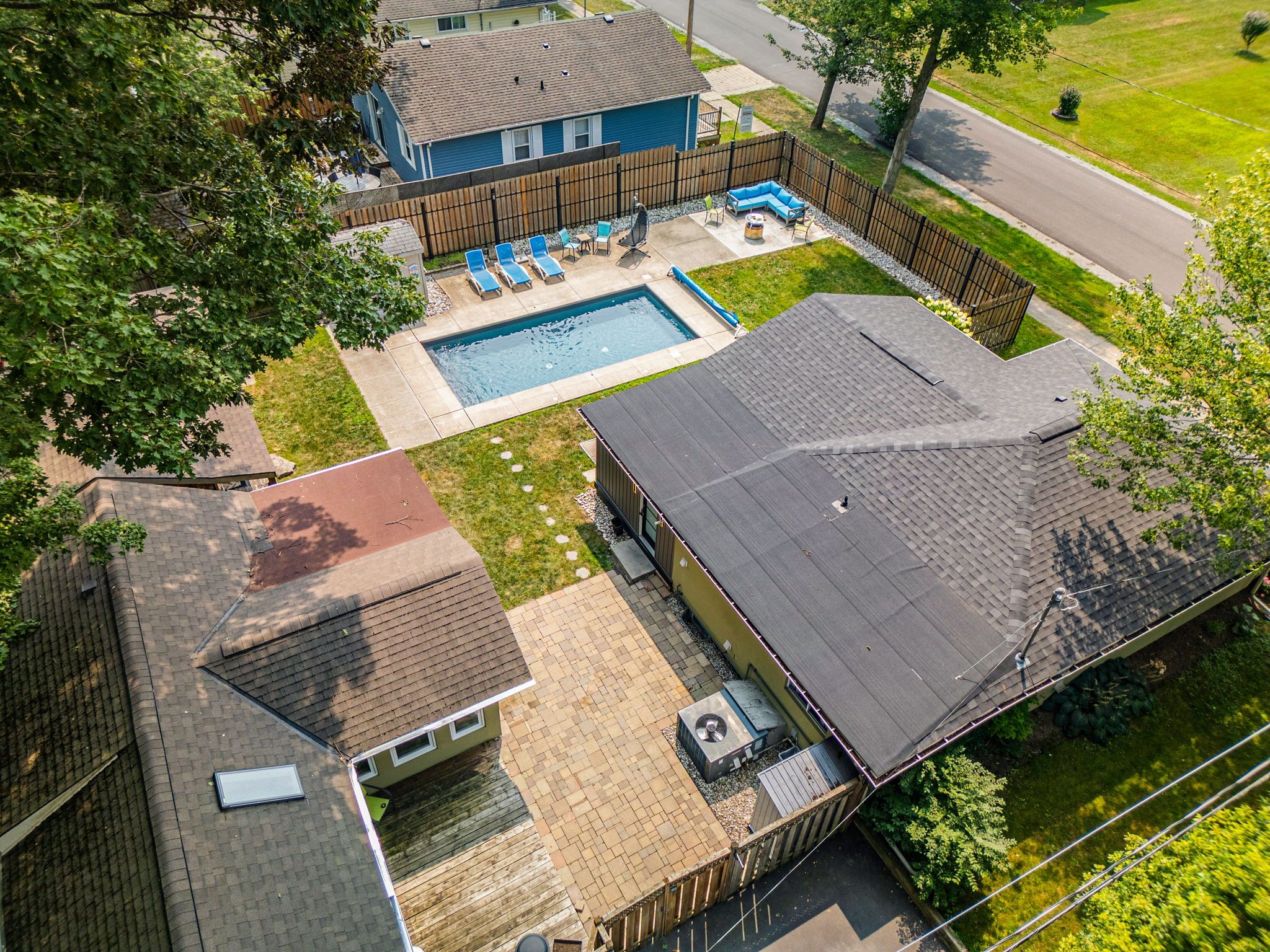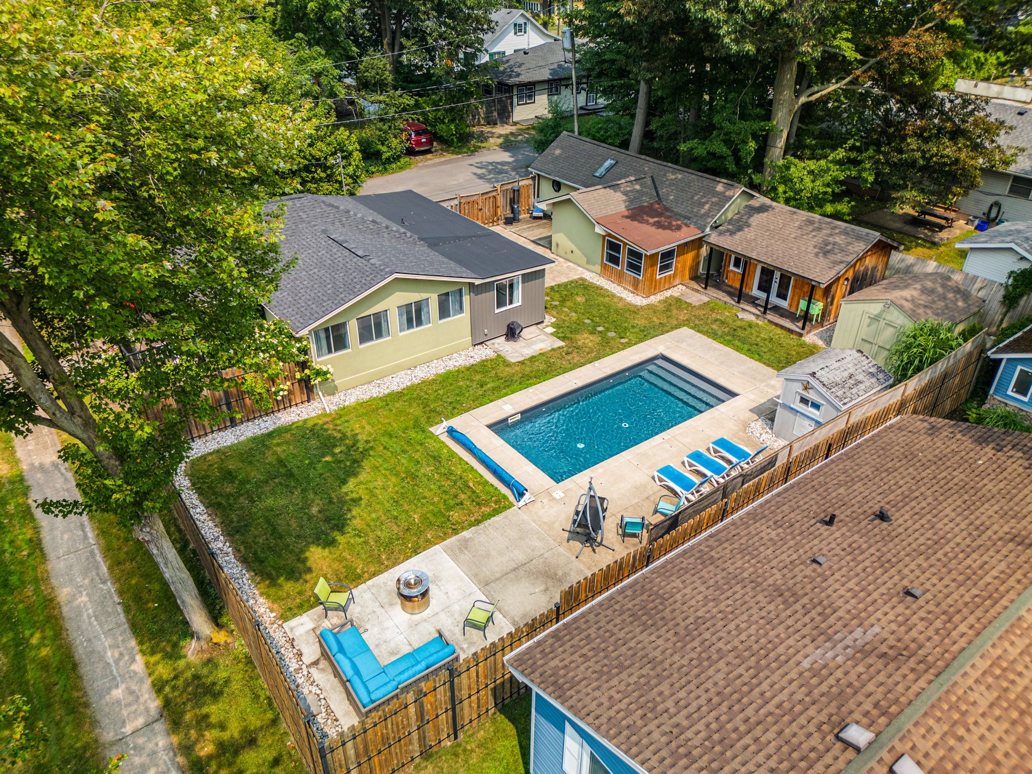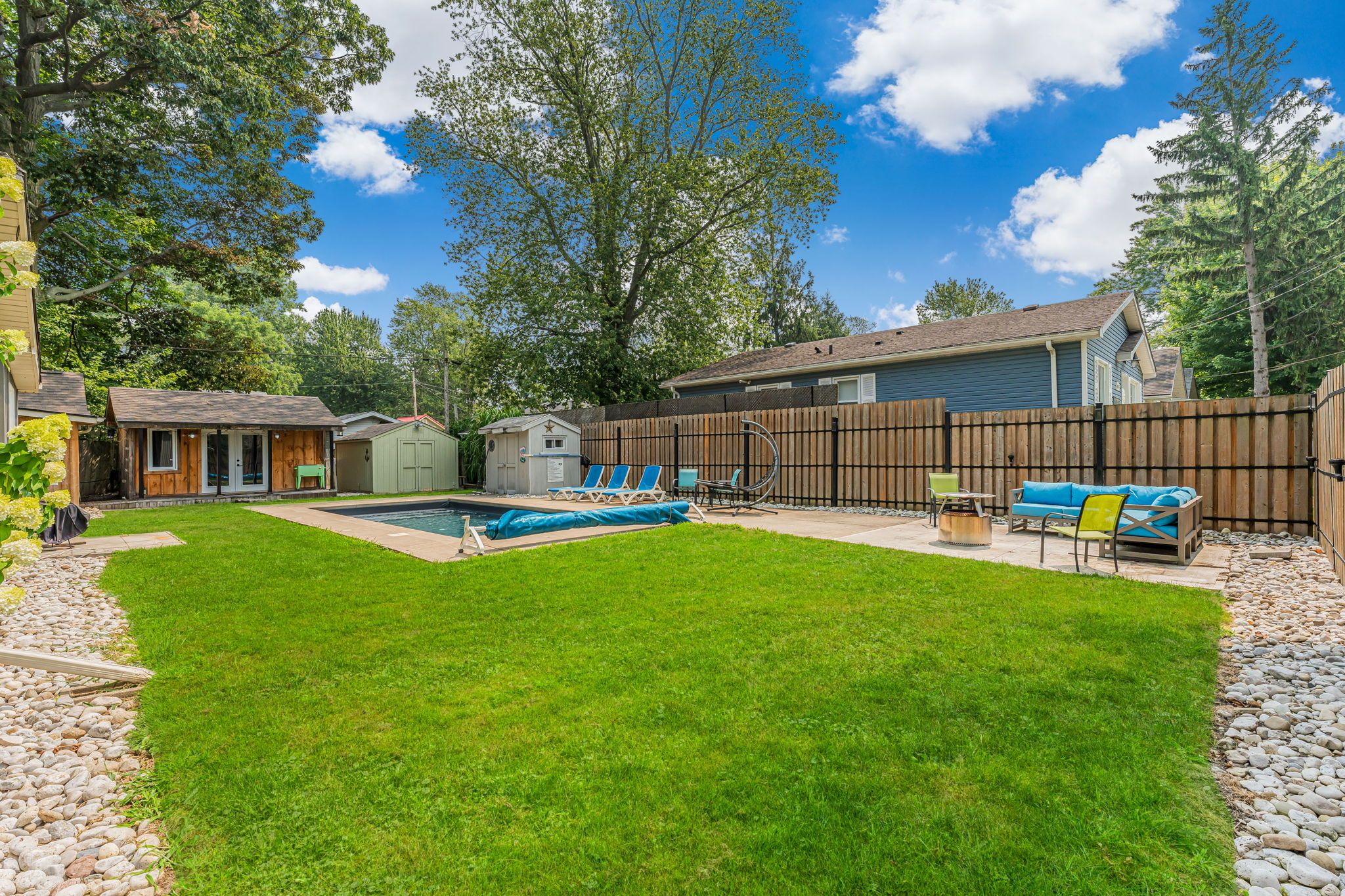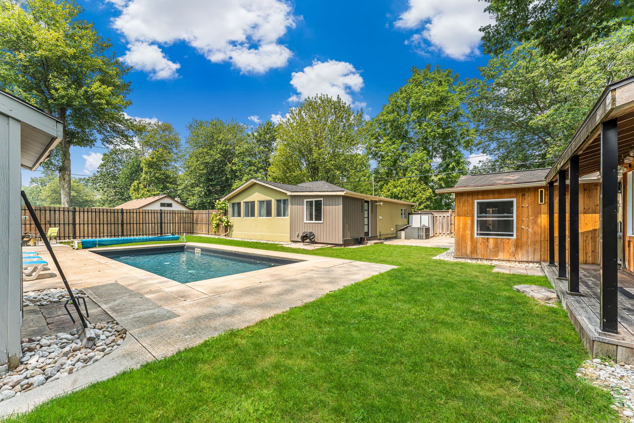 Located on one of the most sought-after streets in crystal beach, this exceptional double lot (80x90 ft) property offers an incredibly rare opportunity-two fully separate residences, plus everything you need to live the beach life in comfort and style. The main home is just under 1,200 sq ft, featuring 4 bedrooms, 2 bathrooms, and a charming front deck perfect for relaxing after a day at the lake. The second residence is a beautifully renovated 1-bedroom, 1-bath home with a spacious pantry/laundry area, offering nearly 800 sq ft of stylish, functional living space. Outside, enjoy a 12x26 ft inground sports pool, a 16x12 beach bunkie for guests or extra storage, and a 12x10 ft shed - all nestled on this spacious, private lot. Whether you're looking to: live in one home and rent out the other, create the perfect in-law setup for a senior, run a short-term rental (airbnb), or give older teens their own space close to home... Many updates since 2021: both porches enclosed/insulated, adding sqft on both homes, flooring throughout, kitchen, bathrooms in main house, etc. This property is brimming with flexibility, potential, and coastal charm. A truly unique find in crystal beach and all within a 3 minute walk to the sandy beach, local shops and restaurants. Don't miss your chance to make it yours!