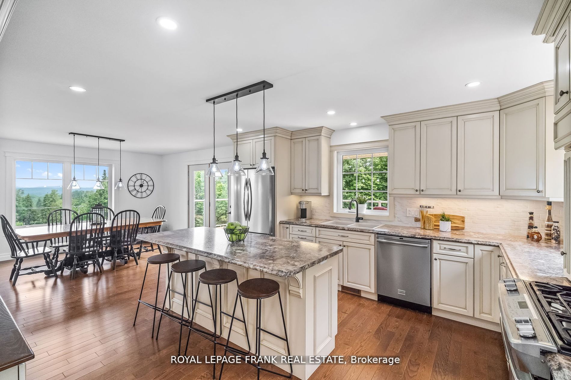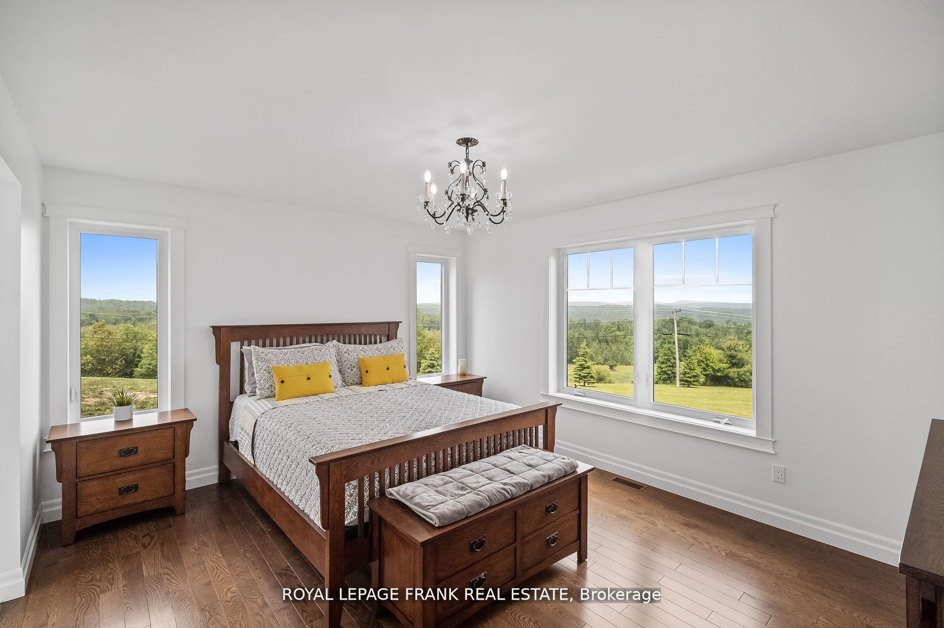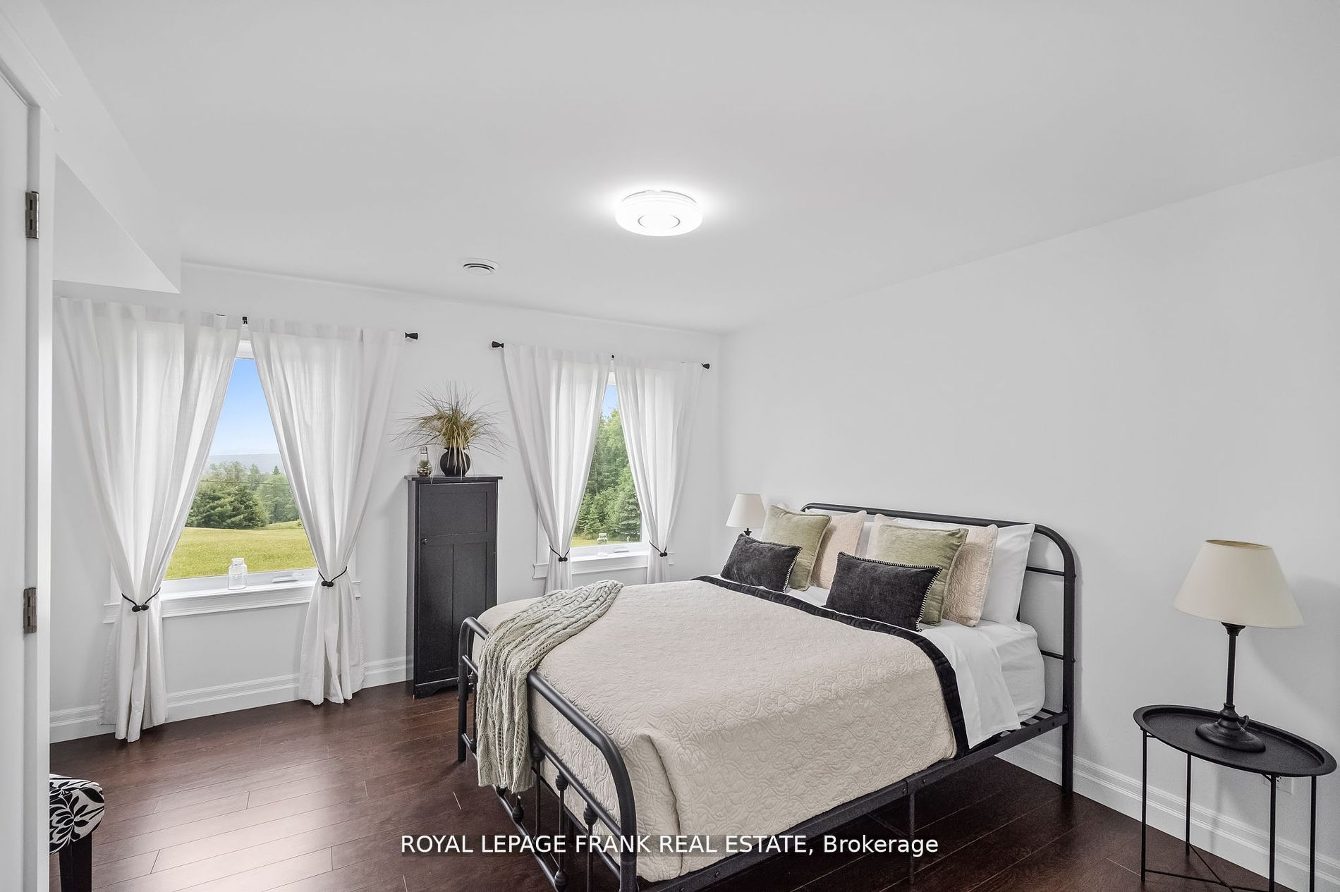 Must be seen in person! Welcome to this gorgeous custom built (2011) home, situated on 35 acres of property with scenic views & large frontage offering added privacy. Approx. 3000 sq ft. Huge wrap around porch accented with glass railings which add a contemporary feel & enhanced aesthetics. This home offers breathtaking views, functional & stylish features all while creating a comfortable living space. Kitchen with custom cabinetry, large center island, stainless steel appliances, spacious pantry, custom backsplash & personalized with a built in wine fridge. This home has 4 generous sized bedrooms, 3 bathrooms & a primary suite with unobstructed views. Hardwood floors throughout offer a seamless style & easy maintenance. Enjoy added bonus of the fully trails off back of property close to beach, lakes, shops, dining & so much more!! New driveway. Indoor/outdoor pot lights, upgraded trim & casings, freshly painted. New siding around entire house. New furnace & a/c, central vac walk-out basement. Tons of storage & parking in the brand new 1500 square foot - 3 car garage.