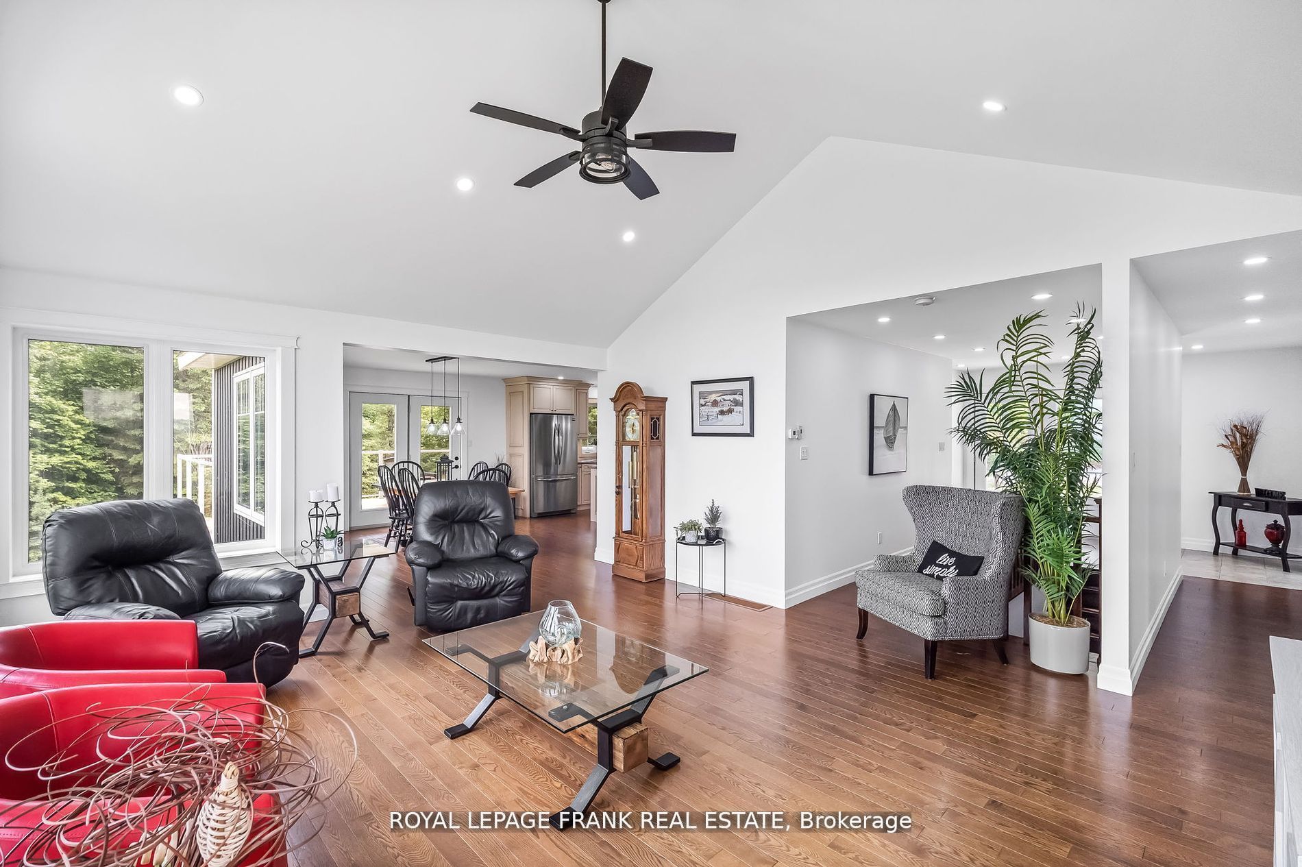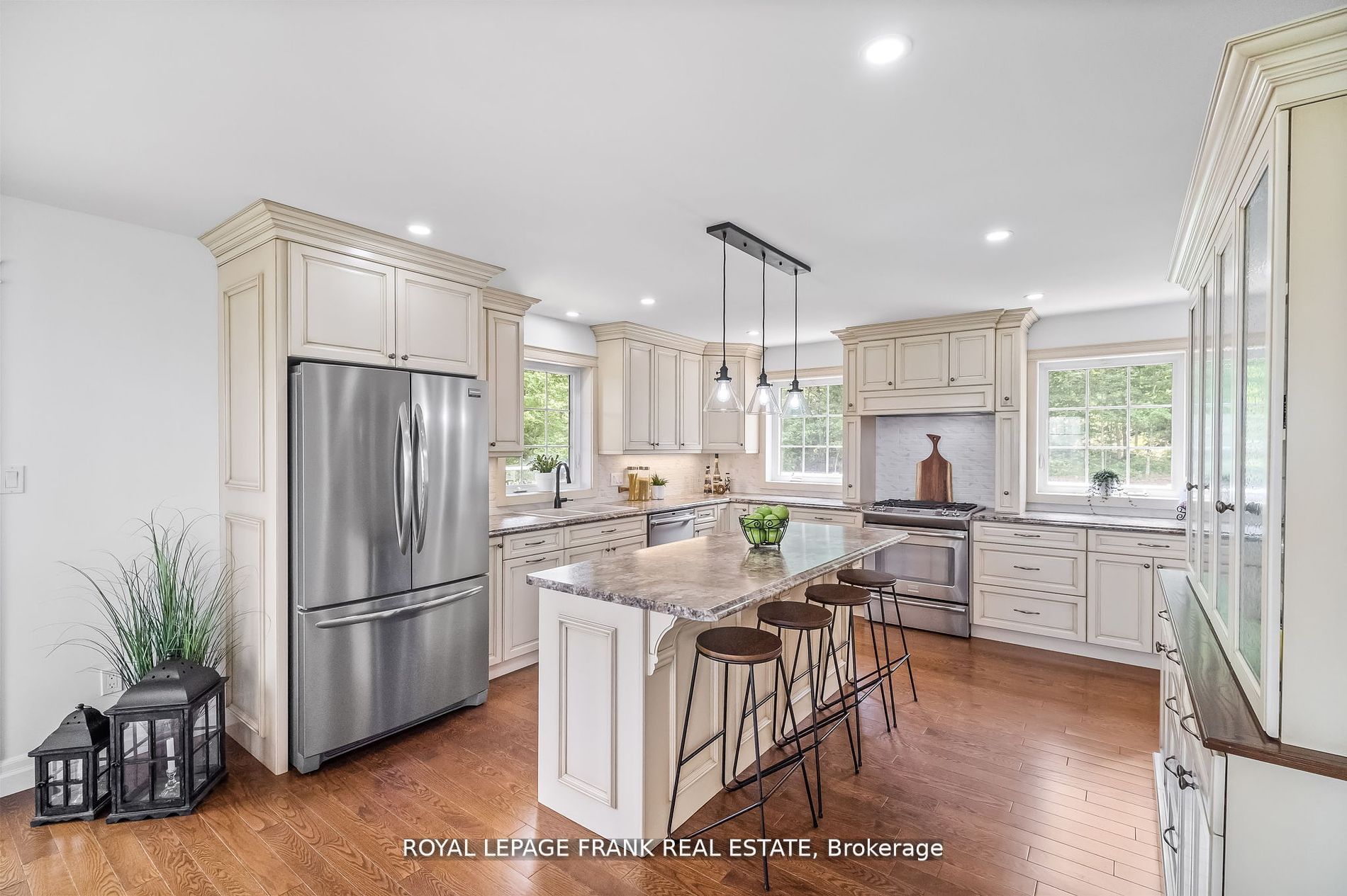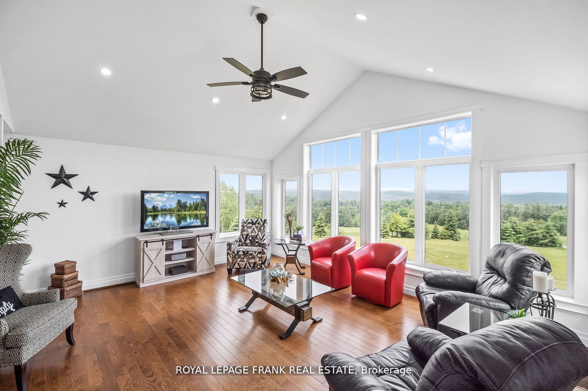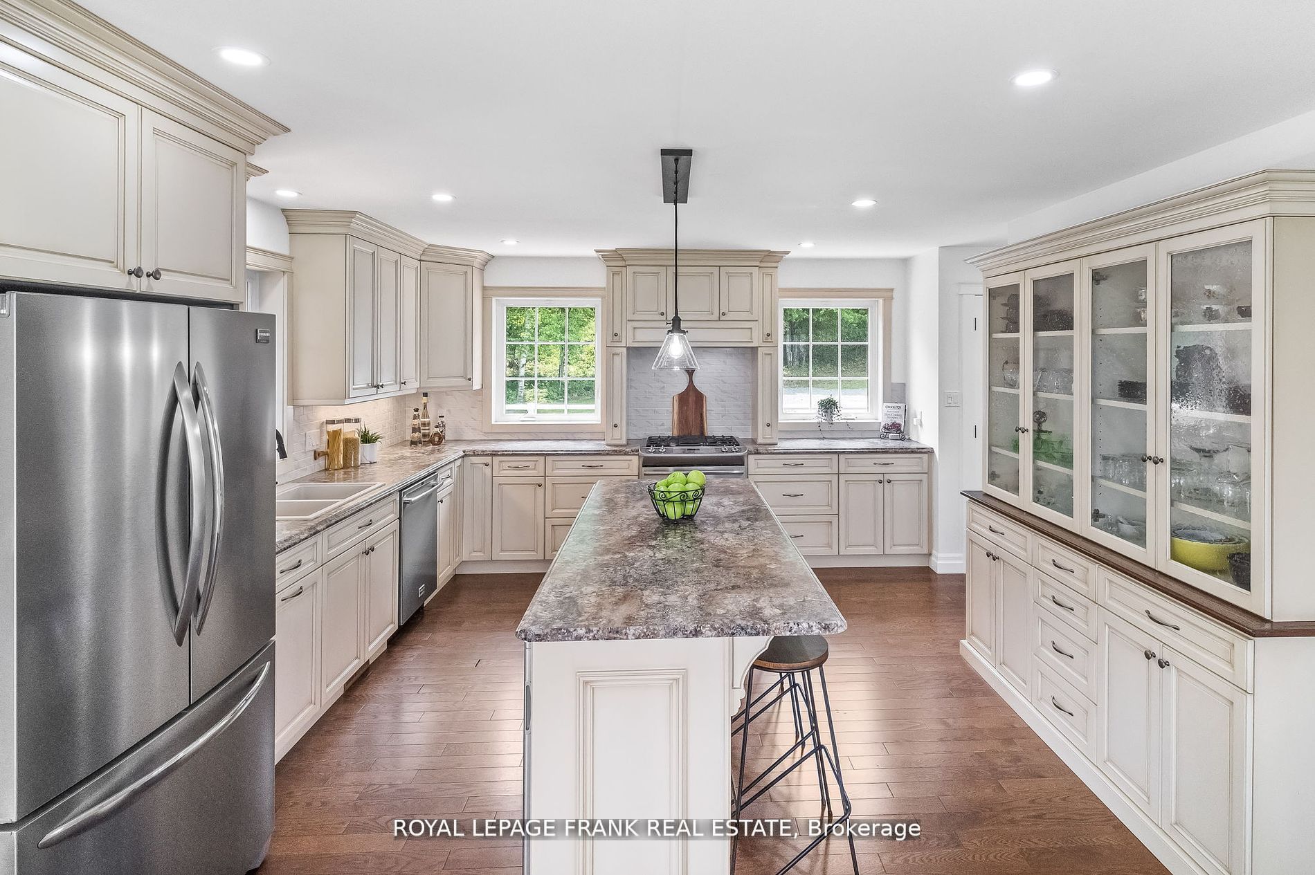 Must be seen in person! Welcome to this gorgeous custom built (2011) home, situated on 35 acres of property with scenic views & large frontage offering added privacy. Approx. 3000 sq ft. Huge wrap around porch accented with glass railings which add a contemporary feel & enhanced aesthetics. This home offers breathtaking views, functional & stylish features all while creating a comfortable living space. Kitchen with custom cabinetry, large center island, stainless steel appliances, spacious pantry, custom backsplash & personalized with a built in wine fridge. This home has 4 generous sized bedrooms, 3 bathrooms & a primary suite with unobstructed views. Hardwood floors throughout offer a seamless style & easy maintenance. Enjoy added bonus of the fully trails off back of property close to beach, lakes, shops, dining & so much more!! New driveway. Indoor/outdoor pot lights, upgraded trim & casings, freshly painted. New siding around entire house. New furnace & a/c, central vac walk-out basement. Tons of storage & parking in the brand new 1500 square foot - 3 car garage.