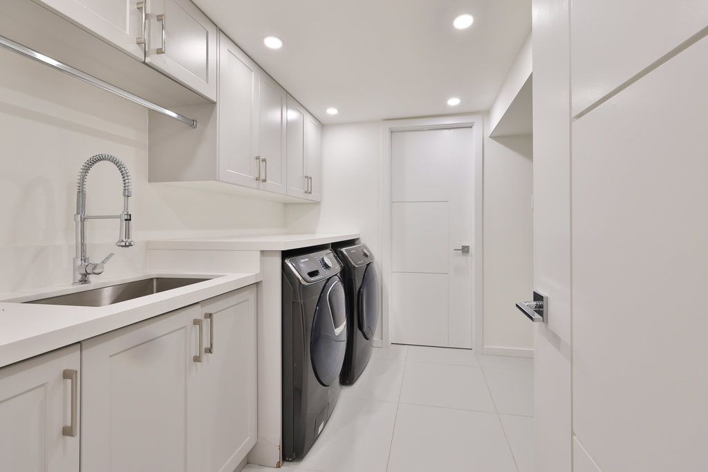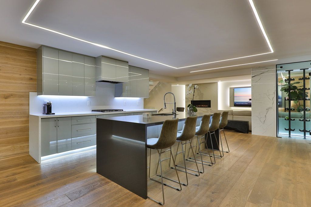 • Chef's kitchen boasts high-end appliances and an impressive waterfall island.