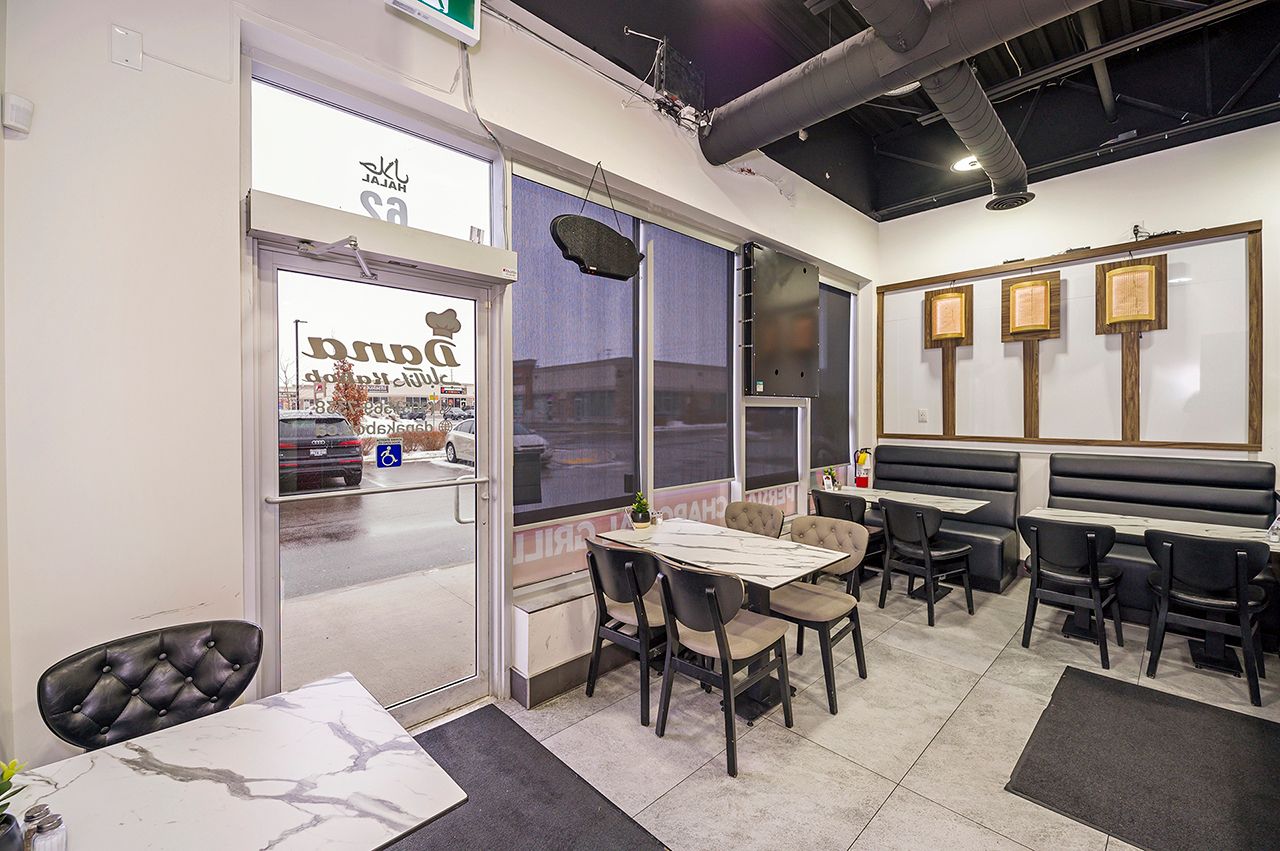 Prestigious ridgeway plaza - exceptional turnkey investment opportunityan outstanding opportunity to acquire a fully operational, professionally built persian restaurant in one of mississauga's most vibrant and high-traffic commercial destinations. Strategically located in the highly sought-after ridgeway plaza, this is the only persian cuisine establishment within the plaza, offering a distinct competitive advantage and strong niche market positioning. The business is exceptionally well-maintained with premium, like-new, high-end equipment throughout. The fully functional commercial kitchen is designed for efficiency and high-volume production, featuring a substantial 14-foot commercial exhaust hood, walk-in freezer, and an impressive 7-foot charcoal grill, along with a comprehensive array of additional top-tier equipment - making this a true turnkey operation. The space also boasts a beautifully designed dining area with elegant finishes and comfortable seating, creating a welcoming atmosphere for guests and supporting strong dine-in, takeout, and delivery revenue streams. Surrounded by dense residential communities, major amenities, and public transit, the location benefits from constant foot traffic and sustained customer flow throughout the day. Favorable lease terms further enhance the investment appeal, supporting healthy margins and long-term profitability. A rare opportunity for investors or experienced restaurateurs to secure a premium asset in oneof mississauga's most dynamic and in-demand plazas. Possible to sell with property$$$