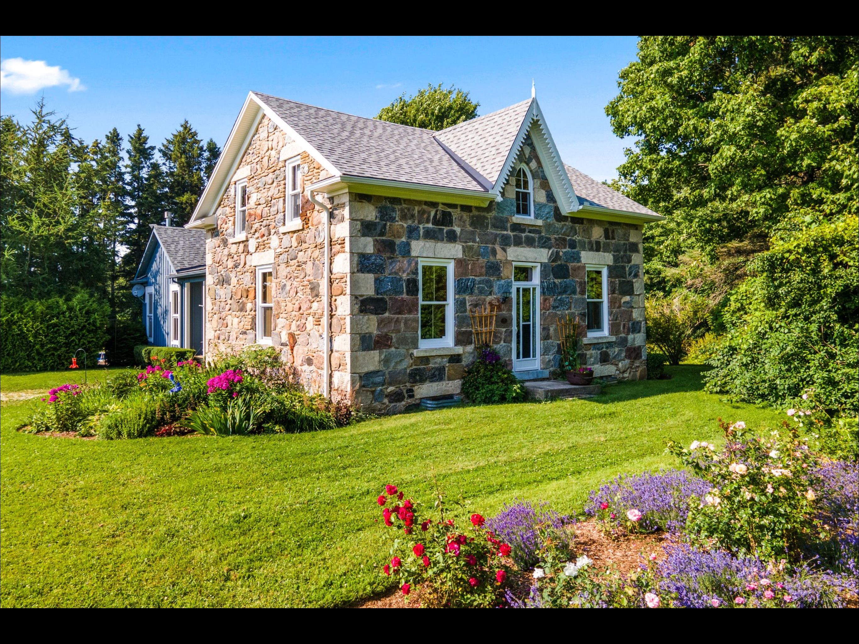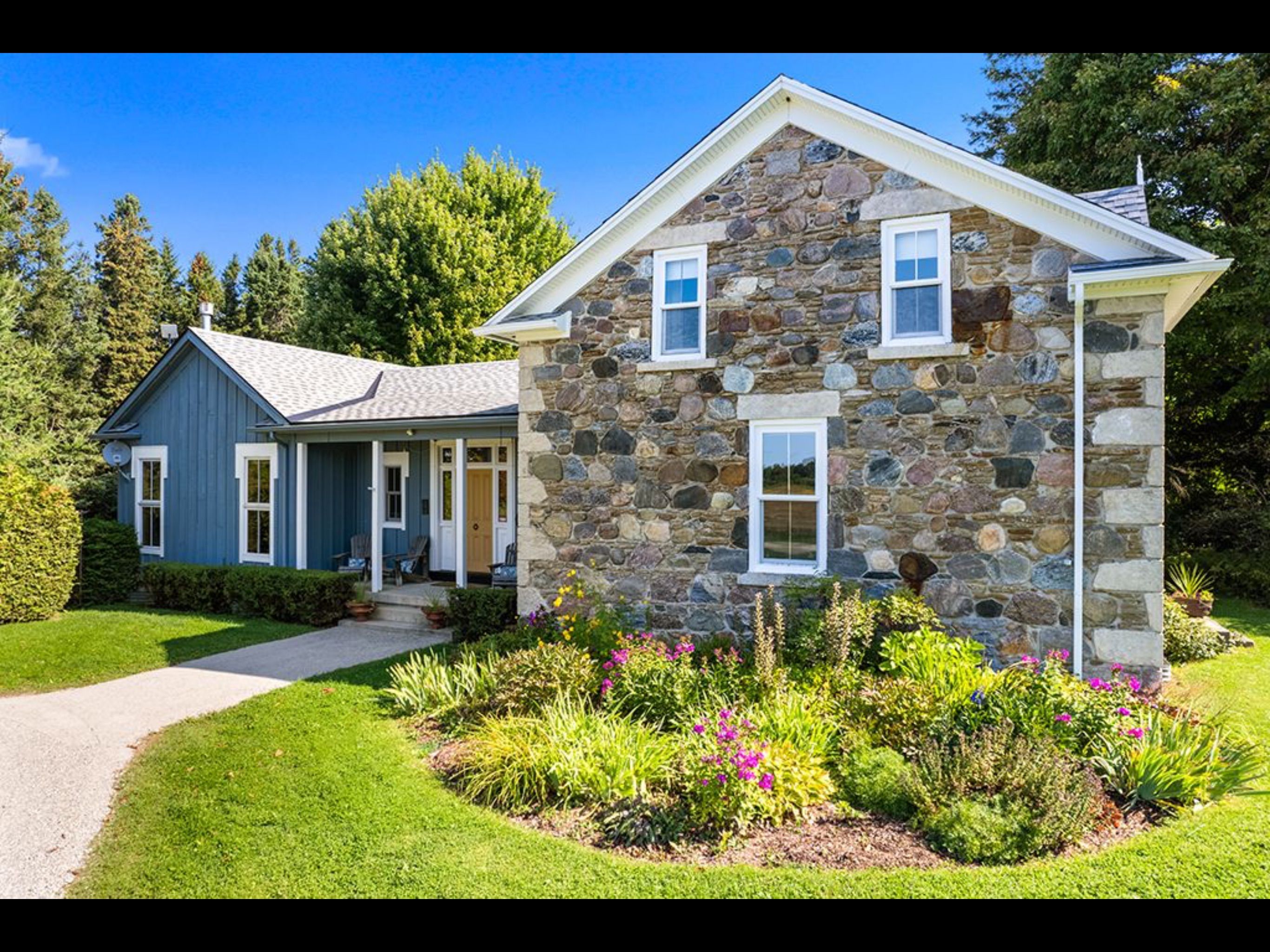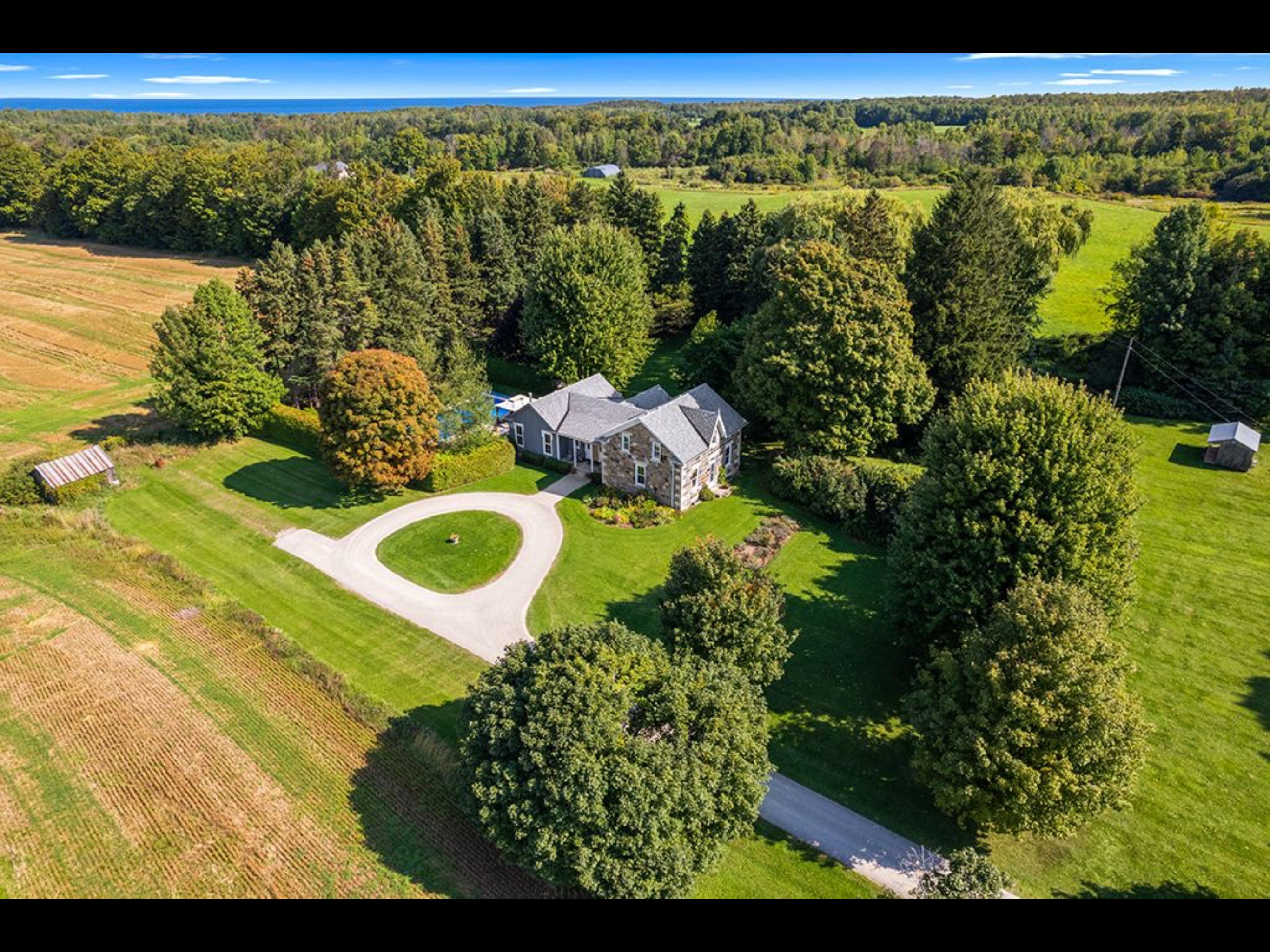 Step into timeless elegance and refined country living on this extraordinary 10-acre estate. More than a hobby farm, this property has been thoughtfully curated into a serene, park-like retreat reminiscent of a classic english country house. At the heart of the property stands a remarkable 1876 stone residence, originally built by thomas and isabella fraser and proudly referenced in the sydenham centennial history. This architectural gem showcases solid multi-coloured granite construction with finely tooled limestone coigning-an enduring testament to craftsmanship. The home has been meticulously maintained and restored, including expert repointing by a skilled stone mason, while preserving its original woodwork, deep-set windows, and historic charm throughout. A thoughtfully designed board-and-batten addition (2006), created by noted architectural designer george yost blends seamlessly with the original structure-enhancing functionality while honouring the home's heritage. Carefully integrated reclaimed elements, including a circa-1876 front door from tavistock and original interior details, add warmth and authenticity. The grounds are truly exceptional-offering a tranquil, landscaped setting framed by mature and rare trees including a magnificent 220-year-old maple, ginkgo, magnolia, chestnut, linden, and larch. Ideal for nature lovers, hobbyists or equestrian enthusiasts. Enjoy the best of georgian bay living with nearby access to the natural shoreline. A stony beach at queen's bush provides a quiet launch for kayaking, while the sandy shores and family-friendly amenities of hibou conservation area are just a short 12-minute drive. This is a rare opportunity to own a piece of ontario's architectural and cultural history-set within a private, storybook landscape that offers both tranquility and accessibility. A truly one-of-a-kind country estate where history, nature and refined living come together. Meaford is a 2 hr drive from toronto with access to 4 season fun.
