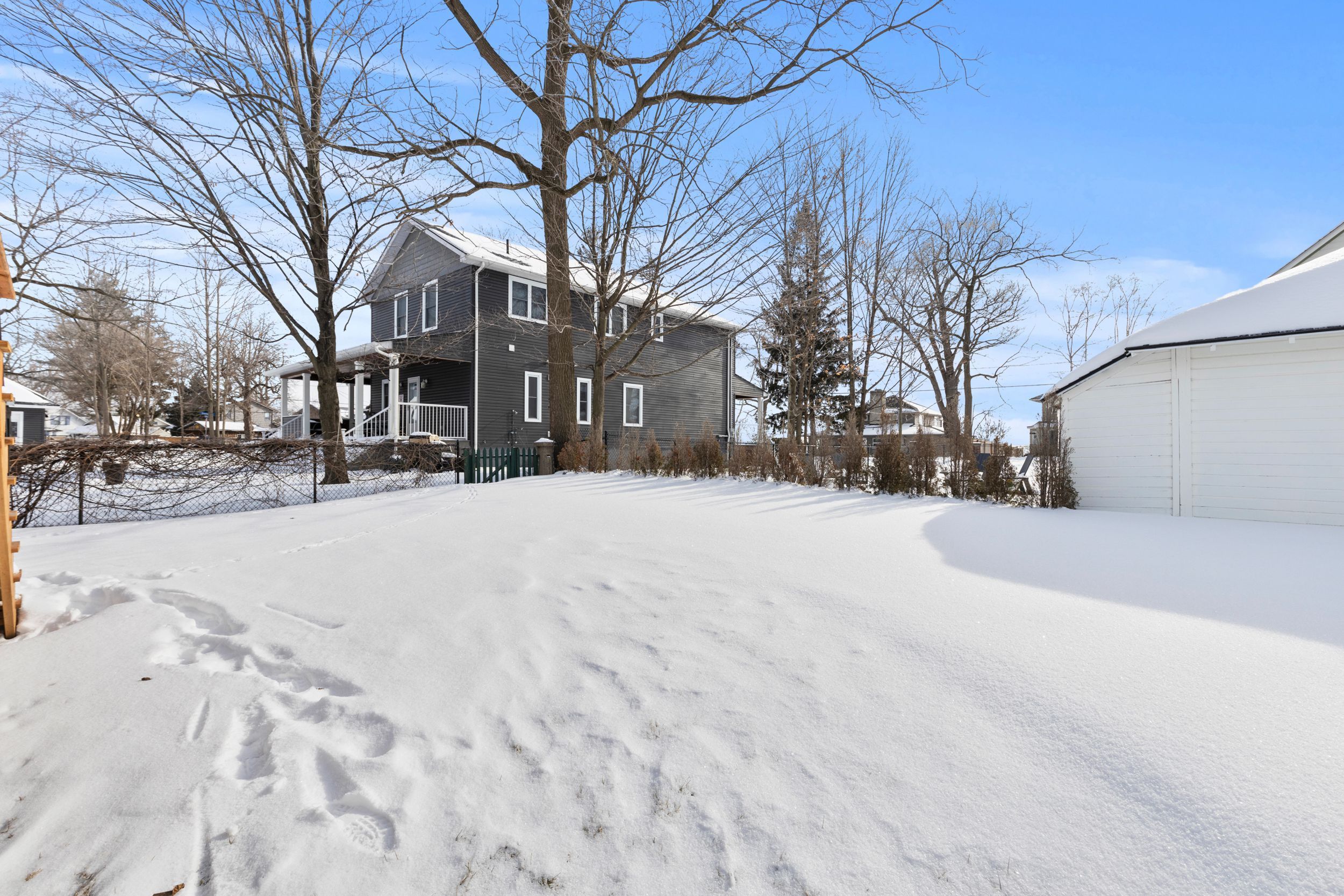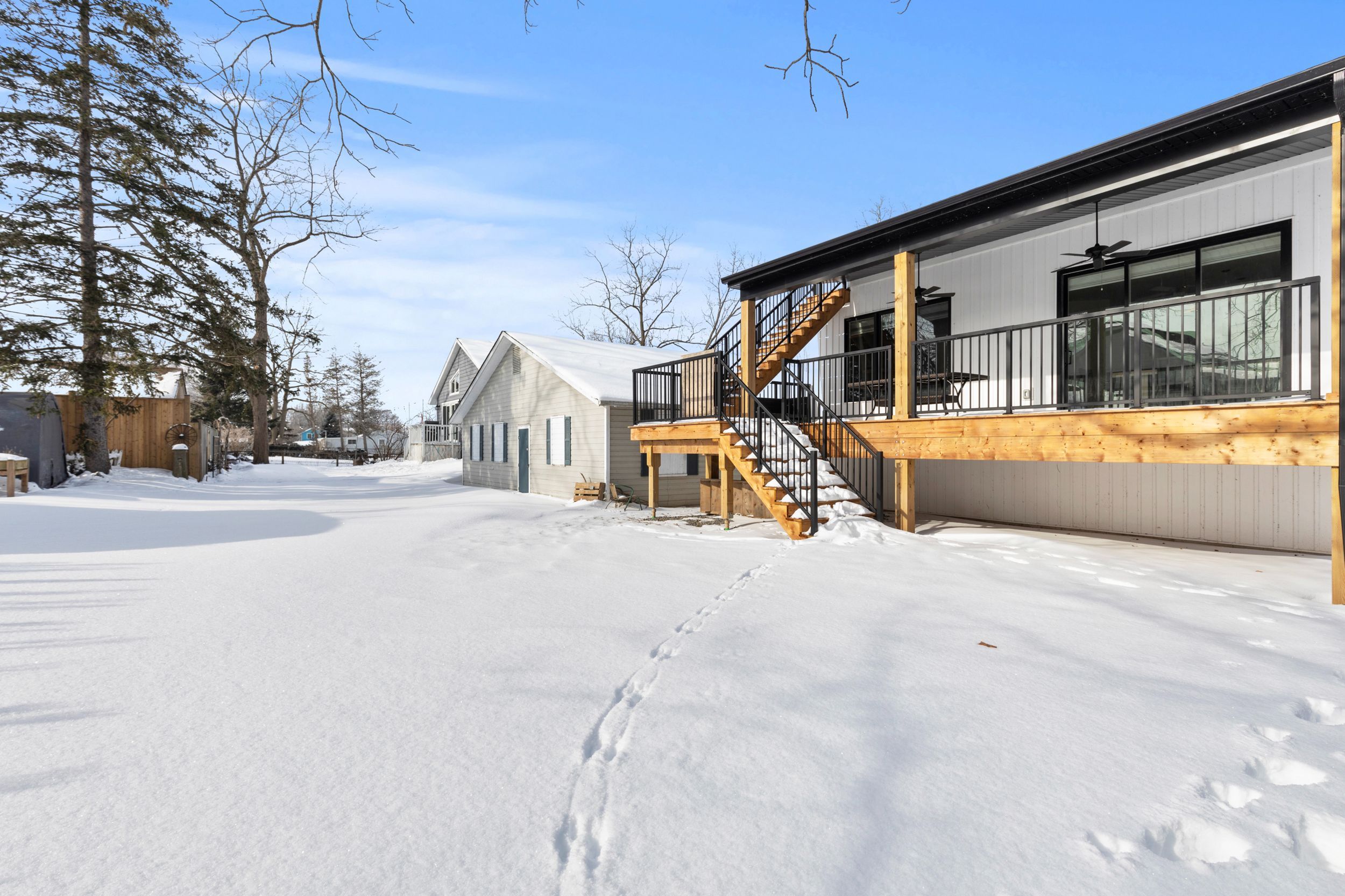 Experience effortless lakeside living in this beautifully designed bungaloft, where modern style meets relaxed comfort just steps from the lake erie waterfront. The classic black-and-white exterior with board-and-batten detailing makes a striking first impression, enhanced by an attached garage and inviting covered front porch. Inside, white oak hardwood floors and abundant natural light create a warm, airy feel throughout the open-concept living space. The designer kitchen is a true showpiece, featuring floor-to-ceiling cabinetry, stone countertops, and a statement wine fridge. Expansive patio doors lead directly to the back deck, with stairs connecting to the upper balcony-ideal for seamless indoor-outdoor entertaining. Unwind in the inviting living room with a cozy gas fireplace, or take the gathering outside. The thoughtfully designed layout offers four bedrooms and 2. 5 bathrooms, including a serene primary suite with a sleek ensuite. The loft level is a standout, offering two additional bedrooms, a full bathroom, and access to an expansive terrace-perfect for hosting under the stars, enjoying lake breezes, or taking in peaceful evening views. With multiple outdoor living spaces, lake views from the rear, and an unfinished basement ready for your vision, this home delivers a refined yet relaxed lifestyle just moments from the water.