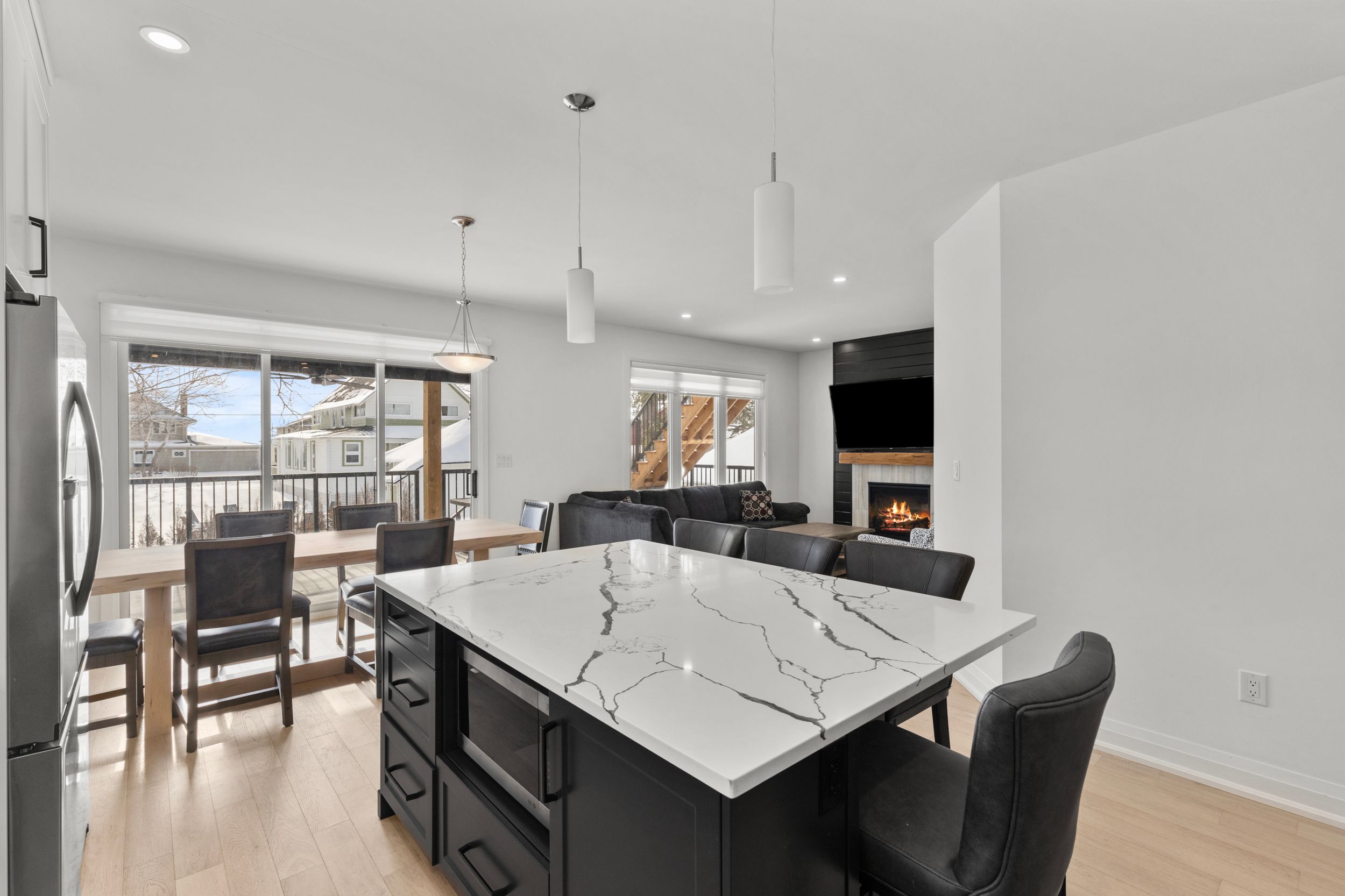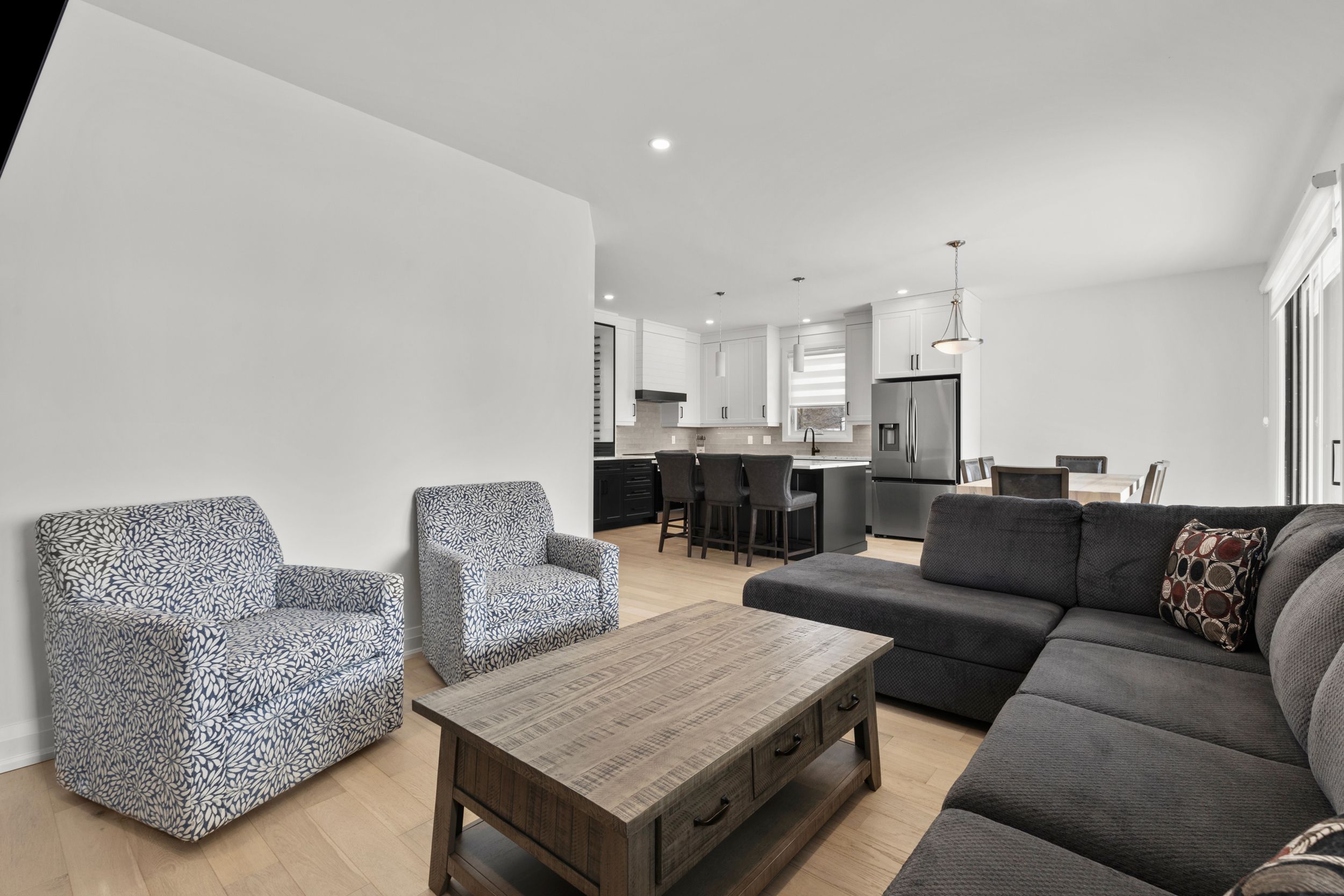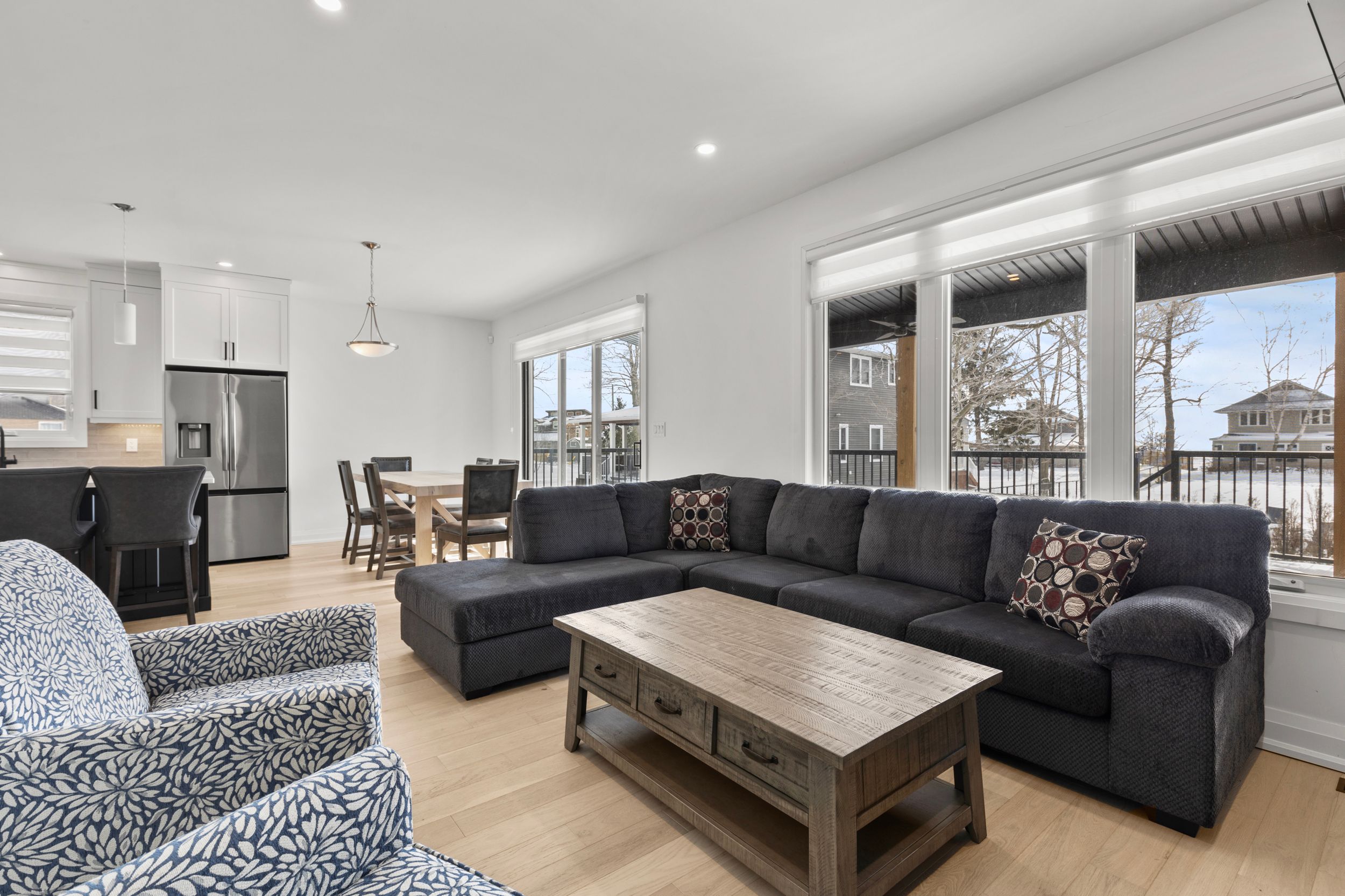 • Open-concept living space with abundant natural light and hardwood floors.