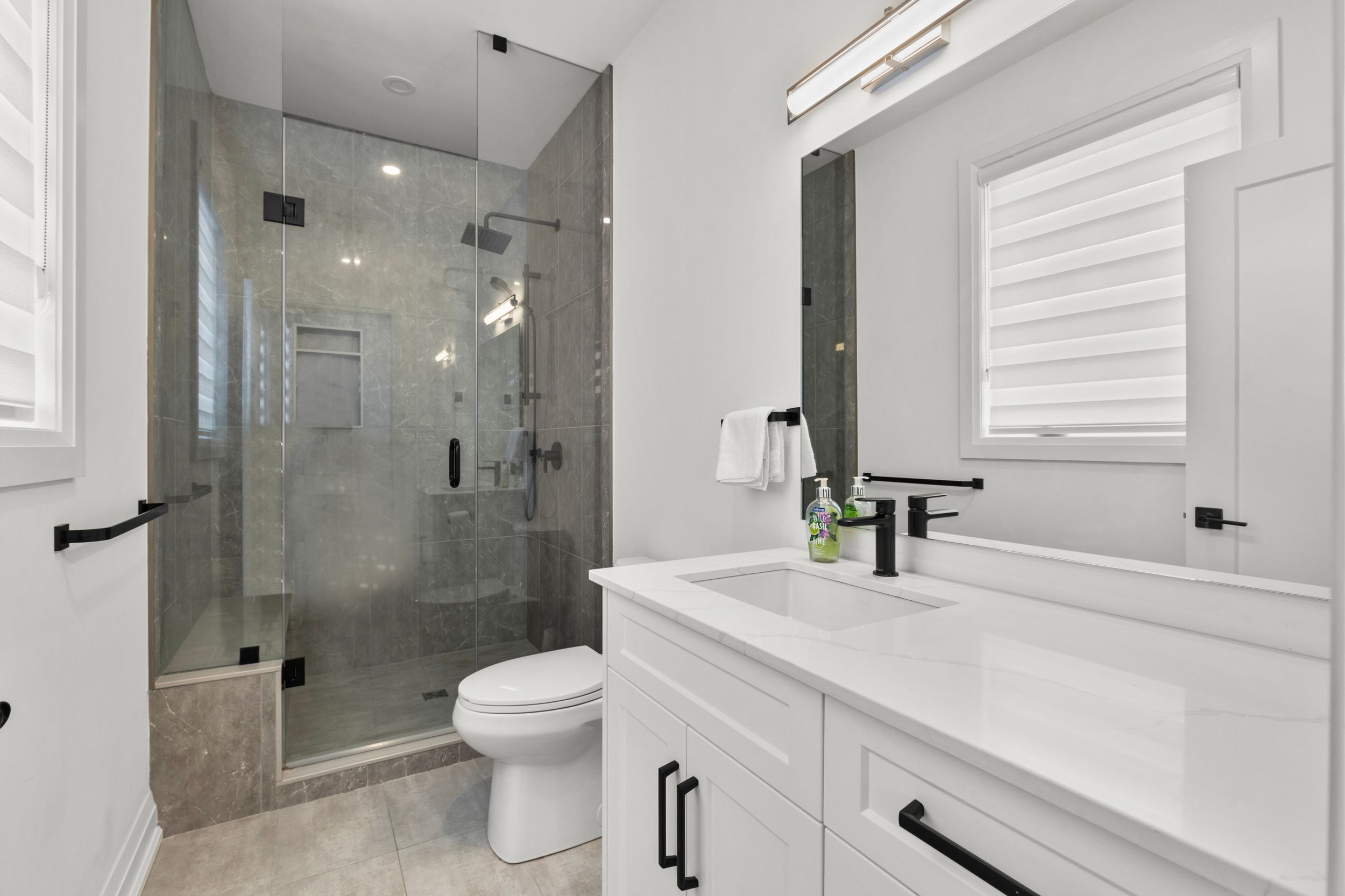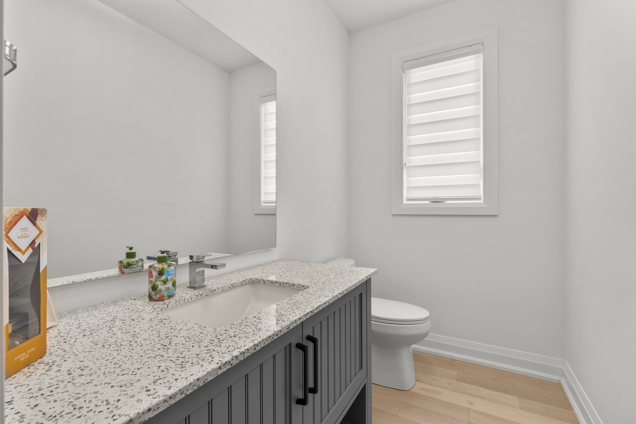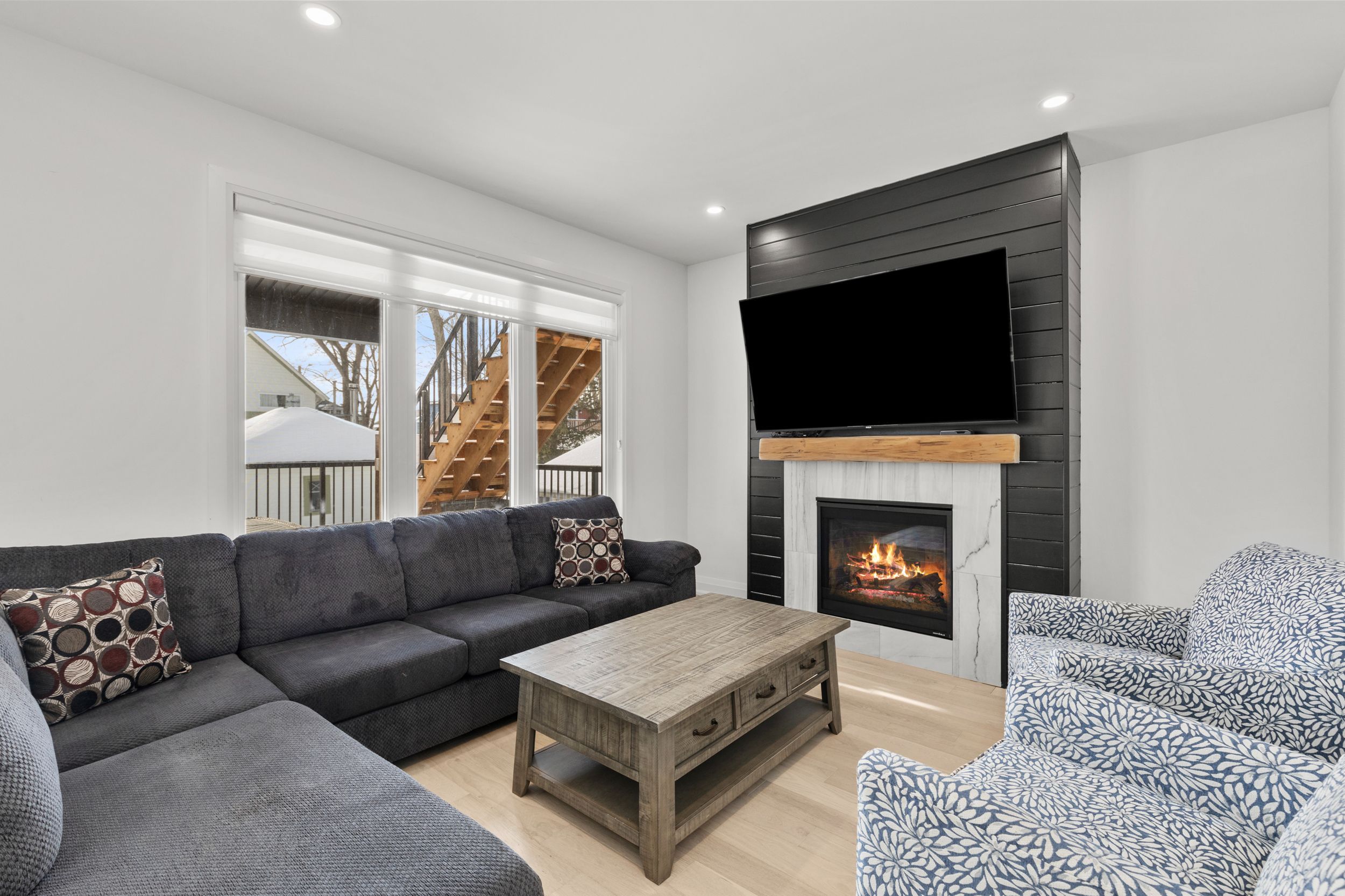 • Open-concept living space with abundant natural light and hardwood floors.