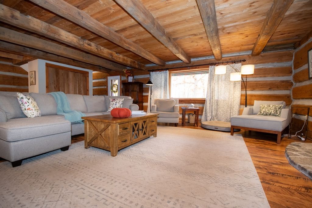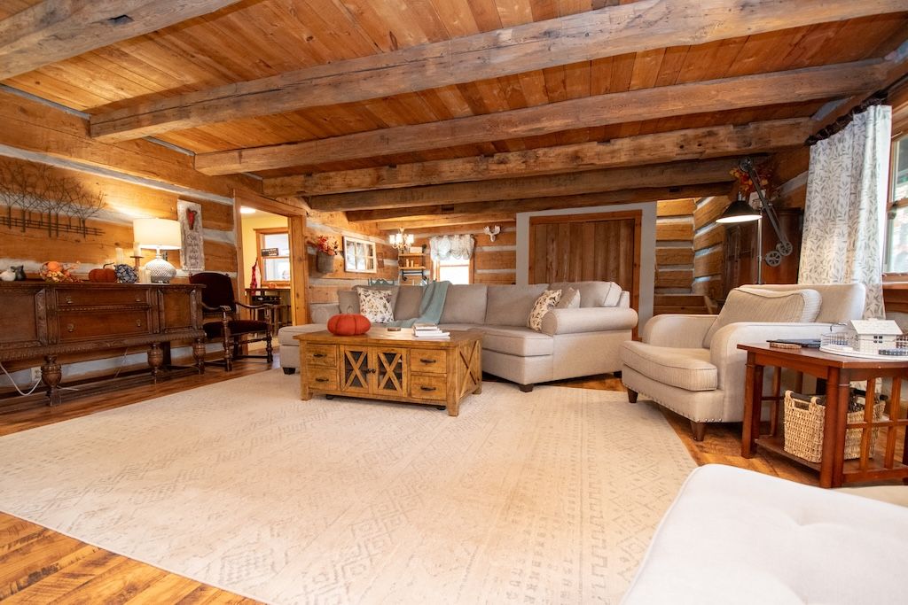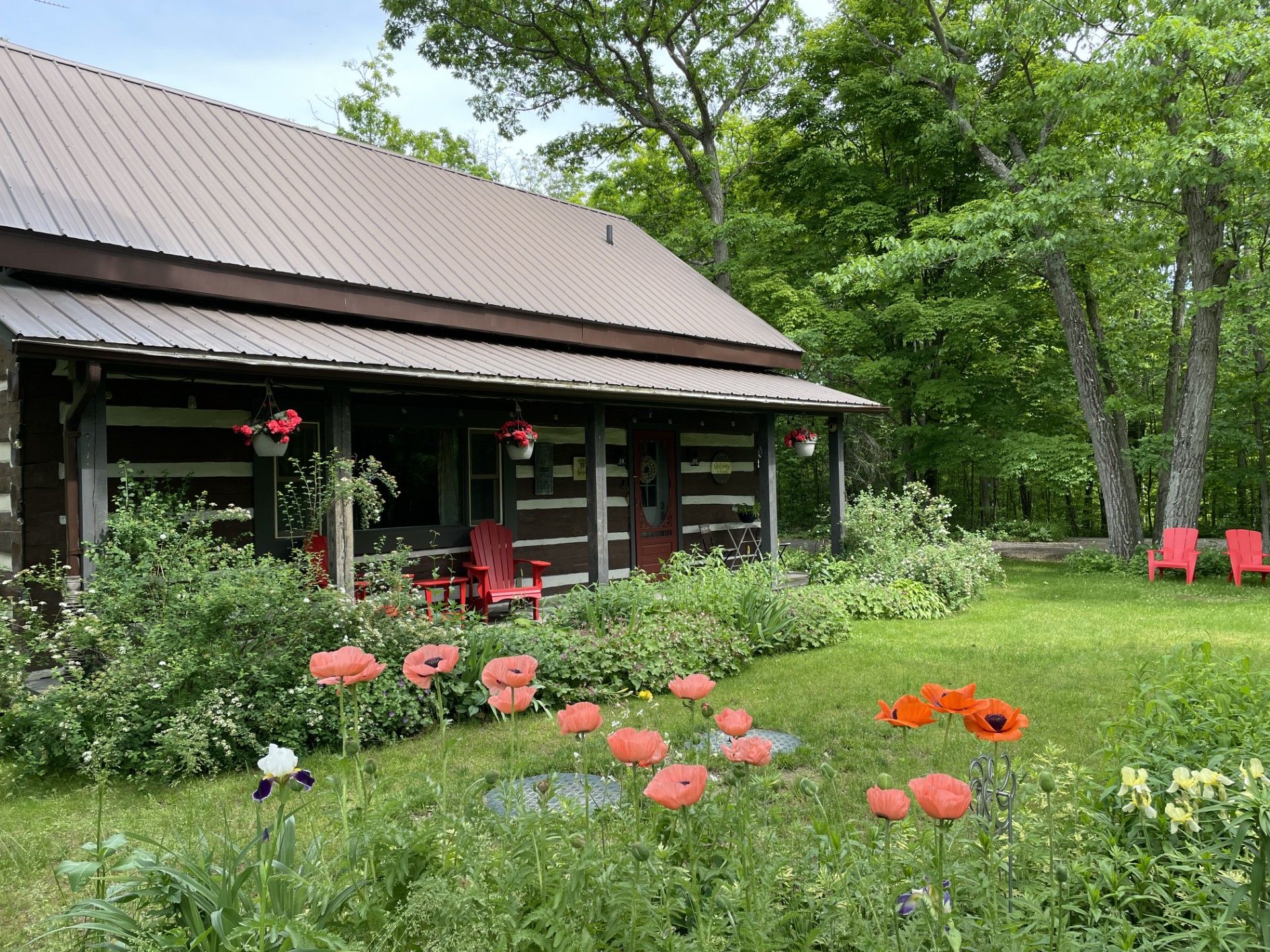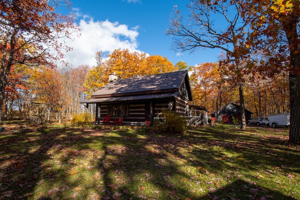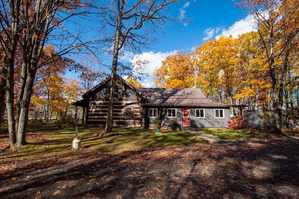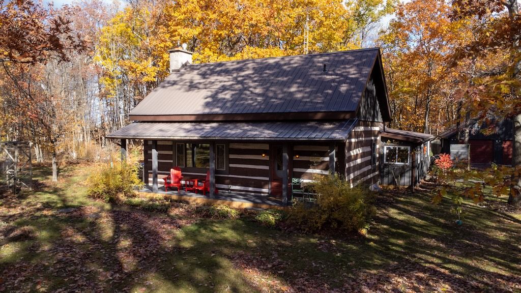 Versatile modern living in a rustic setting. This exceptional log home, locally known as whippoorwill house, combines traditional craftsmanship with modern engineering for superior stability, security & energy efficiency. Situated on a landscaped 0. 98 acre lot with mature oak trees, the property features a poured concrete foundation, full basement, steel roof & expansive living spaces. Additional amenities include a log planter shed, an over-sized double garage with workshop, power panel & parking for ten vehicles. The residence offers many modern comforts: two fireplaces, forced air heating/cooling across three levels & 2 newly renovated bathrooms. The spacious kitchen is equipped with quartz countertops, ample cabinetry & updated appliances. The expansive living & dining area showcases rustic log walls, exposed beams, a large picture window & a gorgeous stone fireplace - ideal for both intimate evenings & large gatherings. The main floor guest room is adjacent to a new 3 piece bath. A large insulated sunroom overlooks the gardens & woods. The upper level master suite includes a walk-in closet, storage loft & adjoining bath. The skylit loft serves as a perfect nursery, home office or studio & can easily be converted to a 13x8 bedroom. The finished lower level features a huge recreation room with its own fireplace, a laundry/crafting room with extensive storage & a furnace/workshop room. It also has the access & egress needed to allow for another bedroom. The property is conveniently located near schools, churches, golf courses, entertainment venues, parks, trails, shopping, banks, a hospital & other essential services.