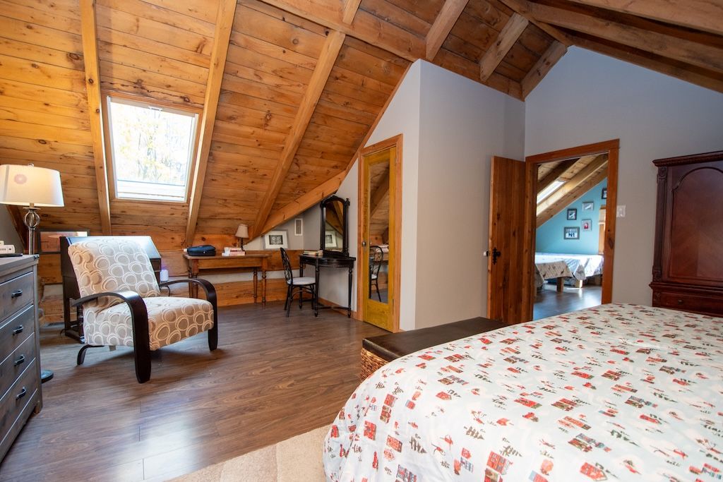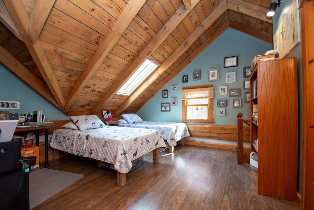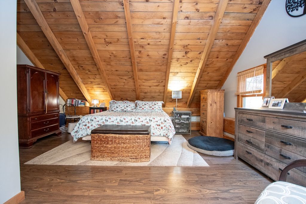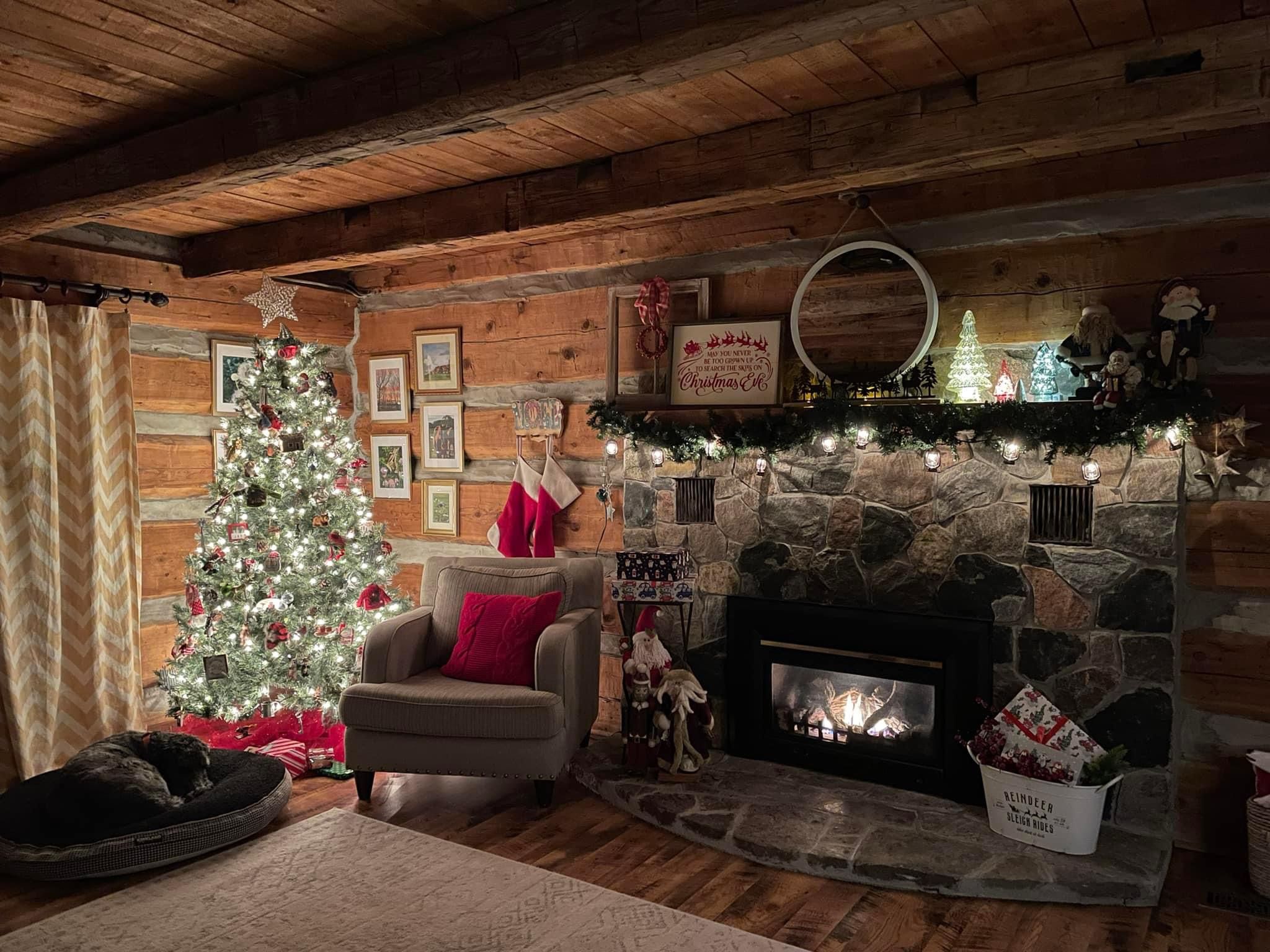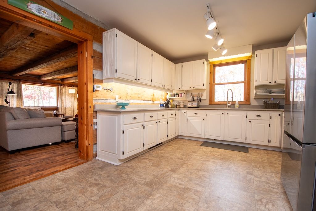 Versatile modern living in a rustic setting. This exceptional log home, locally known as whippoorwill house, combines traditional craftsmanship with modern engineering for superior stability, security & energy efficiency. Situated on a landscaped 0. 98 acre lot with mature oak trees, the property features a poured concrete foundation, full basement, steel roof & expansive living spaces. Additional amenities include a log planter shed, an over-sized double garage with workshop, power panel & parking for ten vehicles. The residence offers many modern comforts: two fireplaces, forced air heating/cooling across three levels & 2 newly renovated bathrooms. The spacious kitchen is equipped with quartz countertops, ample cabinetry & updated appliances. The expansive living & dining area showcases rustic log walls, exposed beams, a large picture window & a gorgeous stone fireplace - ideal for both intimate evenings & large gatherings. The main floor guest room is adjacent to a new 3 piece bath. A large insulated sunroom overlooks the gardens & woods. The upper level master suite includes a walk-in closet, storage loft & adjoining bath. The skylit loft serves as a perfect nursery, home office or studio & can easily be converted to a 13x8 bedroom. The finished lower level features a huge recreation room with its own fireplace, a laundry/crafting room with extensive storage & a furnace/workshop room. It also has the access & egress needed to allow for another bedroom. The property is conveniently located near schools, churches, golf courses, entertainment venues, parks, trails, shopping, banks, a hospital & other essential services.