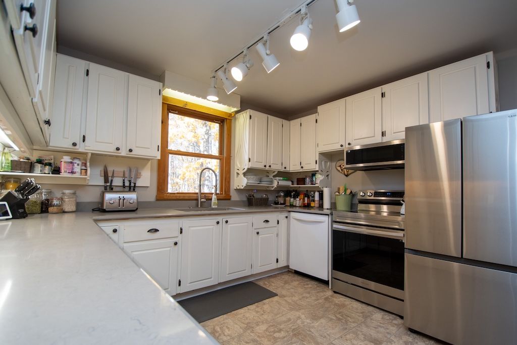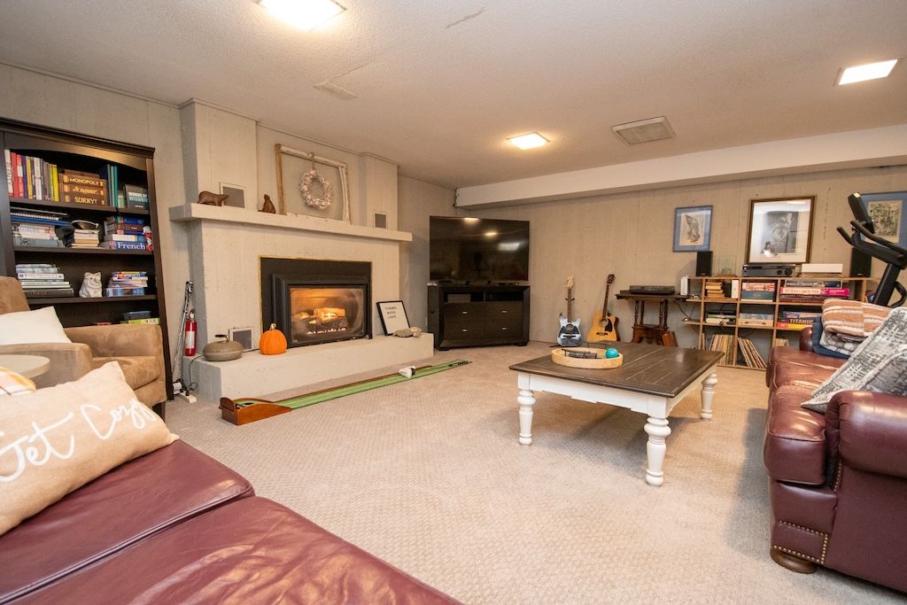• Large kitchen and living areas with a stone fireplace, perfect for entertaining.