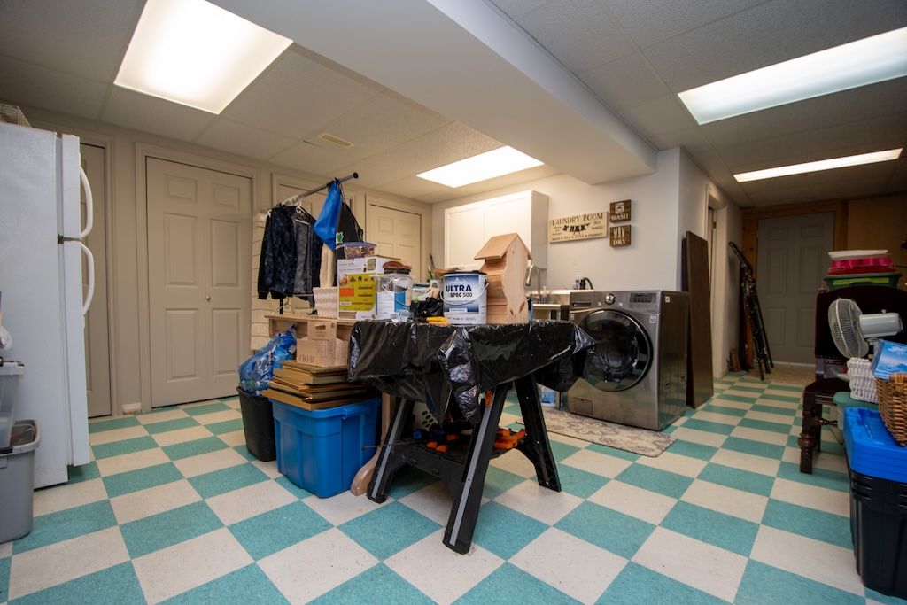 • Oversized double garage and workshop with electrical panel for business opportunities.