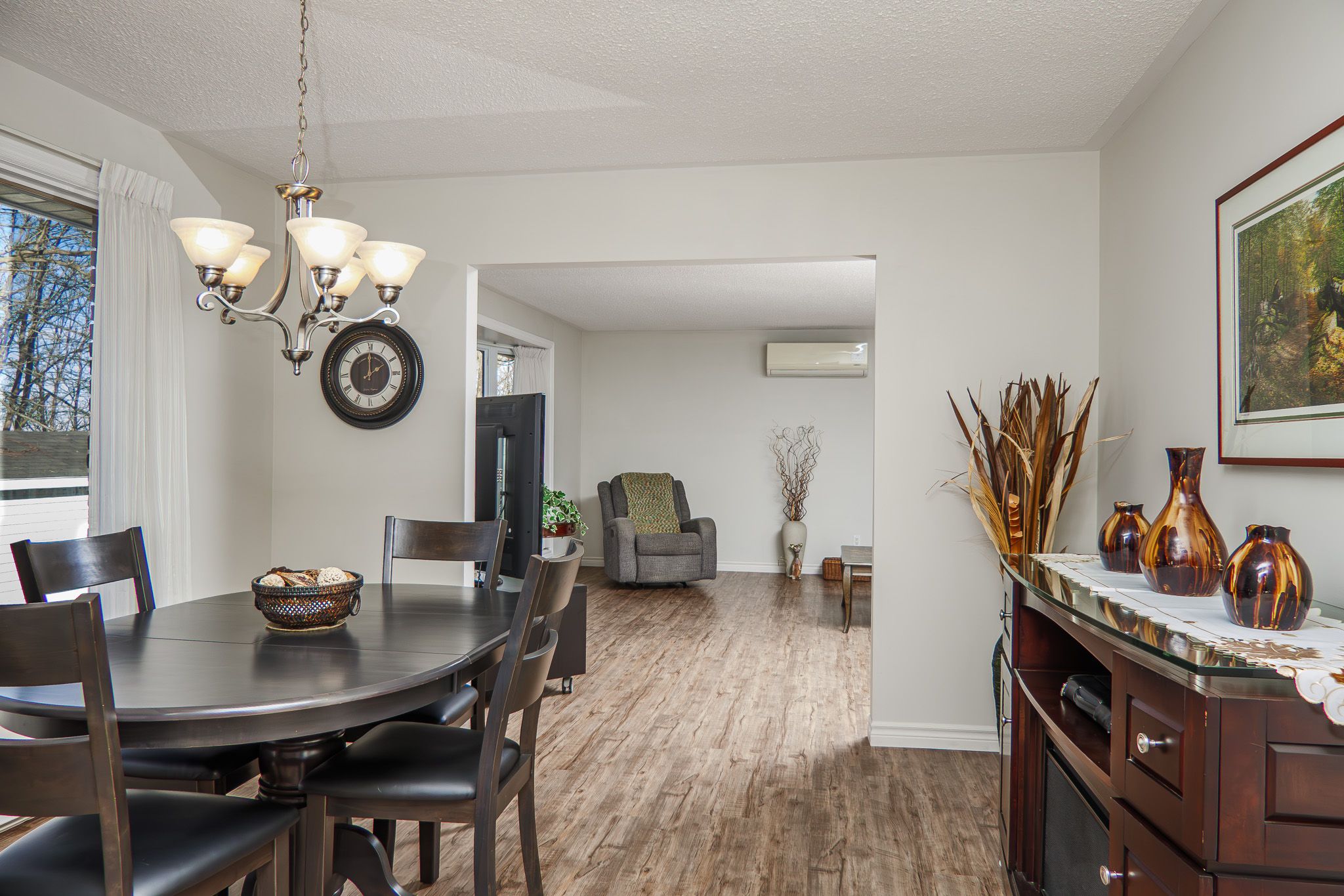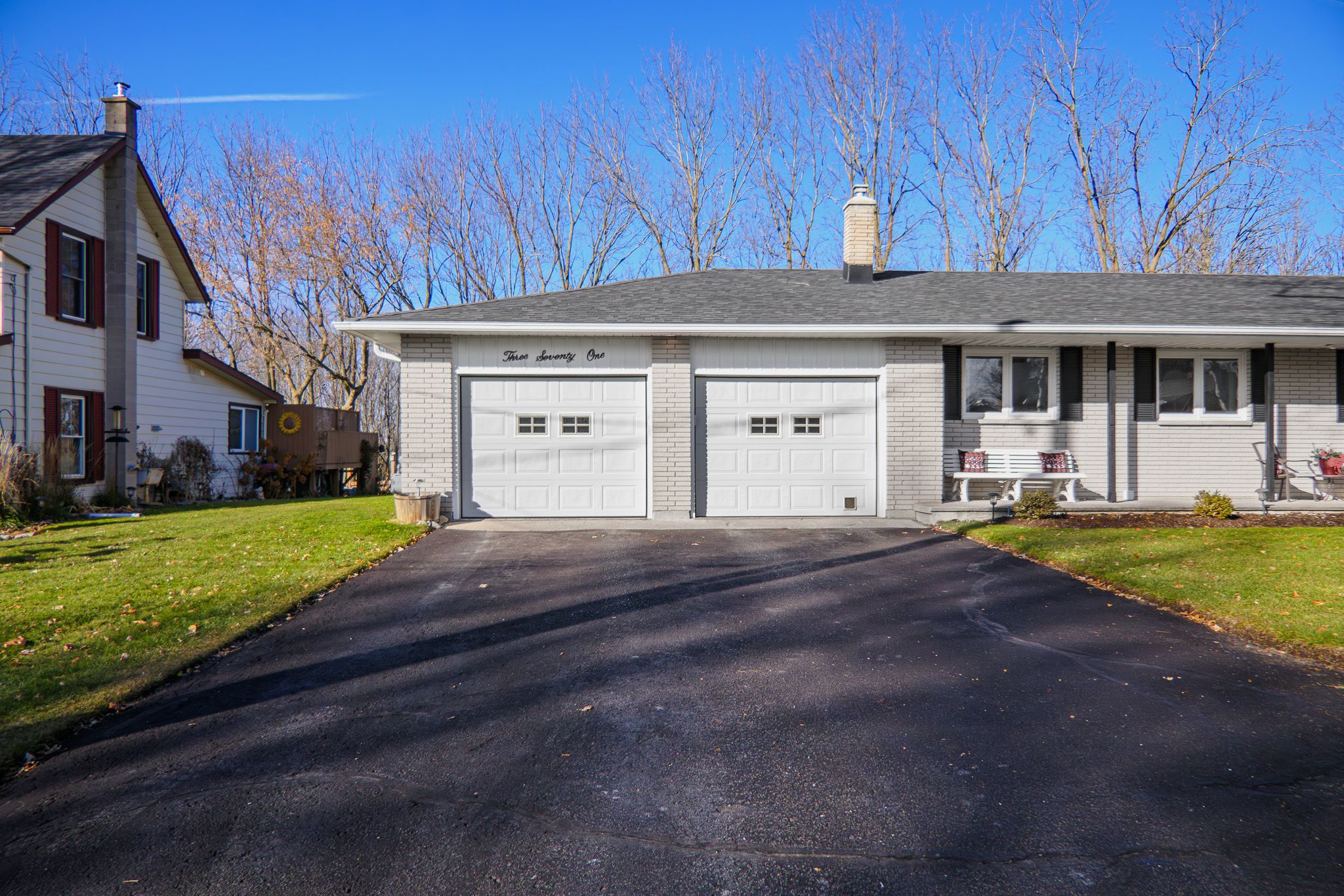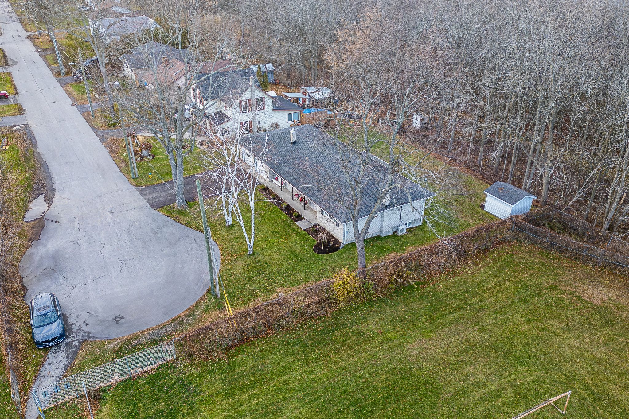 Discover this fully renovated, move-in-ready brick bungalow offering privacy, comfort, and modern style. Set on a quiet dead-end street/cul-de-sac and backing onto mature woods, this home blends nature and convenience perfectly. Step onto the inviting covered front porch before entering the bright main level-approximately 1,500 sqft. (over 2,700 sq. Ft. Total living space). The spacious living room features a large bay window overlooking the private backyard, while the formal dining room connects seamlessly to a stunning eat-in kitchen. Recently gutted and fully renovated, the kitchen boasts new cabinetry, counters, flooring, and appliances-including a gas range plus a functional l-shaped layout featuring pot/pan drawers, and patio doors leading to the rear deck. The main floor includes three bedrooms and a renovated 3-piece bathroom with a walk-in glass shower. A handy stairlift connects to the finished lower level (removable if desired), featuring a large l-shaped recreation room with a natural gas fireplace, rustic dry bar with barn board accents, a second bathroom, and a laundry area with sink. Additional highlights include a double attached garage with inside entry, new vinyl flooring throughout, efficient hot water radiant heating, and a ductless split unit for cooling. Outside, enjoy a back deck, garden shed, and newer architectural shingles. Conveniently located close to schools, downtown, and all amenities, just 15 minutes to napanee hospital. This solid brick home offers the perfect mix of charm, quality, and privacy. A true move-in-ready gem on a quiet cul-de-sac, your next chapter starts here.