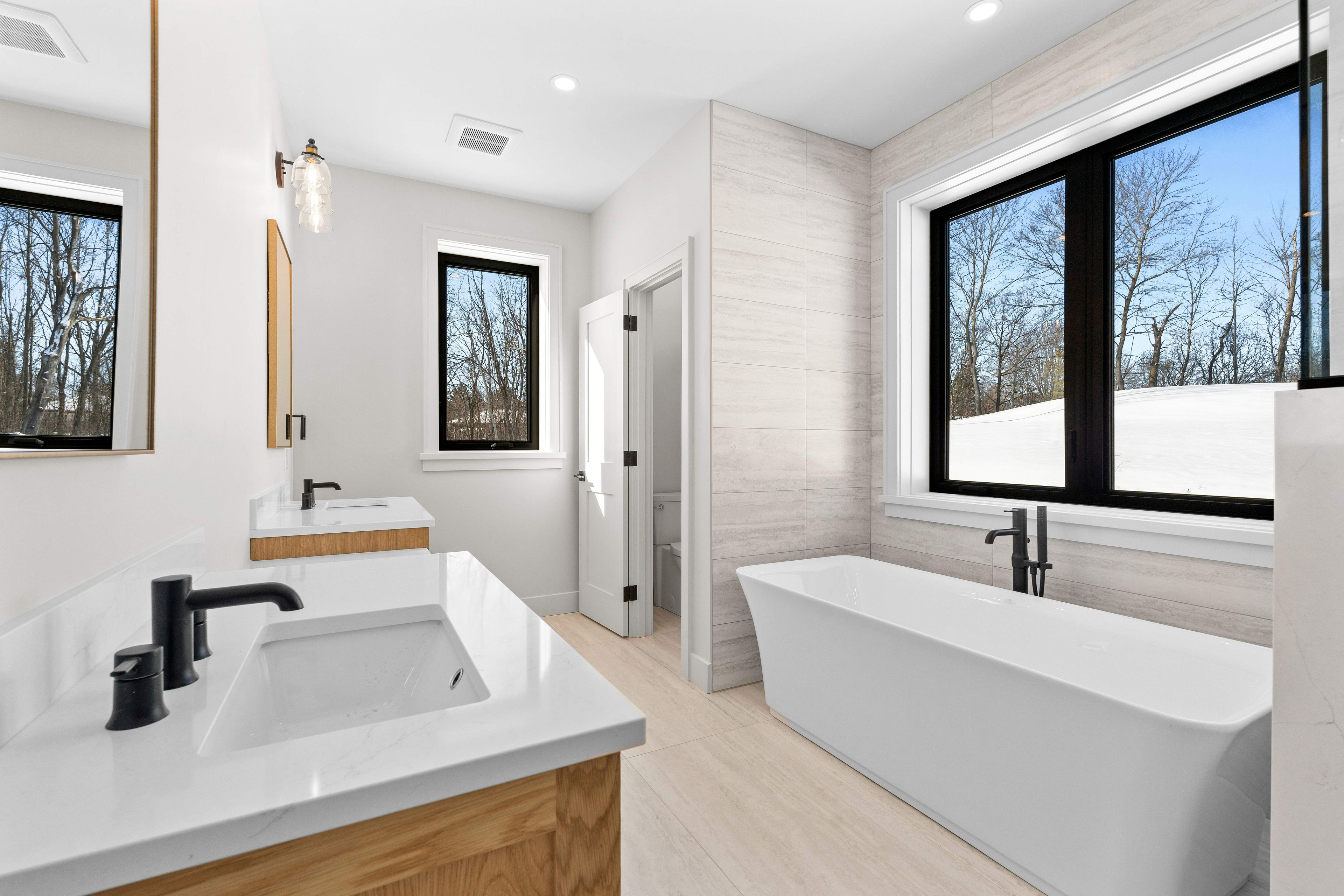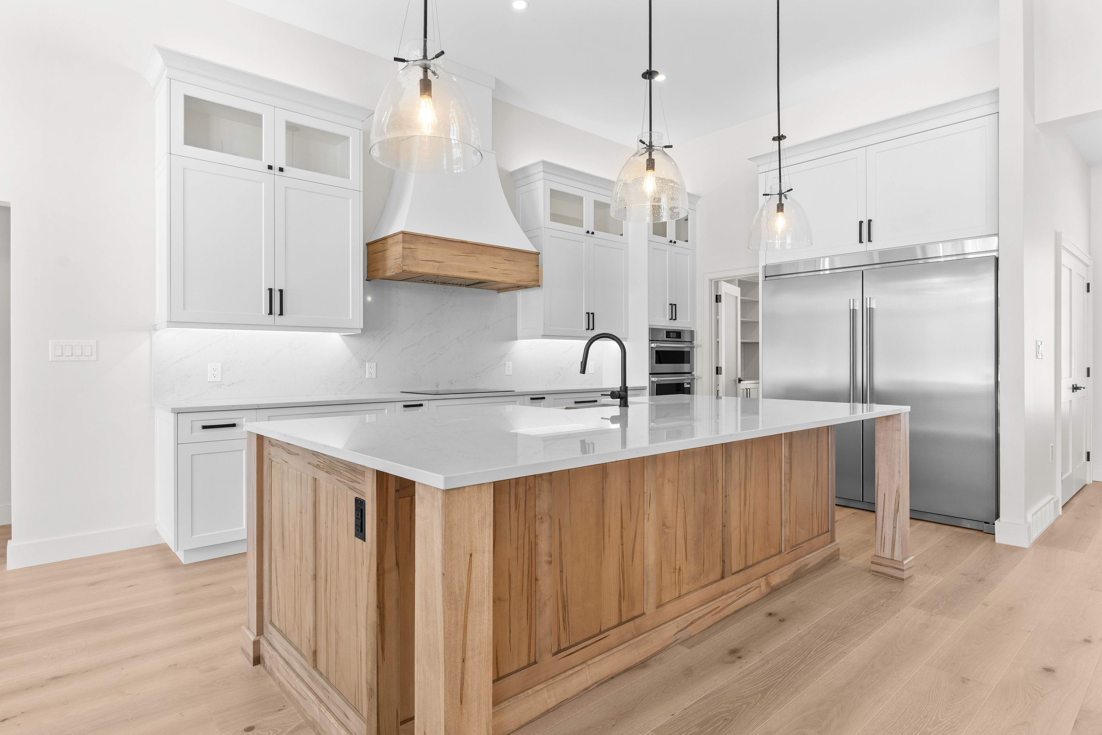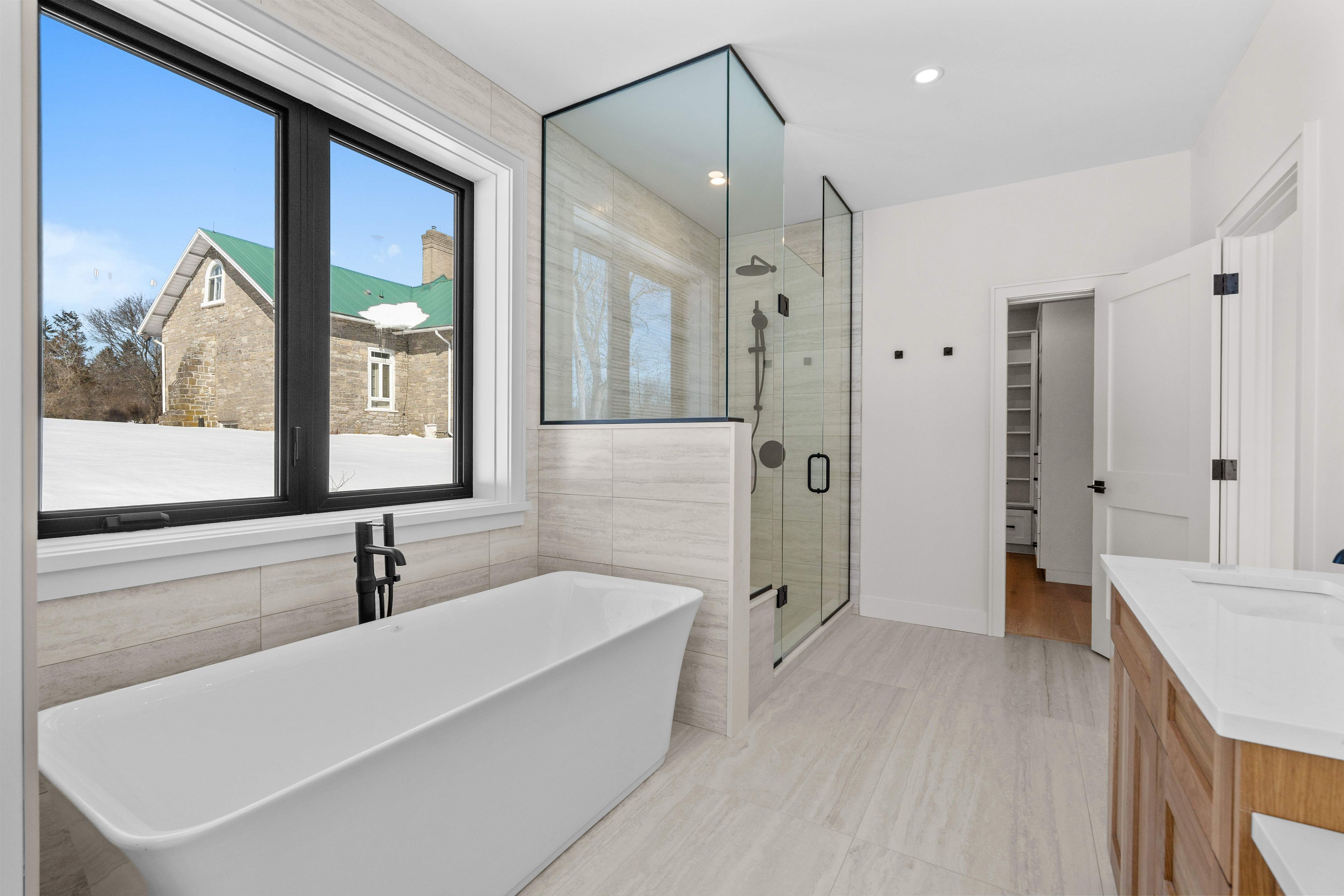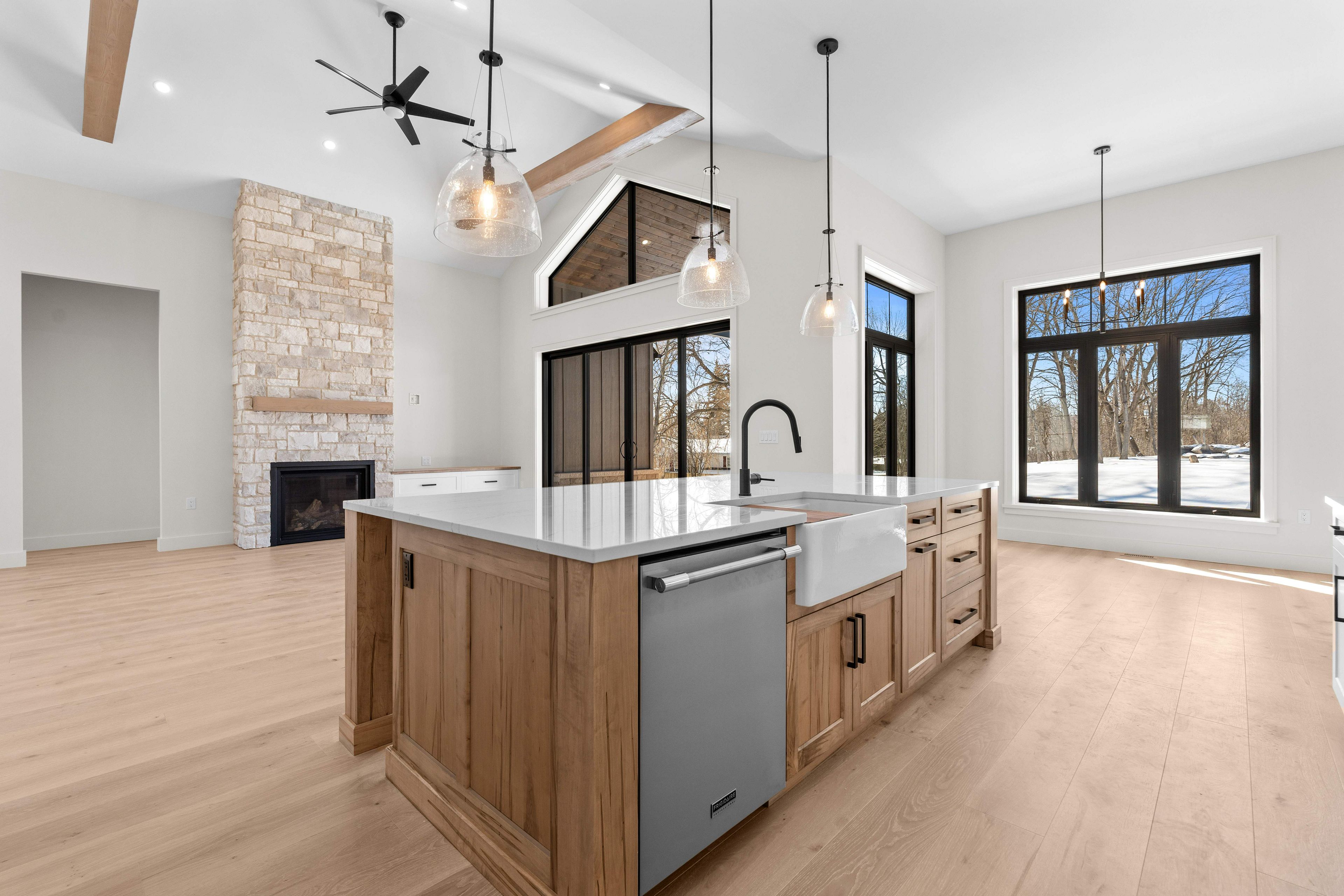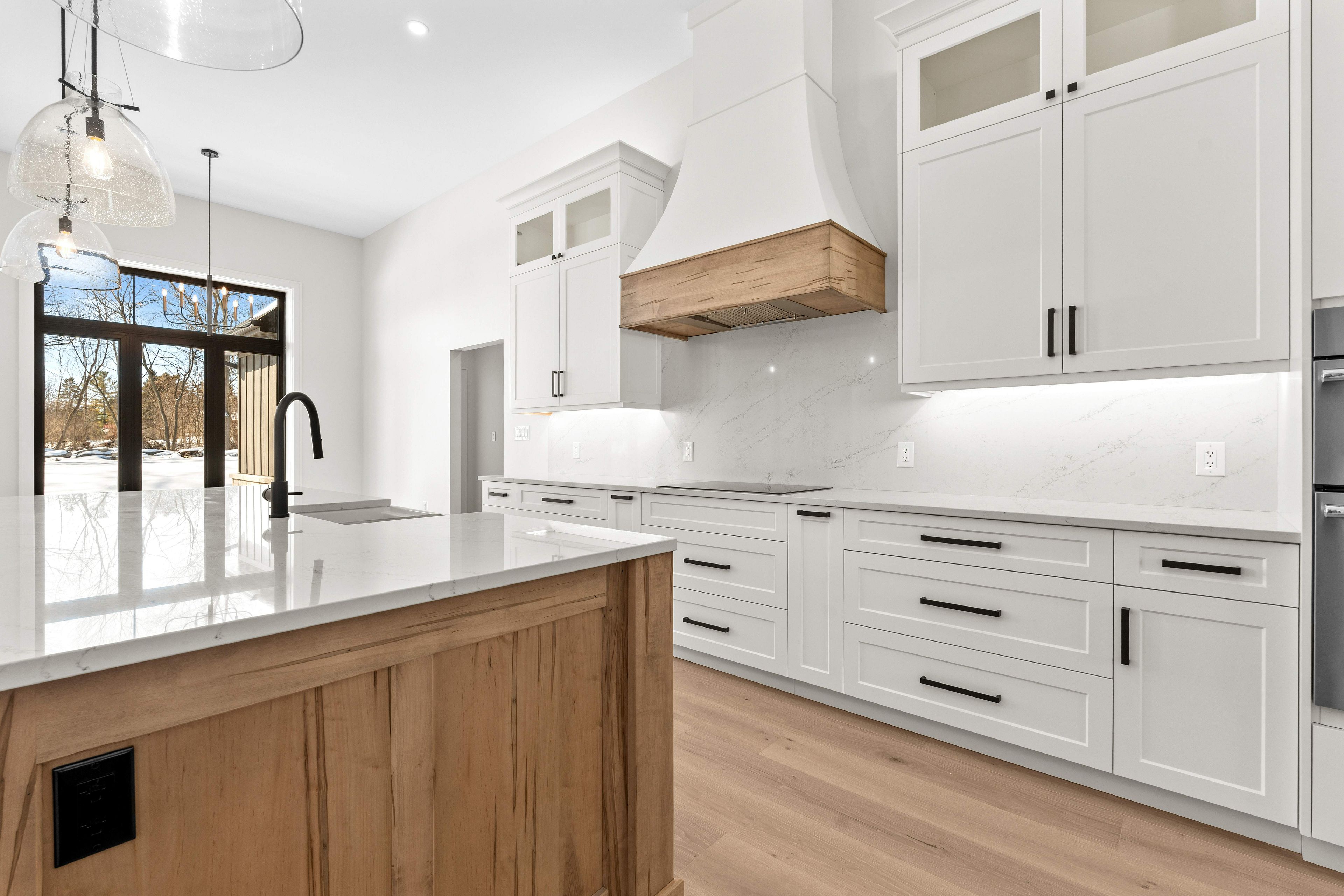 Quality built - brand new custom bungalow infill project between collins bay and amherstview, municipally in the city of kingston with a country feel just minutes from town. Small paint touch ups and exterior deck being completed - spring 2026 occupancy. Just in from the entrance to the mature and sought-after elmwood subdivision, this 100'x254' well-treed lot boasts 2352 square feet main floor above grade finished space plus 1800 square feet finished basement for a total of 4000+ square feet on two levels. With modern high-end finishes throughout and a well designed 3+2 bedrooms, main floor office, and 3+1 bathrooms. Main floor laundry including cheater door to primary walk-in closet. The home is set back and staggered off the neighbour's recent new build for privacy and to provide a water view of lake ontario. Just a few key features: open concept floor plan with in floor hydronic heat on both levels - engineered hardwood throughout main areas, tile in wet areas. Mennonite kitchen cabinets and quartz countertops. Wood frame r32 wall system, 9ft icf basement, r60 ceiling insulation, 12ft ceiling on main floor living, dining, and kitchen. Forced air furnace, ac, and hrv. Stone, brick, and hardie board exterior with a covered deck at the rear and outdoor woodburning fireplace. Sod front yard with landscaped retaining wall and gardens. The home is serviced by a 200 amp electrical, natural gas, municipal water, and eco-flow septic system. We look forward to welcoming you to your new home!