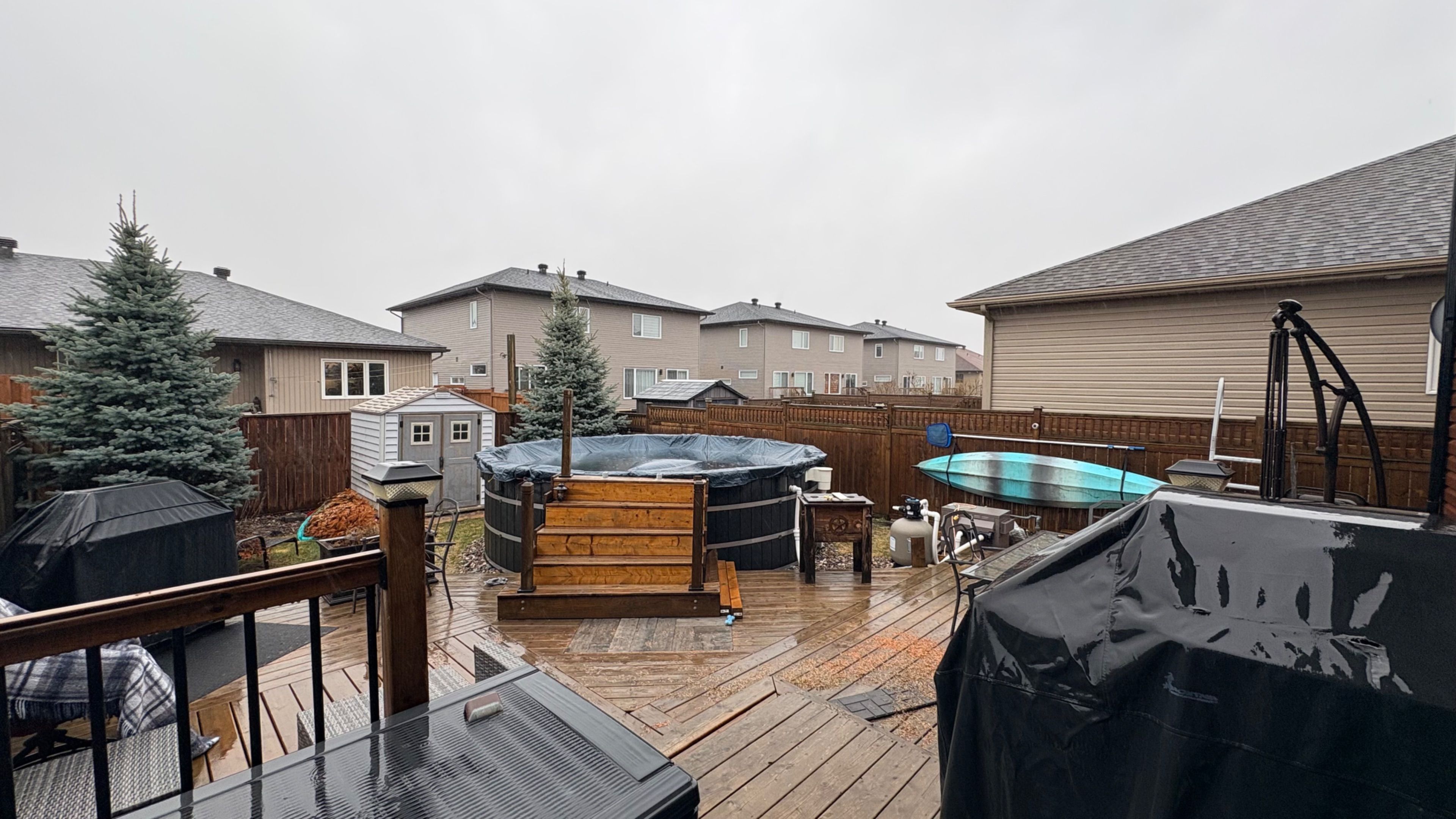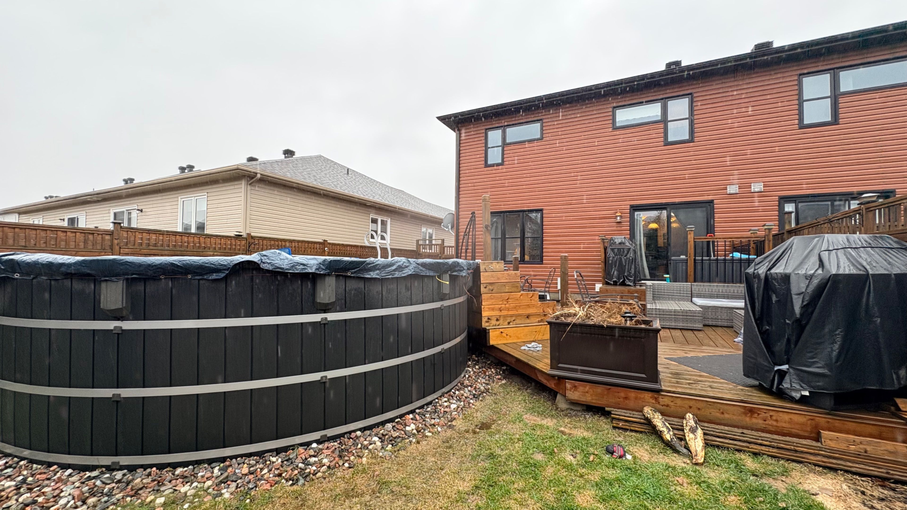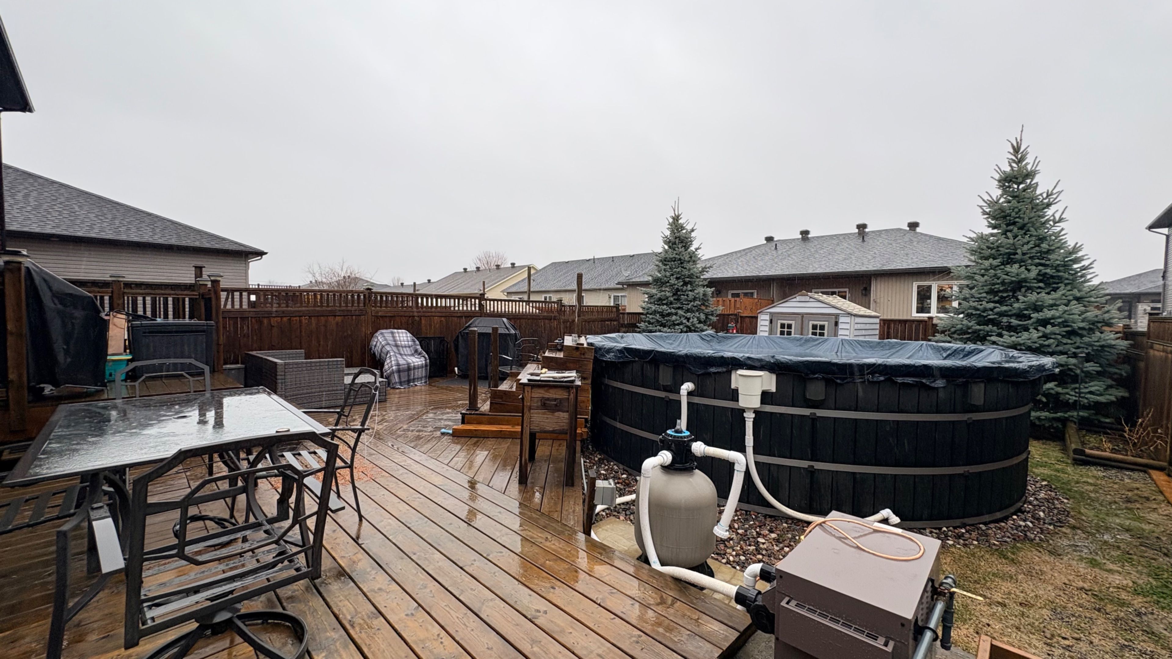 • Fully fenced backyard with above ground pool, great for relaxation and pets.