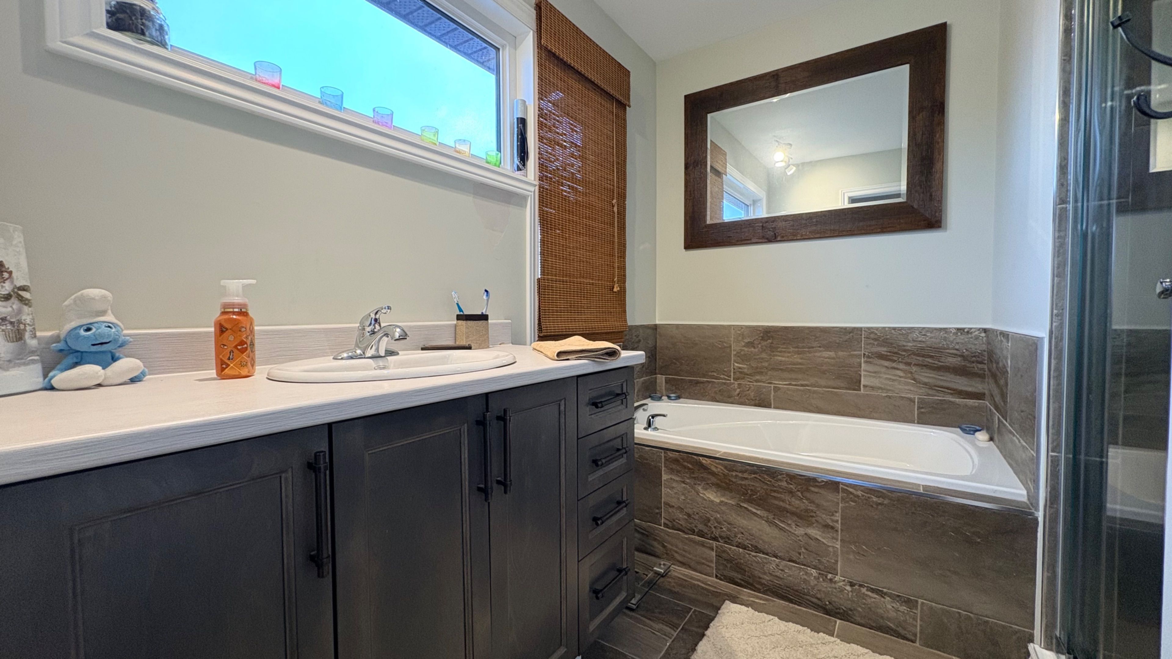 • Spacious primary bedroom features a private ensuite with soaker tub and walk-in shower.