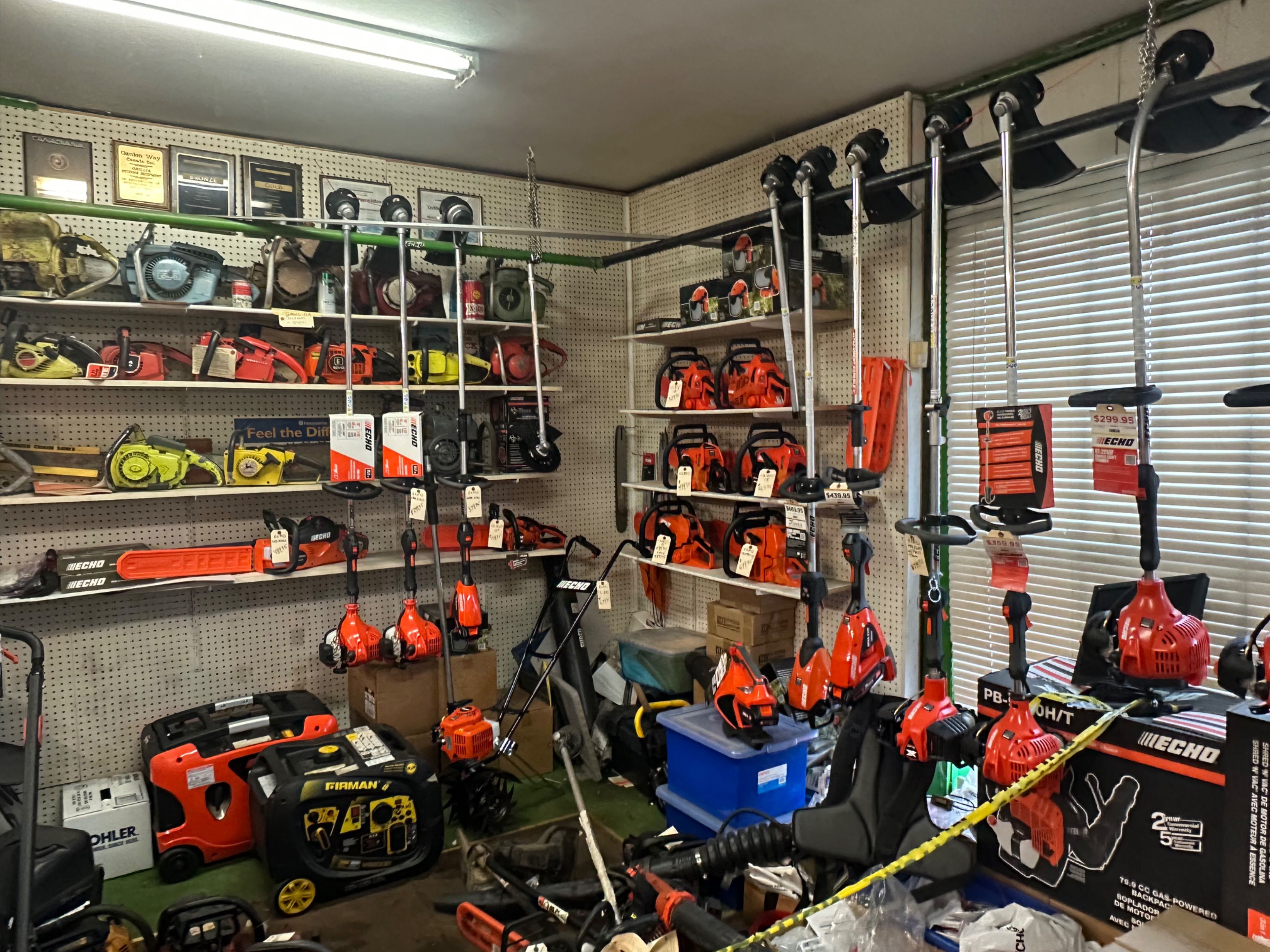 • Building features retail area, office, bathroom, and repair shop.