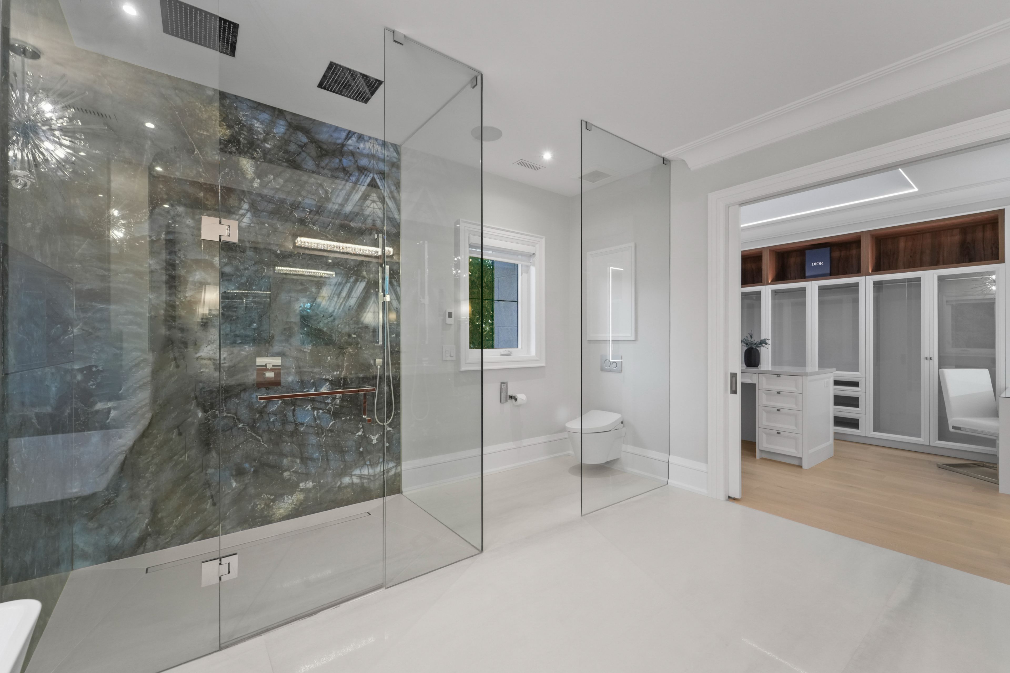 Welcome to 371 willis drive, an extraordinary custom-built estate by award-winning architect keeren design, ideally located in west oakville. Inspired by classic french chateau architecture, this home features a timeless white stone exterior, elegant black-framed windows and meticulously landscaped grounds. Spanning 7,500+ sf across three levels, it offers 4+3 bedrooms and 7 bathrooms, each crafted with exceptional detail. The main level features an open-concept layout with 10-ft ceilings and premium finishes. The chef's kitchen is a masterpiece with an oversized island, geoluxe porcelain countertops and backsplash, and thermador built-in appliances including a 6-burner cooktop & 72" refrigerator. It flows seamlessly into the great room, where 20-foot ceilings, a linear gas fireplace, custom built-ins & expansive floor-to-ceiling windows create a grand and inviting atmosphere. A formal dining room, living room, bar, home office, powder room & mudroom complete this level. An oak staircase with glass railings leads to the upper floor, home to a primary suite with a custom walk-in closet & spa-inspired ensuite featuring radiant heated floors, freestanding tub, dual vanities & double rainfall shower. Additional bedrooms each have walk-in closets & private ensuites. The finished lower level adds 3 bedrooms, a full bathroom, modern kitchen, recreation area, media room & office. Elegant design elements are found throughout, including tray ceilings with led lighting, large aluminum curtain wall skylights, built-in speakers & wide-plank oak flooring. Outdoors, enjoy a private backyard oasis with a covered concrete patio, koi pond, hydropool swim spa & lush gardens. The front offers a heated granite driveway on reinforced concrete for up to 8 cars, leading to a 3-car garage with concrete flooring. Located near appleby college, top schools, parks, lake ontario & major highways, this residence epitomizes modern luxury living in one of oakville's most prestigious neighborhoods.