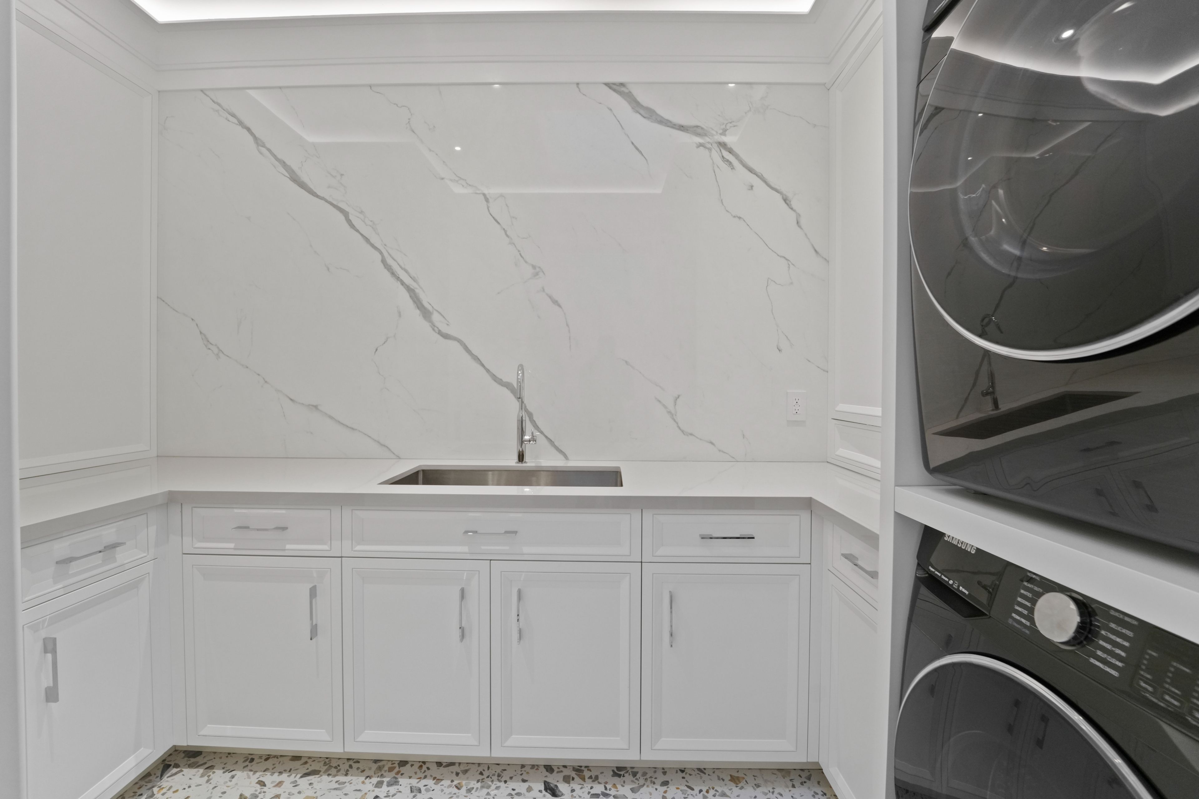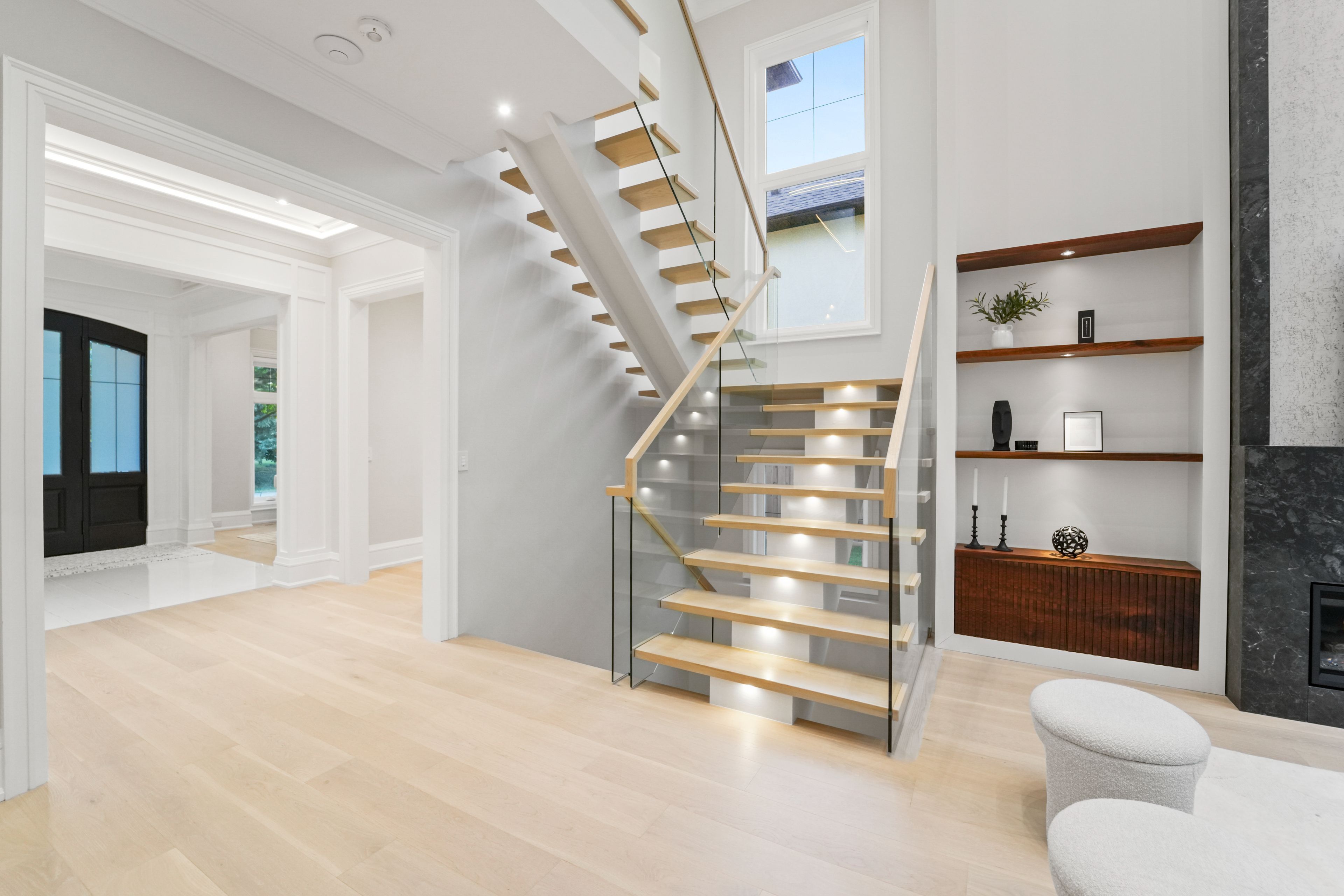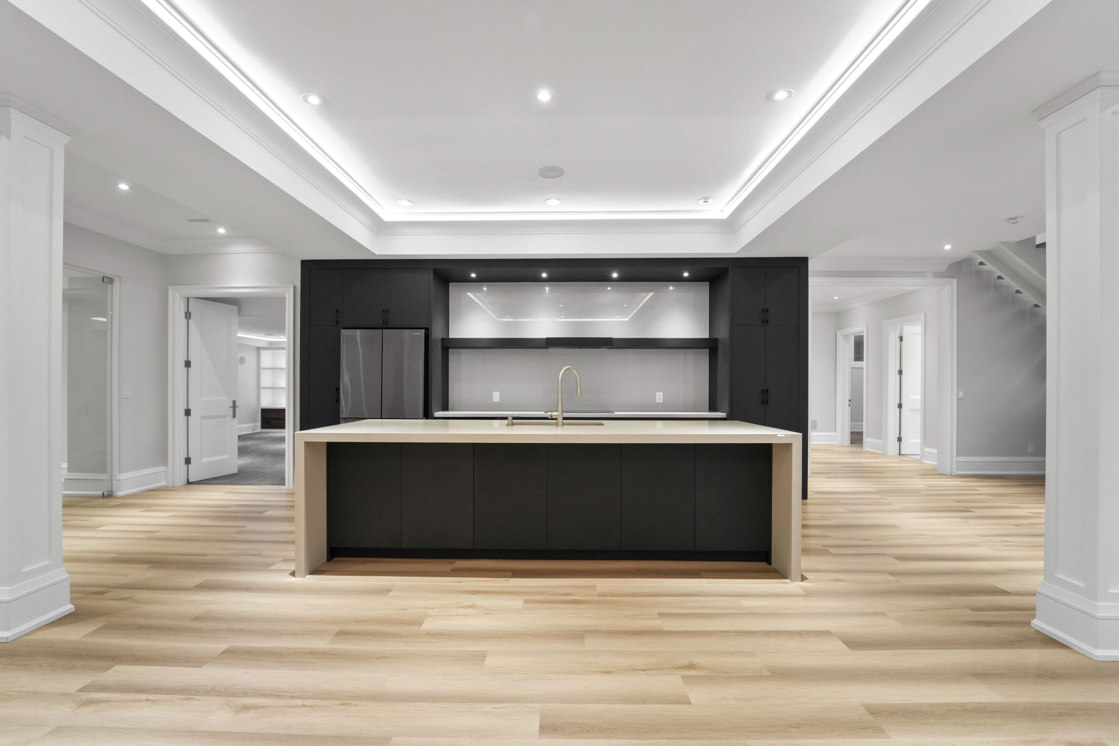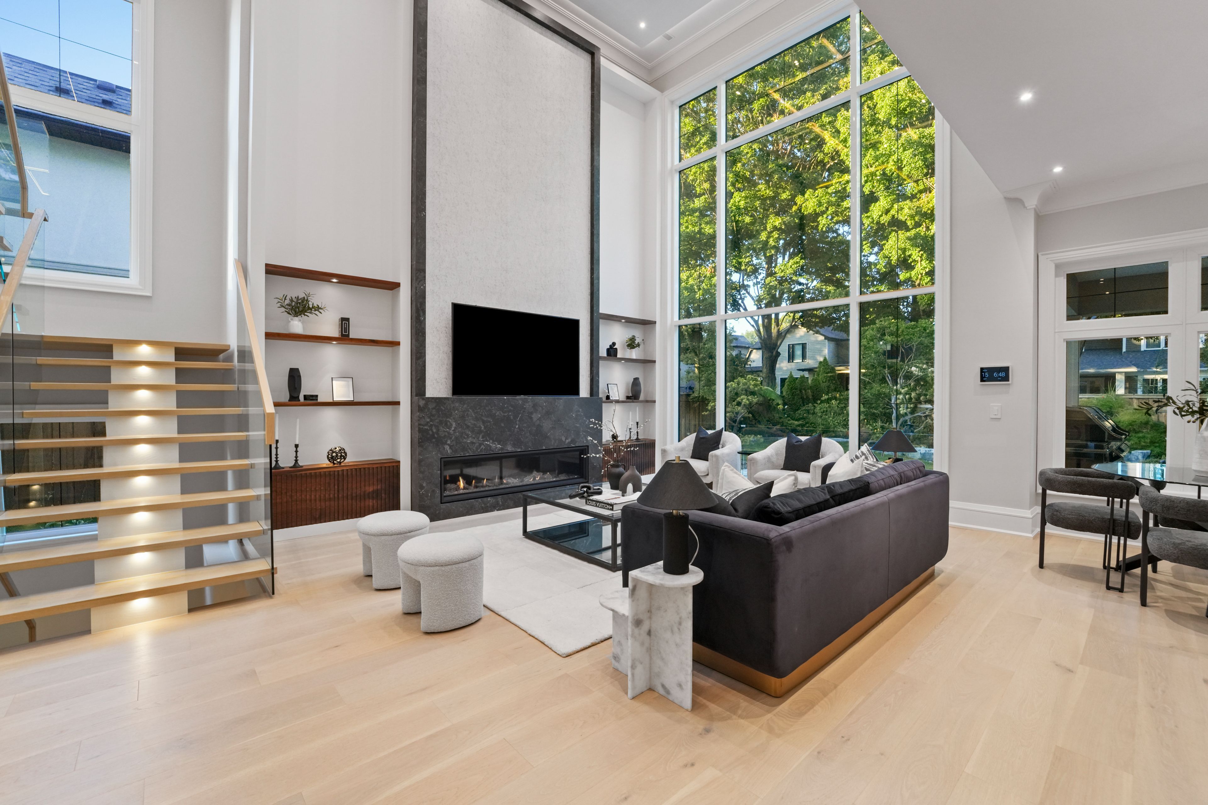 • Open-concept main level with high ceilings and premium finishes.